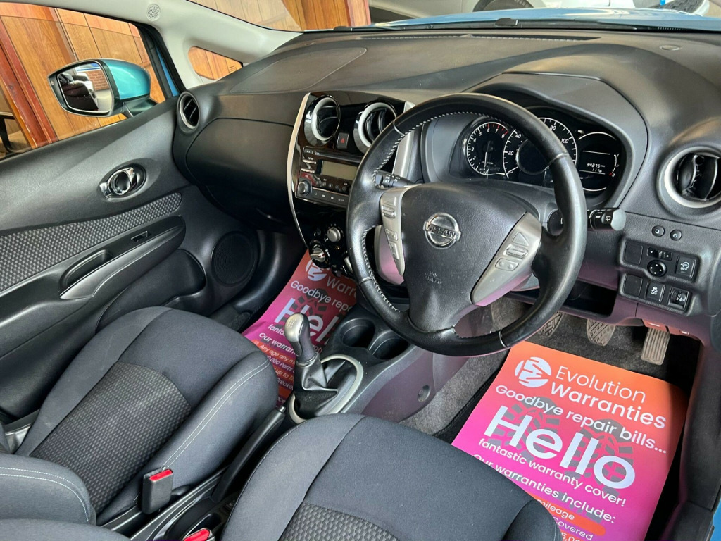 This 2017 Nissan Note Acenta presents a remarkable opportunity with its exceptionally low mileage of just 34,275 miles, significantly below average for its age. This well maintained example boasts a clear vehicle history check and benefits from a recent service on 8th October 2025 at 34,264 miles, ensuring its readiness for the road. The MOT remains valid until October 2026, offering peace of mind for the new owner. This Euro 6 compliant 1.2 litre petrol model comes with a 6 month warranty for added security.The Acenta trim level includes convenient features such as remote keyless entry, air conditioning for comfortable journeys, and Bluetooth connectivity with a microphone for hands free calls. The Nissan Note is known for its practicality, offering generous boot space that makes it ideal for everyday use and family trips. Furthermore, its impressive fuel economy of 60 mpg and low CO2 emissions highlight its efficiency, making it a cost effective choice. Its low insurance group rating also indicates that running costs are kept to a minimum, setting it apart from many other vehicles in its class.www.station27.co.uk Are delighted to offer this 2017 Nissan Note 1.2 Acenta for sale with only 34275 miles, our car comes with;- 6 MONTH NATIONWIDE WARRANTY- MOT UNTIL OCTOBER 2026 WITH NO ADVISORIES - BOTH REMOTE KEYS - FRESH SERVICE PRIOR TO SALE - NEW SET OF TAILORED CARPET MATSOur Nissan Note is only £20 per year road tax and has great fuel economy. This also has Mot until October 2026 with no advisories and will also be serviced prior to sale. Very clean and tidy car which is very spacious and versatile. in alloy wheels, 60-40 split rear folding seats, abs - anti lock brakes, air conditioning, bluetooth with microphone, body coloured door mirrors, body coloured handles, brake assist, cd radio, cruise control with speed limiter, daytime running lights, drive trip and eco-computer, driver seat height adjustment, ebd - electronic brakeforce distribution, esp - electronic stability programme, eco driving indicator, eco driving mode, eco meter, electric adjustable door mirrors, flexi-board boot storage system, front cabin and luggage compartment lights, front electric windows, front-side and curtain airbags, gloss black centre console, glossy black front grille, halogen headlamps, heated door mirrors, isofix child seat anchoring points, immobiliser, leather covered steering wheel, passenger airbag cut-off switch, power assisted steering, rear cabin light, rear door child locks, rear privacy glass, remote central locking with superlocking, remote keyless entry, speakers x4, steering wheel mounted audio controls, tpms - tyre pressure monitoring system, tilt adjustable steering wheel, traction control, tyre repair kit, usb-aux socket input, modern cloth - black / grey, sonic blue