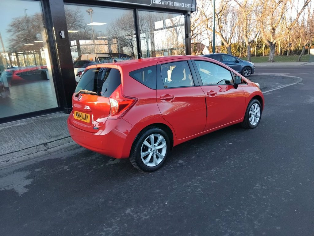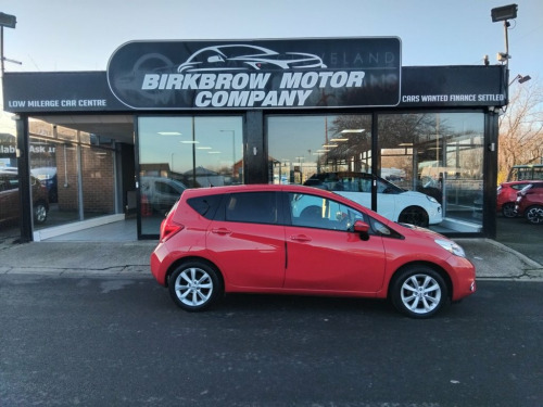 AVAILABLE AT OUR MARSKE SITE, THE SHOWROOM, 105 REDCAR ROAD, MARSKE TS11 6HU BIRKBROW MOTOR COMPANY AT MARSKE IS DELIGHTED TO OFFER THIS BEAUTIFULLY PRESENTED 2014/14 PLATE NISSAN NOTE 1.2 DIG-S ACENTA PREMIUM CVT AUTOMATIC 5 DOOR SMALL MPV IN FLAME RED WITH ONLY 34,225 MILES COVERED FROM NEW, SPEC INCLUDES 16" ALLOY WHEELS, FRONT FOG LIGHTS, DAYTIME RUNNING LIGHTS, AUTOMATIC HEADLIGHTS AND FRONT WIPERS, FRONT AND REAR ELECTRIC WINDOWS, ELECTRIC DOOR MIRRORS, REMOTE CENTRAL LOCKING, CLIMATE CONTROL, CD RADIO WITH BLUETOOTH, USB AND AUX INPUTS, SATELLITE NAVIGATION, CRUISE CONTROL WITH SPEED LIMITER, REVERSE PARKING SENSORS, REAR PRIVACY GLASS, LOW INSURANCE GROUP, EXCELLENT ECONOMY WITH 60.1 MPG, ONLY £35 A YEAR ROAD TAX, HIGHER SEATING POSITION FOR EASY ACCESS, SPACIOUS BOOT, RARE AUTOMATIC, FINANCE ARRANGED Bluetooth Telephone Integration, CD Radio, Nissan Connect Satellite Navigation, Speakers x4, USB-AUX Socket Input, 16in Alloy Wheels, Body Coloured Handles, Body Coloured Side Mouldings, Body Coloured Wing Mirrors with Integrat, Bumpers - Body Coloured, Chrome Front Lip and Trunk Finisher Stri, Electrically Adjustable Heated Door Mirr, Front and Rear Electric Windows, Limited Edition Rear Badge, Rear Privacy Glass, Tyre Repair Kit, 60-40 Split Rear Folding Seats, Armrest - Rear, Auto Rain Sensing Wipers, Climate Control, Driver Seat Height Adjustment, Flexi-Board Boot Storage System, Front Armrest, Front Cabin and Luggage Compartment Ligh, Gloss Black Cluster, Head Restraints - 3 Rear, Head