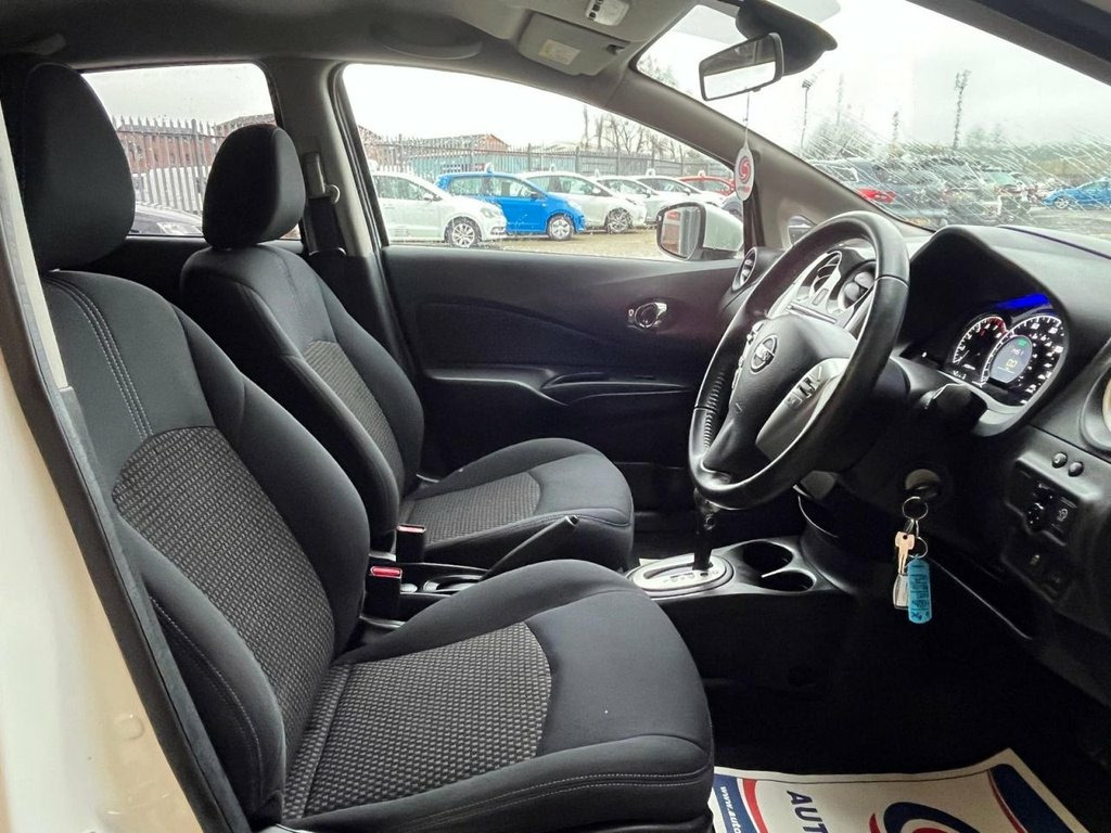 Moto Vation Car Sales are offering this Automatic Nissan Note in a desirable colour- White with low miles for the age- 66K. With only 1 previous owner from new, it is clear it has been loved. Would make a great first time car with its low running and insurance costs. Supplied with a Full Years MOT and Full Service History attached with 10 stamps- last in our Service Centre in 01/26. Bosting a great specification including a Multi Functional Steering Wheel, AUX, USB, Bluetooth, Nissan Connect, Sat Nav and Start Stop. £35 annual tax. Please confirm with a Sales Executive the amount of keys this vehicle comes with. All of our vehicles come with a 3 months Nationwide warranty and a 12 months basic AA breakdown cover. Please read our reviews! Please note- the above vehicle specification is confirmed and correct. The vehicle specification listed elsewhere may sometimes be inaccurate so please check with the Sales team when enquiring to clarify this prior to purchase. Arctic White, 16in Alloy Wheels, 60-40 Split Rear Folding Seats, ABS - Anti Lock Brakes, Auto Rain Sensing Wipers, Automatic Headlights, Bluetooth with Microphone, Body Coloured Door Mirrors, Body Coloured Handles, Brake Assist, CD Radio, Climate Control, Cruise Control with Speed Limiter, DAB and Internet Radio with 6 Speakers, Daytime Running Lights, Drive Trip and Eco-computer, Driver Seat Height Adjustment, EBD - Electronic Brakeforce Distribution, ESP - Electronic Stability Programme, Eco Driving Indicator, Eco Driving Mode, Eco Meter, Electric Adjustable Door Mirrors, Flexi-Board Boot Storage System, Front Cabin and Luggage Compartment Ligh, Front Electric Windows, Front Fog Lights, Fr