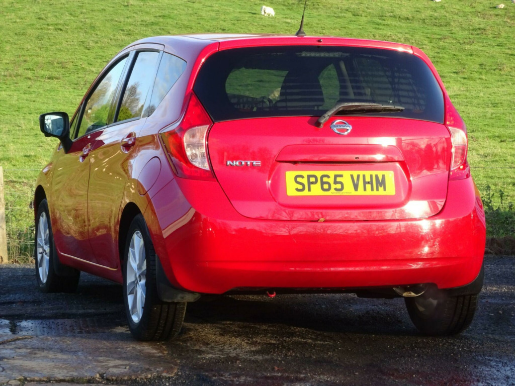 Boasting a full service history with its last service completed in November 2024 at 49,943 miles, this 2015 Nissan Note DIG-S Tekna is a well maintained example. This Euro 6 compliant 1.2L petrol model, presented in the Tekna trim, dealer registered and 1 owner from new. It comes with 12 months MOT provided on purchase, offering peace of mind. Notable features include climate control, automatic headlights, a comprehensive safety pack with blind spot assistance and a 360 degree camera, intelligent key with push button start for keyless entry, and Bluetooth connectivity with a microphone.This Nissan Note DIG-S Tekna stands out with its impressive fuel economy of 66 mpg, indicating it is more economical than many similar vehicles. Its low CO2 emissions are also a significant advantage, contributing to lower running costs and environmental impact. Furthermore, its low insurance group rating means it is more affordable to insure compared to other cars in its class. The generous boot space also makes it a practical choice for everyday use and longer journeys, offering more versatility than many comparable models. in alloy wheels, 60-40 split rear folding seats, abs - anti lock brakes, auto rain sensing wipers, automatic headlights, bluetooth with microphone, body coloured door mirrors, body coloured handles, brake assist, cd radio, climate control, cruise control with speed limiter, dab and internet radio with 6 speakers, daytime running lights, drive trip and eco-computer, driver seat height adjustment, ebd - electronic brakeforce distribution, esp - electronic stability programme, eco driving indicator, eco driving mode, eco meter, electric adjustable door mirrors, flexi-board boot storage system, front cabin and luggage compartment lights, front electric windows, front fog lights, front and rear armrests, front-side and curtain airbags, gloss black centre console, glossy black front grille, halogen headlamps, heated door mirrors, isofix child seat anchoring points, immobiliser, intelligent key with start push button, leather covered steering wheel, nissanconnect 5.8in touch screen navigation and entertainment system, passenger airbag cut-off switch, power assisted steering, rear cabin light, rear door child locks, rear privacy glass, remote central locking with superlocking, safety pack, sliding rear bench, steering wheel mounted audio controls, tpms - tyre pressure monitoring system, tilt adjustable steering wheel, traction control, tyre repair kit, usb-aux socket input