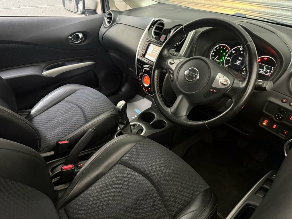 This excellent Nissan Note Tekna comes with a full service history and has been very well cared for throughout its life. It is lovely and clean inside and out, drives superbly, and offers impressive comfort, practicality and economy. Finished in stylish grey metallic paint with 16-inch alloy wheels and sun protection glass, it has a smart, modern appearance. The high-spec Tekna trim provides an exceptional level of equipment, including keyless entry and start, a reversing camera, and Nissan's 360° camera system for effortless parking. Inside, you'll find a leather multifunction steering wheel, front and rear electric windows, cruise control, Bluetooth telephone and audio, automatic headlights and wipers, and a touchscreen multimedia system with DAB digital radio and satellite navigation. Safety and convenience are also excellent, with lane departure warning, blind spot monitoring, air-conditioning, ISOFIX child seat points, twin cup holders, central locking and a centre armrest. This is a superb example of the Nissan Note Tekna — stylish, reliable and packed with features. It has been maintained to a high standard and is ready to drive away. Early viewing and test drive are highly recommended. Blade Silver, Comfort Pack, Style Pack, 16in Alloy Wheels, 60-40 Split Rear Folding Seats, ABS - Anti Lock Brakes, Airbag - Driver, Airbag - Front Passenger, Airbags - Curtain, Airbags - Side, Alarm, Armrest - Rear, Around View Monitor - 360 Bird-View, Auto Rain Sensing Wipers, Automatic Headlights, Blind Spot Warning, Bluetooth Telephone Integration, Body Coloured Handles, Body Coloured Side Mouldings, Body Coloured Wing Mirrors with Integrat, Brake Assist, Bumpers - Body Coloured, CD Radio, Chrome Front Lip and Trunk Finisher Stri, Climate Control, Cruise Control with Speed Limiter, DAB Radio, Daytime Running Lights, Driver Seat Height Adjustment, EBD - Electronic Brakeforce Distribution,