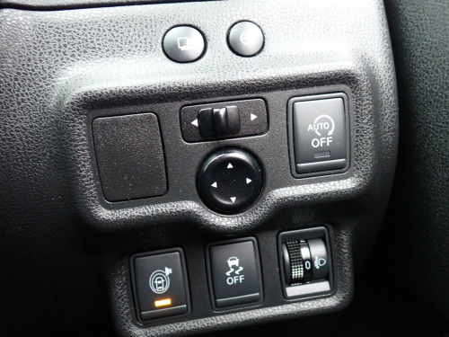 in alloy wheels, body coloured door mirrors, body coloured handles, electric adjustable door mirrors, front electric windows, glossy black front grille, heated door mirrors, rear privacy glass, tyre repair kit, 60-40 split rear folding seats, auto rain sensing wipers, climate control, driver seat height adjustment, flexi-board boot storage system, front cabin and luggage compartment lights, front and rear armrests, gloss black centre console, leather covered steering wheel, rear cabin light, sliding rear bench, steering wheel mounted audio controls, tilt adjustable steering wheel, abs - anti lock brakes, brake assist, ebd - electronic brakeforce distribution, esp - electronic stability programme, front-side and curtain airbags, isofix child seat anchoring points, immobiliser, intelligent key with start push button, passenger airbag cut-off switch, rear door child locks, remote central locking with superlocking, safety pack, traction control, automatic headlights, daytime running lights, front fog lights, halogen headlamps, bluetooth with microphone, cd radio, dab and internet radio with 6 speakers, nissanconnect 5.8in touch screen navigation and entertainment system, usb-aux socket input, cruise control with speed limiter, drive trip and eco-computer, eco driving indicator, eco driving mode, eco meter, power assisted steering, tpms - tyre pressure monitoring system
