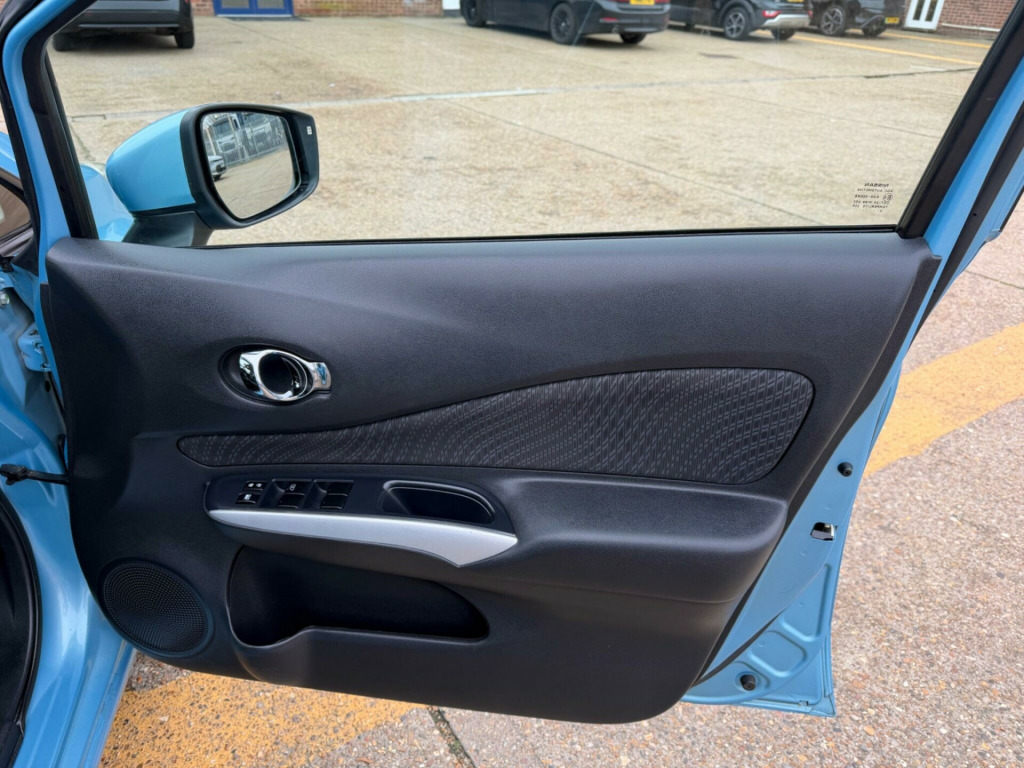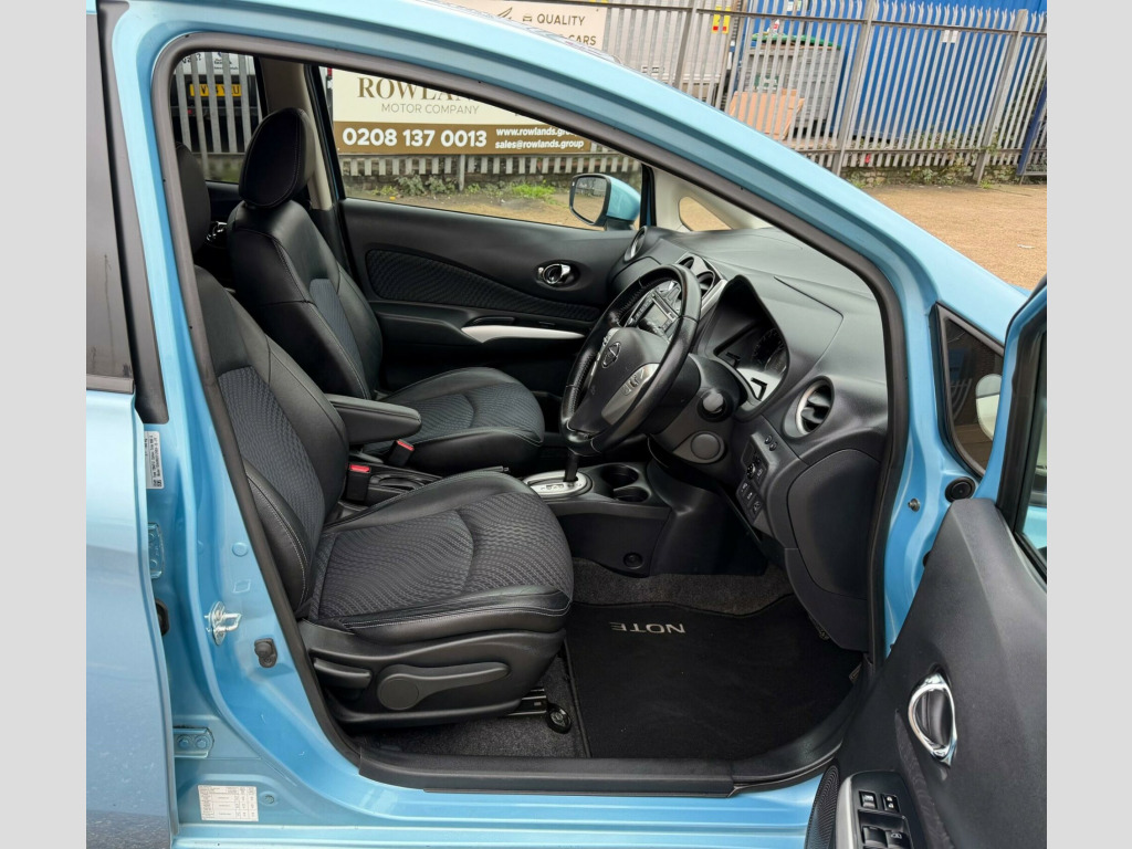 Discover this 2015 Nissan Note DIG-S Tekna, a car with exceptionally low mileage for its age, having covered just 37,000 miles. This Euro 6 compliant 1.2 litre petrol model boasts a clear vehicle history check, offering peace of mind. Inside, you'll find a comfortable cabin equipped with climate control and keyless entry via the intelligent key with start push button. For your convenience, it also features Bluetooth with microphone and automatic headlights.This Tekna trim level stands out with its comprehensive Safety Pack, which includes Blind Spot Assistance and a 360 degree camera for effortless parking. The Nissan Note is known for its generous boot space, making it a practical choice for everyday life. Furthermore, its low insurance group rating indicates that running costs are kept to a minimum, making this particular vehicle a more economical option compared to many others in its class. in alloy wheels, 60-40 split rear folding seats, abs - anti lock brakes, auto rain sensing wipers, automatic headlights, bluetooth with microphone, body coloured door mirrors, body coloured handles, brake assist, cd radio, climate control, cruise control with speed limiter, dab and internet radio with 6 speakers, daytime running lights, drive trip and eco-computer, driver seat height adjustment, ebd - electronic brakeforce distribution, esp - electronic stability programme, eco driving indicator, eco driving mode, eco meter, electric adjustable door mirrors, flexi-board boot storage system, front cabin and luggage compartment lights, front electric windows, front fog lights, front and rear armrests, front-side and curtain airbags, gloss black centre console, glossy black front grille, halogen headlamps, heated door mirrors, isofix child seat anchoring points, immobiliser, intelligent key with start push button, leather covered steering wheel, nissanconnect 5.8in touch screen navigation and entertainment system, passenger airbag cut-off switch, power assisted steering, rear cabin light, rear door child locks, rear privacy glass, remote central locking with superlocking, safety pack, sliding rear bench, steering wheel mounted audio controls, tpms - tyre pressure monitoring system, tilt adjustable steering wheel, traction control, tyre repair kit, usb-aux socket input, premium cloth with leather - black