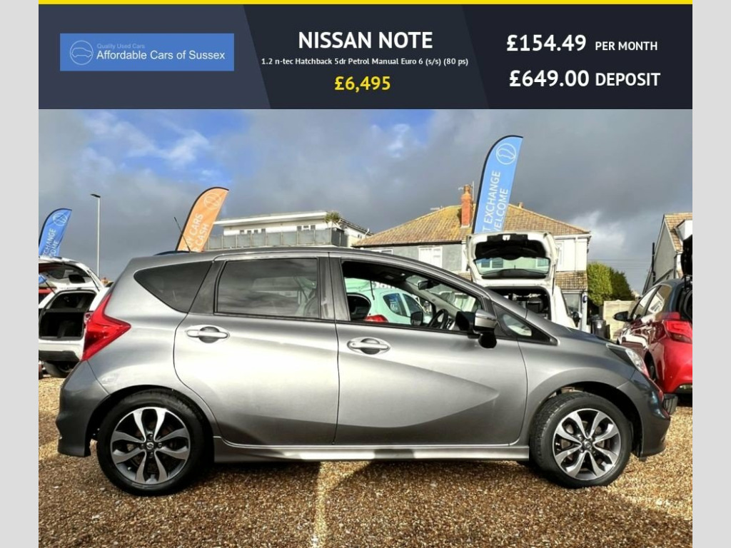 A very low mileage Nissan Note with less than 40,500 miles from new and supplied with two keys and service history. This stunning looking N Tec model is finished in Gun Metallic with alloy wheels and privacy glass and comes with excellent specification including automatic headlights and wipers, rear parking camera, sat nav, bluetooth, air conditioning and more. Very economical with over 60 MPG quoted and only £20 a year to tax. Top 5 Reasons to buy this car; 1; Very Low Mileage Example 2; Only £20 A Year To Tax 3; Rear Parking Camera 4; Free Warranty included with no admin or hidden fee's - Fully transparent sales process 5; Bought from a local trusted family Dealer with over 60+ years experience Gun Metallic, 16in Alloy Wheels, 60-40 Split Rear Folding Seats, ABS - Anti Lock Brakes, Aerodynamic Front Bumper, Auto Rain Sensing Wipers, Automatic Headlights, Black Bezel Headlamps, Blind Spot Warning, Blue Stitching on Steering Wheel, Bluetooth with Microphone, Brake Assist, CD Radio, Carbon Look Rear Bumper, Climate Control, Cruise Control with Speed Limiter, DAB and Internet Radio with 6 Speakers, Daytime Running Lights, Drive Trip and Eco-computer, Driver Seat Height Adjustment, EBD - Electronic Brakeforce Distribution, ESP - Electronic Stability Programme, Eco Driving Indicator, Eco Driving Mode, Eco Meter, Electric Adjustable Door Mirrors, Flexi-Board Boot Storage System, Front Cab