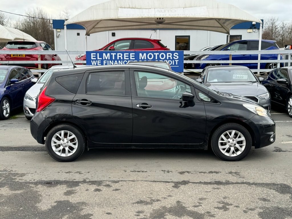 Here we have a superb example of our Nissan Note - Acenta Premium Edition - great on fuel plus only £20 yearly road tax due to low emissions - which comes with the full Acenta Premium Pack which includes alloy wheels, Bluetooth, Cruise Control with Speed Limiter, Eco Driving Indicator, Eco Driving Mode, Leather Steering Wheel, Nissan Connect touch screen display with sat nav, tinted Privacy Glass, Remote Keyless Entry, USB & AUX ports, a Free 3 Month Warranty & a Full 12 Month MOT with NO Advisories. We do a FREE Experian HPI Check on every vehicle. Poor credit finance is also available on this car. We have a huge selection of over 250 cars to choose from & are open 7 days a week. WARRANTY Every car comes with a 3 month parts & labour warranty that can be extended upon request. MOT We complete a full 12 month MOT that will be carried out at the point of sale. You don't have to worry about the previous MOT as we will do a fresh one for you & complete any previous or current advisories. HPI All of our cars have a full HPI check. If any of our cars are showing on finance or any mileage discrepancies then just give us a call as usually Experian just forget to update their system which can always be rectified. VOSA All of our cars have an up to date VOSA history check. PART EXCHANGE We can take your old car in as part exchange no matter what the condition. LOCATION We are situated just opposite the entrance to the old Federation Brewery 15in Alloy Wheels, 60-40 Split Rear Folding Seats, ABS - Anti Lock Brakes, Airbag - Driver, Airbag - Front Passenger, Airbags - Curtain, Airbags - Side, Alarm, Armrest - Rear, Auto Rain Sensing Wipers, Automatic Headlights, Bluetooth Telephone Integration, Body Coloured Handles, Body Coloured Side Mouldings, Body Coloured Wing Mirrors with Integrat, Brake Assist, Bumpers - Body Coloured, CD Radio, Chrome Front Lip and Trunk Finisher Stri, Climate Control, Cruise Control with Speed Limiter, DAB Radio, Daytime Running Lights, Driver Seat Height Adjustment, EBD - Electronic Brakeforce Distribution, Eco Driving Mode, Eco Meter, ESP - Electronic Stability Programme, First Aid Kit, Flexi-Board Boo