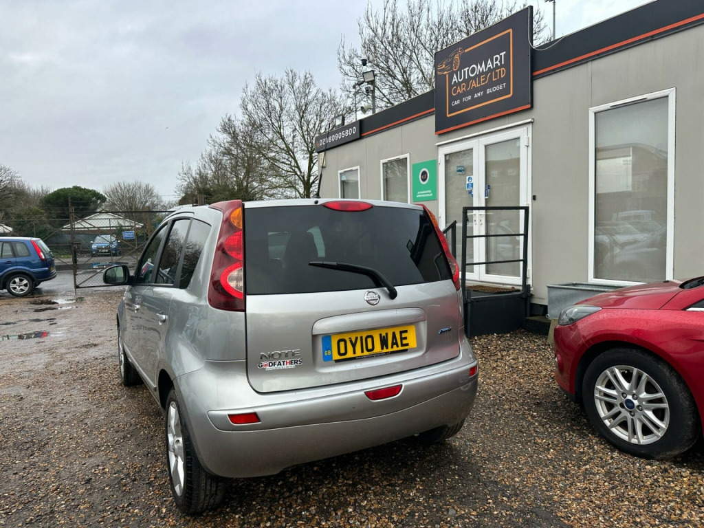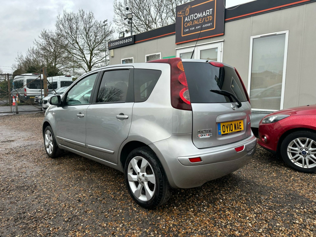 ******** SAME DAY FINANCE AVAILABLE ******** COMES WITH 03 MONTHS FREE WARRANTY ********* **********PERFECT EXAMPLE OF EXCELLENT CAR********* Another Perfect example of 2010 Nissan Note 1.4 N-Tec SE Special Edition , 5 dr , Hatchback , 5 Seats , 117 bhp with Metallic Silver Colour , and Full Grey / Black Velour Interior which has just covered 81000 miles (warranted) .M A N U A L , 81000 Miles , 2010 NISSAN NOTE 1.4 N-TEC SE Special Edition , 5dr Hatchback , 117 bhp , 5 Seats , 10 Reg , Metallic Silver Colour , Excellent Condition , Full Grey / Black Velour Interior , Power Steering , Remote Central Locking , Adjustable Steering Column / Wheel , Front and Rear Head Restraints , Immobiliser ,Front and Rear Fog Lights , Traction Control , Iso-fix child seat , A I R C O N D I T I O N I N G / Climate Control , Anchor Points , A B S ,Body colour Bumpers , Multiple Air - bags , Electric Mirrors , Radio / CD Player , Alloy Wheels , Just been Fully Valeted , Full Service History + Old m.o.ts to Prove Mileage , 4 Good Tyres , M.O.T Till APRIL 2026 , Ideal First / Family Car , Very Clean in and out , Cheap to Run and insure , Cheap to Tax , Price for Quick sale . oth- acenta- anthracite