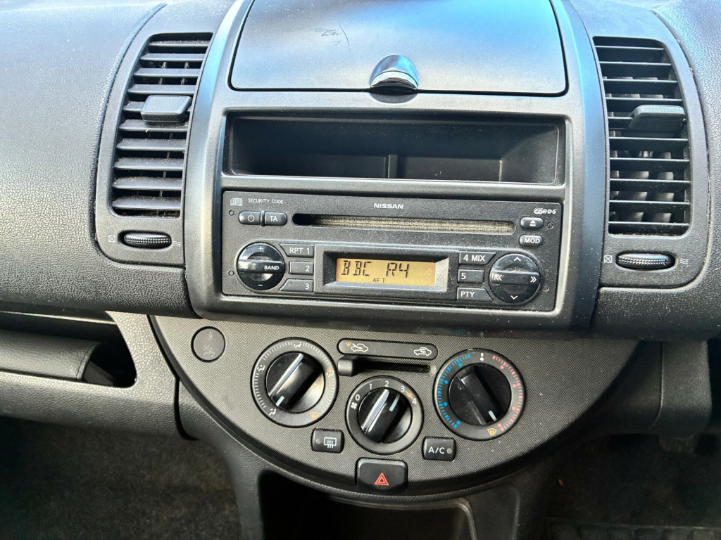 Introducing the 2006 Nissan Note 1.4 16v SE Hatchback, with a mileage of 113219 miles and powered by efficient petrol. This 5-door hatchback comfortably seats 5 and is ULEZ compliant, making it perfect for city driving. With 87 bhp and emitting 150 g/km of CO2, this manual transmission car is both powerful and environmentally friendly. Safety features include Air Bag Driver, Air Bag Passenger, and Air Bag Side, along with Anti-Lock Brakes and Central Door Locking, providing peace of mind on the road. Don't miss out on the opportunity to own this practical and reliable vehicle that's perfect for everyday use. r bag driver, air bag passenger, air bag side, anti-lock brakes, central door locking, centre rear seat belt, front fog lights, head air bags, head restraints, immobiliser, power-assisted steering, air-conditioning, electric windows (front), in car entertainment (radio/cd), manual air conditioning with pollen filter, speakers, upholstery cloth, alloy wheels (15in), body coloured bumpers, mirrors external, side protection mouldings, spare wheel