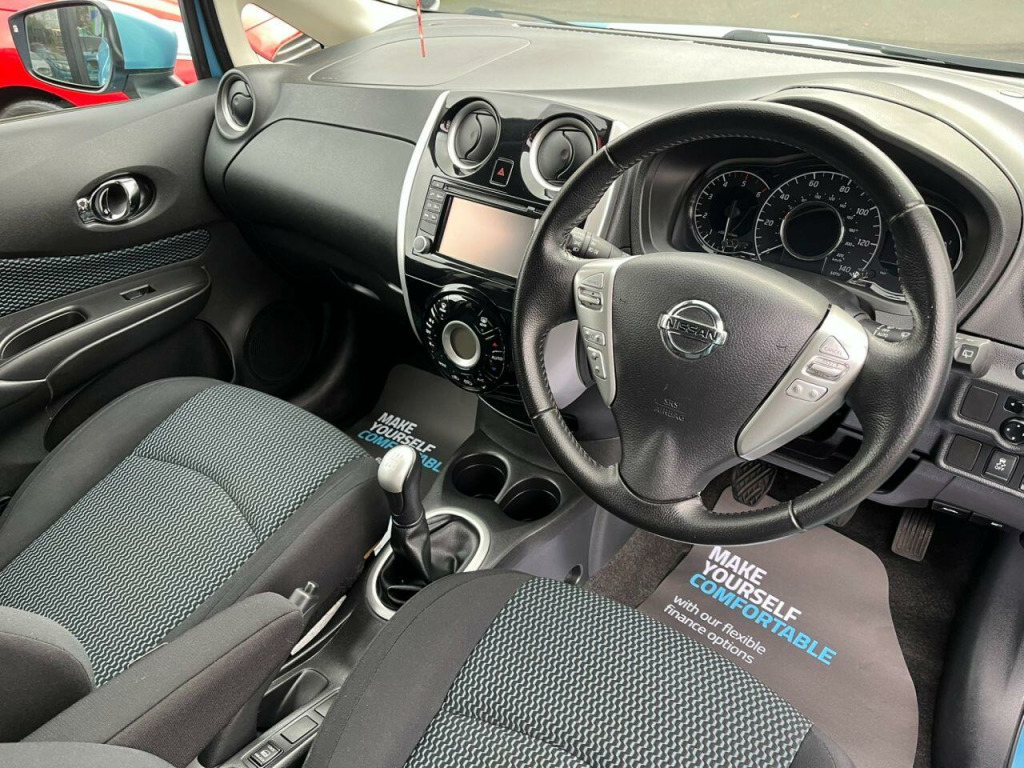 . 15in Alloy Wheels, 60-40 Split Rear Folding Seats, ABS - Anti Lock Brakes, Airbag - Driver, Airbag - Front Passenger, Airbags - Curtain, Airbags - Side, Alarm, Armrest - Rear, Auto Rain Sensing Wipers, Automatic Headlights, Bluetooth Telephone Integration, Body Coloured Handles, Body Coloured Side Mouldings, Body Coloured Wing Mirrors with Integrated LED Indicators, Brake Assist, Bumpers - Body Coloured, CD Radio, Chrome Front Lip and Trunk Finisher Strip, Climate Control, Cruise Control with Speed Limiter, DAB Radio, Daytime Running Lights, Driver Seat Height Adjustment, EBD - Electronic Brakeforce Distribution, Eco Driving Mode, Eco Meter, ESP - Electronic Stability Programme, First Aid Kit, Flexi-Board Boot Storage System, Front and Rear Electric Windows, Front Armrest, Front Cabin and Luggage Compartment Lights, Front Fog Lights, Gear Shift Indicator, Gloss Black Cluster, Google Send-to-Car and Google Points of Interest Functionality, Halogen Headlamps, Head Restraints - 3 Rear, Head Restraints - Front, Heated Door Mirrors, High Visibility Jackets, Immobiliser, Integrated Social-News-Travel App Compatibility, ISOFIX Child Seat Anchoring Points, Limited Edition Rear Badge, NissanConnect, Passenger Airbag Cut-Off Switch, Pollen Filter, Power Assisted Steering, Rear Cabin Light, Rear Privacy Glass, Remote Central Locking, Safety Kit, Service Indicator, Sliding Rear Bench, Speakers x4, Steering Wheel - Rake Adjustment, Steering Wheel Mounted Audio Controls, TPMS - Tyre Pressure Monitoring System, Traction Control, Trip Computer, Tyre Repair Kit, USB-AUX Socket Input, Warning Triangle.