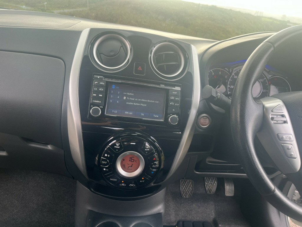 This 2014 Nissan Note 1.5 dCi Tekna 5dr is a reliable MPV with 89600 miles on the clock, powered by a diesel engine and equipped with a 5-speed manual transmission. With MOT valid until 31/07/2026 and only 1 previous registered keeper, it offers peace of mind to potential buyers. This spacious vehicle comfortably seats 5 people and has 5 doors for easy access. The car boasts a range of features including Around View Monitor, Bluetooth phone integration system, cruise control + speed limiter, digital clock, and digital trip meter. It's a practical and stylish choice for those in need of a versatile and efficient family car. ound view monitor, bluetooth phone integration system, cruise control + speed limiter, digital clock, digital trip meter, low navigation system, pas, reverse parking aid, service interval indicator, trip computer, diesel particulate filter, 6 speakers, auxiliary socket for external mp3 player, radio/cd, steering wheel audio controls, usb connection, automatic front wipers, automatic headlights, body colour bumpers, body colour door handles, body colour door mirrors, daytime running lights, electric front windows, electric rear windows, front fog lamps, headlamp levelling, heated door mirrors, high gloss black front grille, privacy glass, rain sensor, rear wiper, 60/40 split rear seats, centre console storage, climate control, driver seat height adjust, flexiboard boot storage system, front cabin and boot lamps, front headrests, front seatback pocket, front/rear armrests, isofix child seat preparation, leather steering wheel, part leather seats, pollen filter, premium cloth/leather upholstery, rear headrests, sliding rear seats, tilt adjustable steering wheel, 3 point seatbelts on all rear seats, abs with brake assist, childproof rear door locks, curtain airbags, driver airbag, esp, front side airbags, passenger airbag, passenger airbag cut-off device, side airbags, alarm, immobiliser, intelligent key with push button ignition, remote central locking, 16'' alloy wheels, tyre repair kit, 16'' Alloys