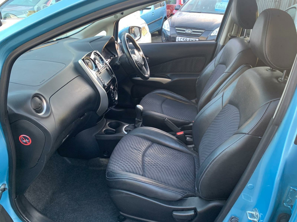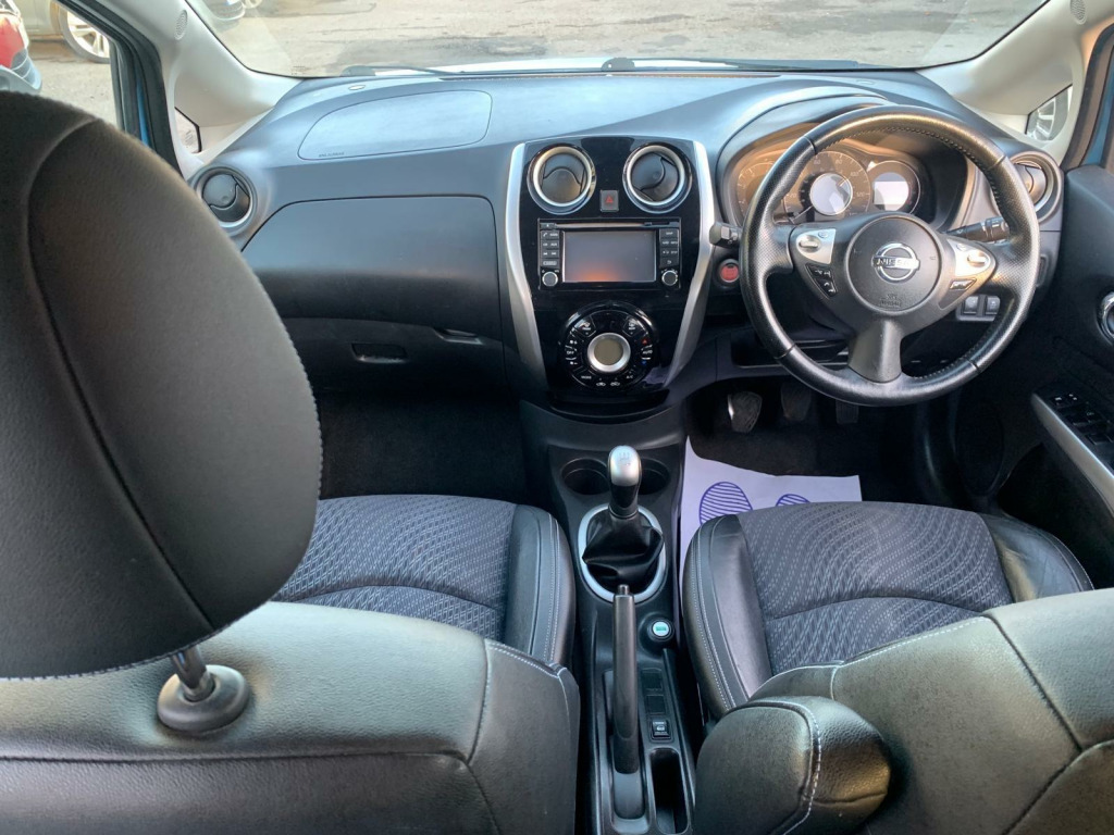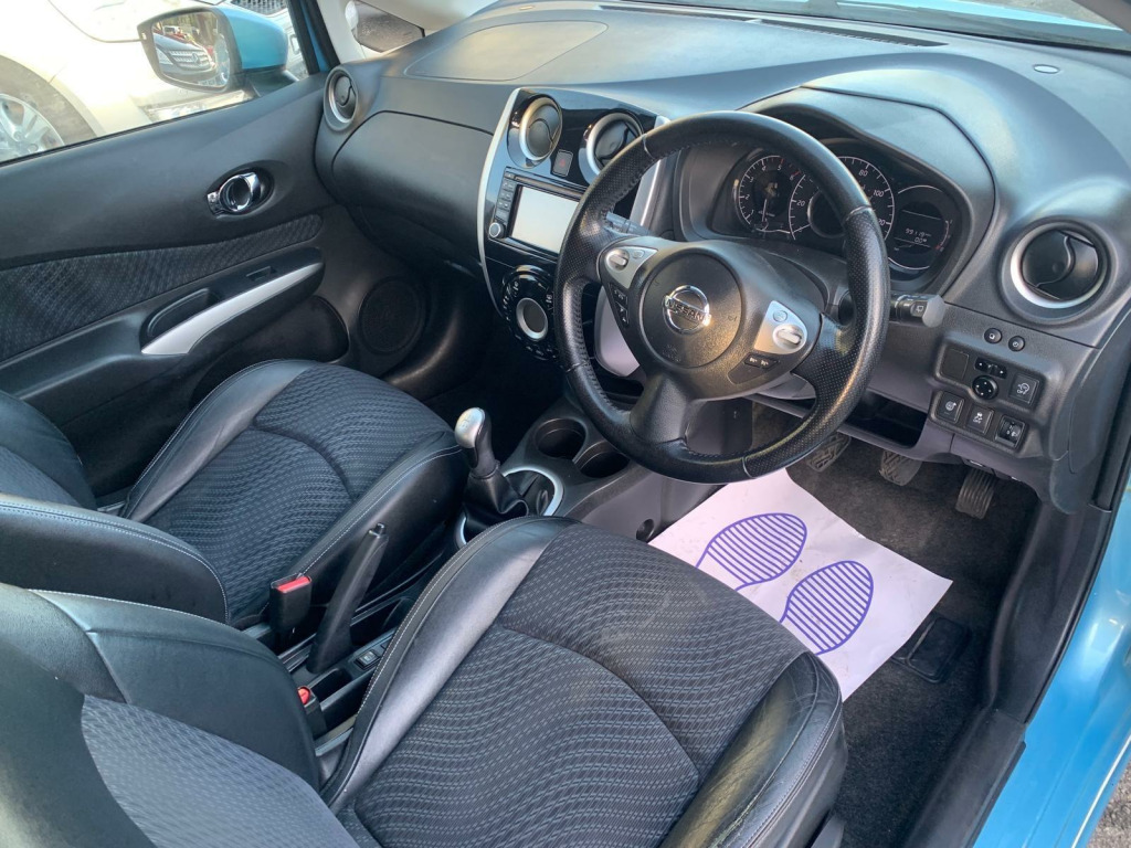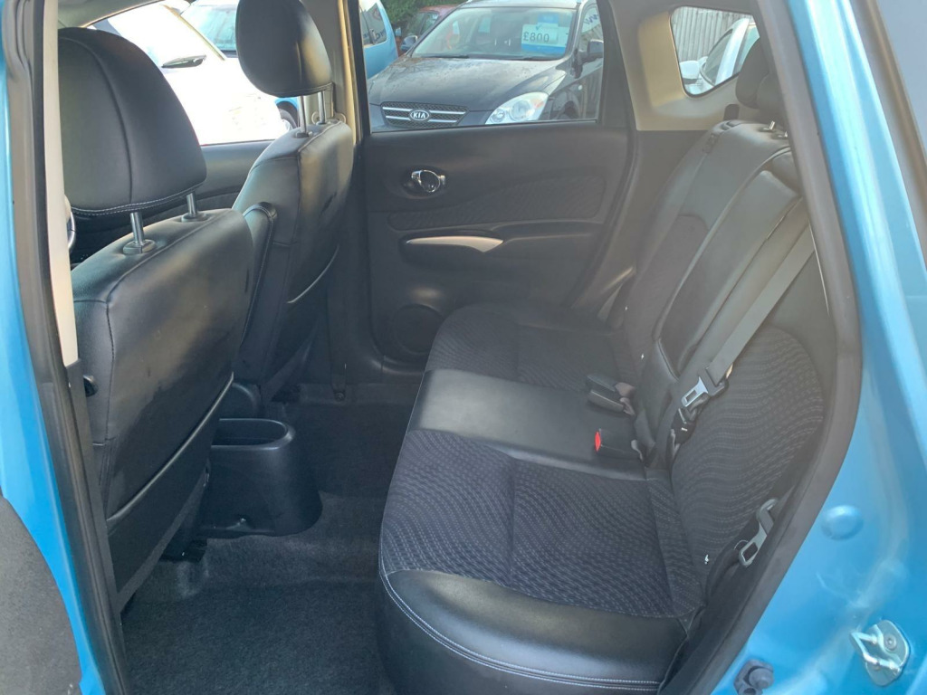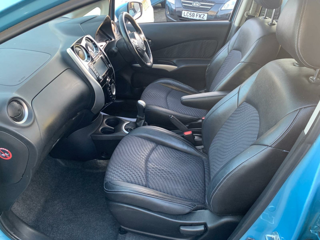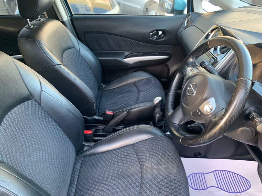 Nissan Note Tekna 1.5 Diesel, finished in metallic blue, half leather interior, 360 camera, Bluetooth, reverse camera, 10 services, long MOT. Runs and drives as it should.lovely car inside and out. Good value Car for the money 1st to see this car would buy please call for any more information my delivery available., in alloy wheels, 60-40 split rear folding seats, abs - anti lock brakes, airbag - driver, airbag - front passenger, airbags - curtain, airbags - side, alarm, armrest - rear, around view monitor - 360 bird-view, auto rain sensing wipers, automatic headlights, blind spot warning, bluetooth telephone integration, body coloured handles, body coloured side mouldings, body coloured wing mirrors with integrated led indicators, brake assist, bumpers - body coloured, cd radio, chrome front lip and trunk finisher strip, climate control, cruise control with speed limiter, dab radio, daytime running lights, driver seat height adjustment, ebd - electronic brakeforce distribution, esp - electronic stability programme, eco driving mode, eco meter, first aid kit, flexi-board boot storage system, front armrest, front cabin and luggage compartment lights, front fog lights, front and rear electric windows, gear shift indicator, gloss black cluster, google send-to-car and google points of interest functionality, halogen headlamps, head restraints - 3 rear, head restraints - front, heated door mirrors, high visibility jackets, i-key - keyless entry, isofix child seat anchoring points, immobiliser, integrated social-news-travel app compatibility, lane departure warning, leather steering wheel, limited edition rear badge, moving object detection, nissanconnect, parking aid - rear, passenger airbag cut-off switch, pollen filter, power assisted steering, rear cabin light, rear privacy glass, safety kit, safety pack, safety shield, service indicator, sliding rear bench, speakers x6, steering wheel - rake adjustment, steering wheel mounted audio controls, tpms - tyre pressure monitoring system, traction control, trip computer, tyre repair kit, usb-aux socket input, warning triangle