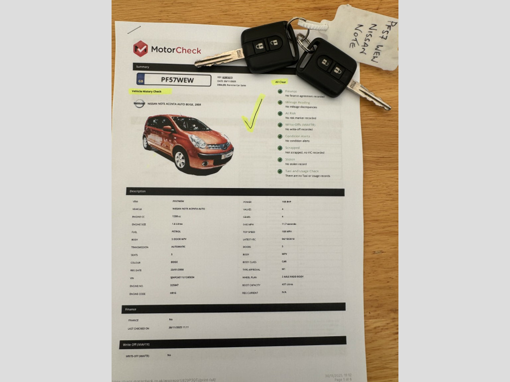 This 2008 Nissan Note 1.6 16V Acenta Hatchback is currently available for £4,475 in Pontefract West Yorkshire with Petrol engine and Auto Clutch Manual gearbox. For more information or to arrange a viewing, click here to send us an email using form below.