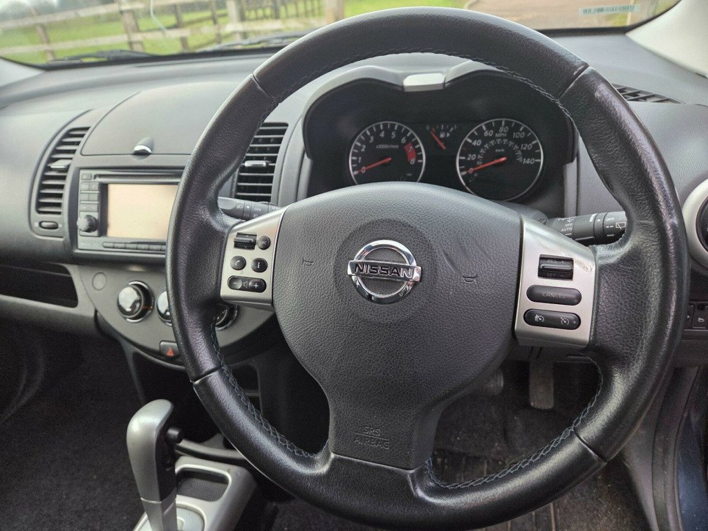 Automatci Nissan Note 1.6 16V n-tec+ Auto 5dr in a good condition - Two previous owner who well maintained the car - ULEZ free - The car was fully serviced last week - HPI Clear - Navigation System - Parking Sensors - Climate Control - 16'' Alloy Wheels - Privacy Glass // 12 months AA breakdown cover included// We offer the option of an extended national warranty of up to 3 years // Driveaway insurance available // PX Welcome // This 2012 Nissan Note n-tec+ is a superb example with a clear vehicle history check and an MOT valid until April 2026, offering peace of mind for its next owner. Powered by a responsive 1.6L petrol engine, this n-tec+ variant boasts a comfortable and convenient driving experience. Notable features include automatic air conditioning with climate control, remote keyless entry with an anti hijack feature, automatic headlights that illuminate when needed, and rear parking sensors to assist with manoeuvring. With only two previous owners, this Nissan Note has been well cared for.The Nissan Note n-tec+ stands out with its exceptionally low insurance group, making it an economical choice for many drivers. You will also appreciate the generous boot space, providing ample room for shopping, luggage, or equipment. These highlights, combined with its reliable provenance and desirable features, demonstrate how this particular Nissan Note offers excellent value and practicality compared to other vehicles in its class. in alloy wheels - two tone, 2-coat high gloss black front grille, 9-litre glovebox, abs - anti lock brakes, air conditioning - automatic, airbag - driver, airbag - front passenger, airbags - curtain, airbags - side, armrest - driver, armrest - rear, auto rain sensing wipers, automatic headlights, black door handles and mirrors, black side moulding, body coloured side mouldings, body-coloured door handles, brake assist, bumpers - body coloured, cd radio with 6 speakers, central locking with superlocks, centre console storage areas, child-proof door locks, chrome fog light finishers, combimeter with chrome dial rings, cruise control, digital trip meter, door mirrors - silver painted, driver seat height adjustment, driver side arm rest, ebd - electronic brakeforce distribution, esp - electronic stability programme, electric heated mirrors, electric speed-sensitive power steering, flexi-board boot storage system, friendly lighting system with battery save, front cabin and luggage compartment lights, front electric windows, front fog lights, front passenger seatback pockets, front seat storage pockets, halogen headlamps, head restraints - 3 rear, headlight leveller, isofix child seat anchoring points, immobiliser, integrated drive computer, leather steering wheel, mp3 auxiliary input, nissan connect - with piano black suround, passenger airbag cut-off switch, pollen filter, rear cabin light, rear electric windows, rear parking sensors, rear privacy glass, remote keyless entry with anti-hijack feature, secret storage tray under front passenger seat, steering wheel - controls for stereo and drive computer, tachometer, tailgate wiper, tilt adjustable steering wheel, usb auxiliary input