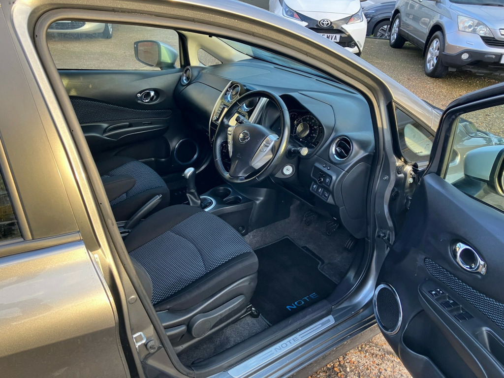 A Nissan Note 1.2 N-Tec Hatchback 5 Dr Petrol Manual Euro 6 (s/s) (80 ps) with an incredible 17,000 Miles from new. Thanks to the very low mileage and cosseted ownership , this vehicle is in splendid condition. Features: The n-tec trim includes a 5.8-inch touchscreen with satellite navigation, DAB digital radio. a reversing camera, climate control, and cruise control, 16-inch alloy wheels, rear privacy glass, and automatic headlights/wipers. Practical, efficient, and well-equipped small car, ideal for city driving and small families. Euro 6 emissions standards, making it ULEZ compliant for driving in London and Annual road Tax just £20., in alloy wheels, aerodynamic front bumper, black bezel headlamps, carbon look rear bumper, electric adjustable door mirrors, front electric windows, glossy black front grille, heated door mirrors, rear privacy glass, satin silver door handles and mirror caps, side mouldings, tyre repair kit, n-tec rear badge, 60-40 split rear folding seats, auto rain sensing wipers, blue stitching on steering wheel, climate control, driver seat height adjustment, flexi-board boot storage system, front cabin and luggage compartment lights, front and rear armrests, gloss black centre console, leather covered steering wheel, rear cabin light, sliding rear bench, steering wheel mounted audio controls, tilt adjustable steering wheel, abs - anti lock brakes, brake assist, ebd - electronic brakeforce distribution, esp - electronic stability programme, front-side and curtain airbags, isofix child seat anchoring points, immobiliser, passenger airbag cut-off switch, rear door child locks, remote central locking with superlocking, remote keyless entry, traction control, automatic headlights, daytime running lights, front fog lights, halogen headlamps, blind spot warning, cruise control with speed limiter, drive trip and eco-computer, eco driving indicator, eco driving mode, eco meter, lane departure warning, moving object detection, power assisted steering, rear colour reversing camera, tpms - tyre pressure monitoring system, bluetooth with microphone, cd radio, dab and internet radio with 6 speakers, nissanconnect 5.8in touch screen navigation and entertainment system, usb-aux socket input