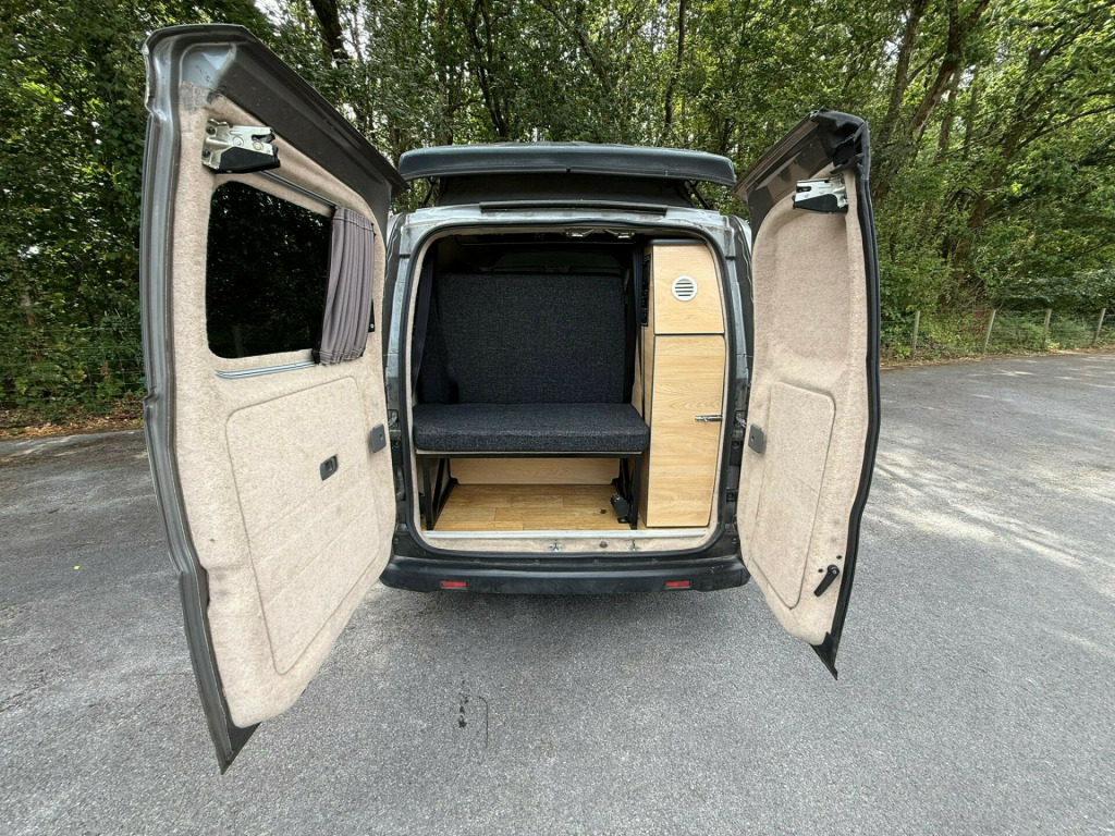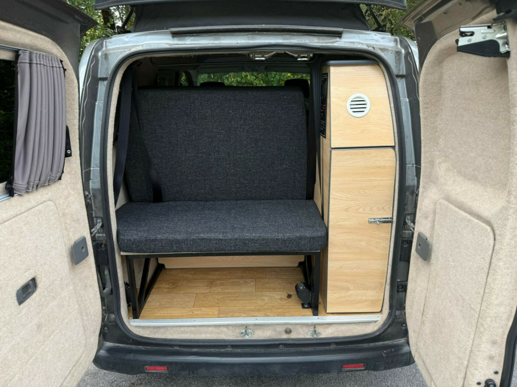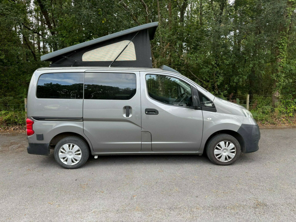 Discover the freedom of compact touring with this 2014 Nissan NV200, expertly converted by Sussex Campervans. With 90,500 miles, this clever camper combines reliability with a practical and stylish layout. It features a pop-top roof for extra headroom and sleeping space, a rock 'n' roll bed that easily folds away for daytime use, and four belted seats, making it perfect for couples or small families ready to hit the road.Inside, you'll find all the essentials for comfortable travel - a sink and hob for cooking on the go, a 12V fridge freezer to keep your supplies fresh, and an electric hook-up for campsite convenience. Despite its compact size, the NV200 makes excellent use of space, offering plenty of storage and versatility. Whether it's weekend escapes or extended adventures, this camper is an affordable and efficient way to embrace van life without compromise. uble bed, wardrobe, fridge, fridge freezer, hob, sink/drainer, 3 point seatbelts, central locking, electric windows, power steering, abs, air bag, immobiliser, cd player, radio, front head restraints, 240v hookup, awning rail, barn doors, cab air conditioning, pop top, reversing camera, rib bed
