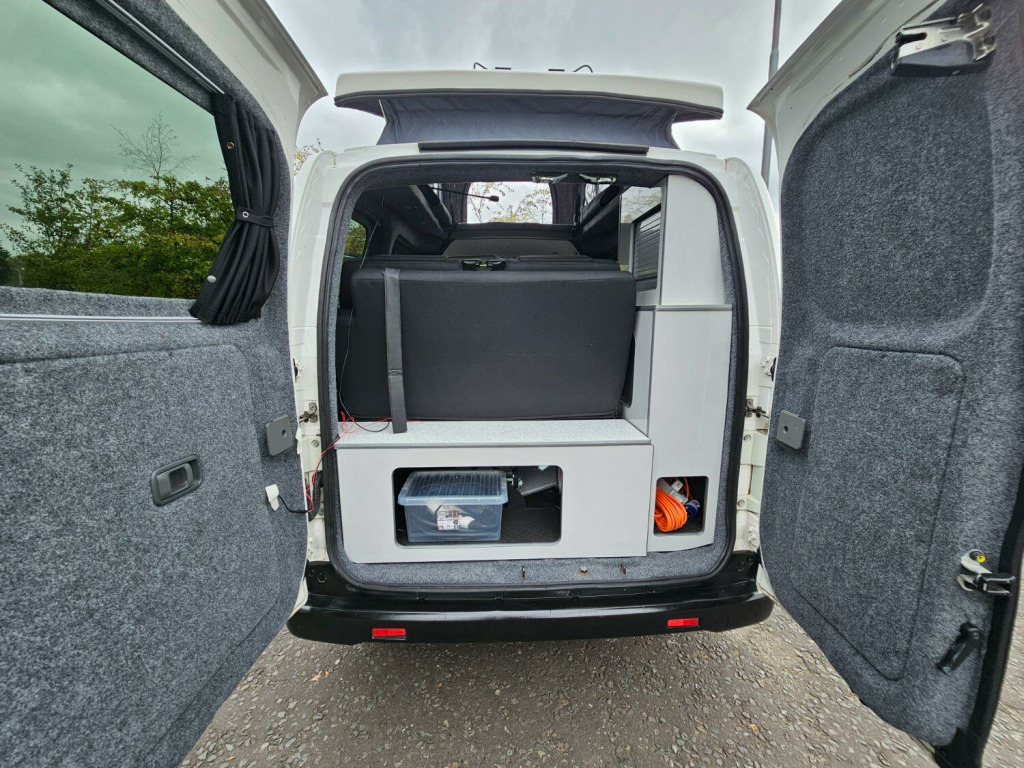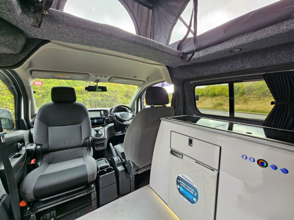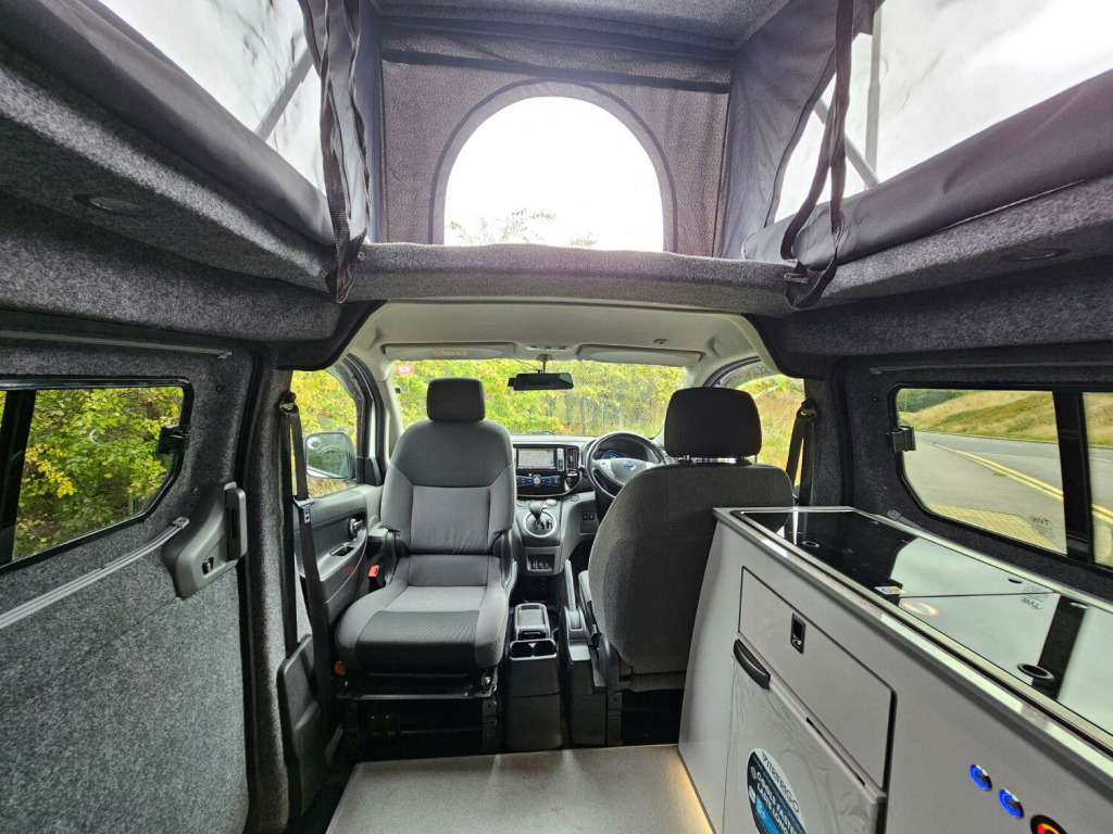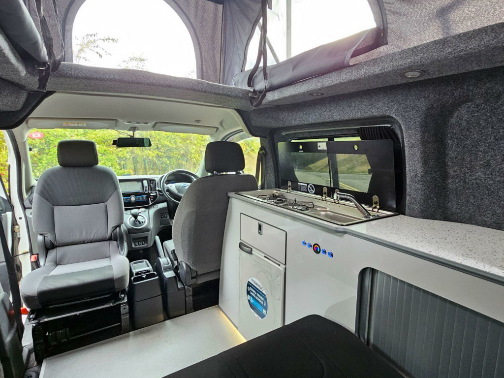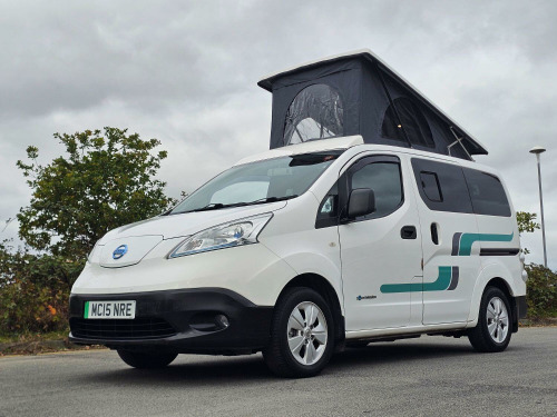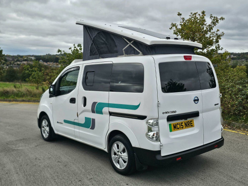 * Nissan NV200, * Tekna Electric Pop Top Campervan, * 2015 15 plate, * Automatic, * 80,000 miles, * 4 Traveling seats, * 3 berth, * RIB rock & roll bed, * Renogy battery system, * Air conditioning, * Reversing camera, * Fridge / Freezer, * LED interior lighting, * Swivel captains chair, * 240v hookup, * Gas hobs / sink, * Sat Nav, * Heated stars steering wheel, * Alloy wheels, * Solar panel, * Electric windows & mirrors