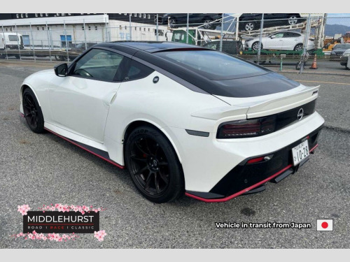 Vehicle in transit from Japan - Due February 2026, Middlehurst Road Race & Classic present this 2025 Nissan Fairlady 400Z NISMO finished in Pearl White with only 2,197 km from new. (1,365 miles). The NISMO model has a 3.0 litre, twin-turbo V6 engine and produces a whopping 420 hp with 384 lb-ft of torque. It also has a 9-speed semi-automatic gearbox (with paddle shift) as well as a limited slip differential. Being a rear wheel drive car, in combination with this amazing engine and transmission setup, really makes it a fantastic, but very usable, drivers car. This particular example is a Japanese auction grade 5 and is in immaculate condition both inside and out. — To register your interest or to reserve this lovely 400Z NISMO before it arrives in the UK, please speak to our Car Sales Department today. Here at Middlehurst Road Race & Classic, we source the highest quality import vehicles from Japan and have been doing so for over 30 years since the launch of the Nissan Skyline R33 GT-R, in 1995. If you are looking for a particular car in Japan, we will do our absolute best to source it for you.