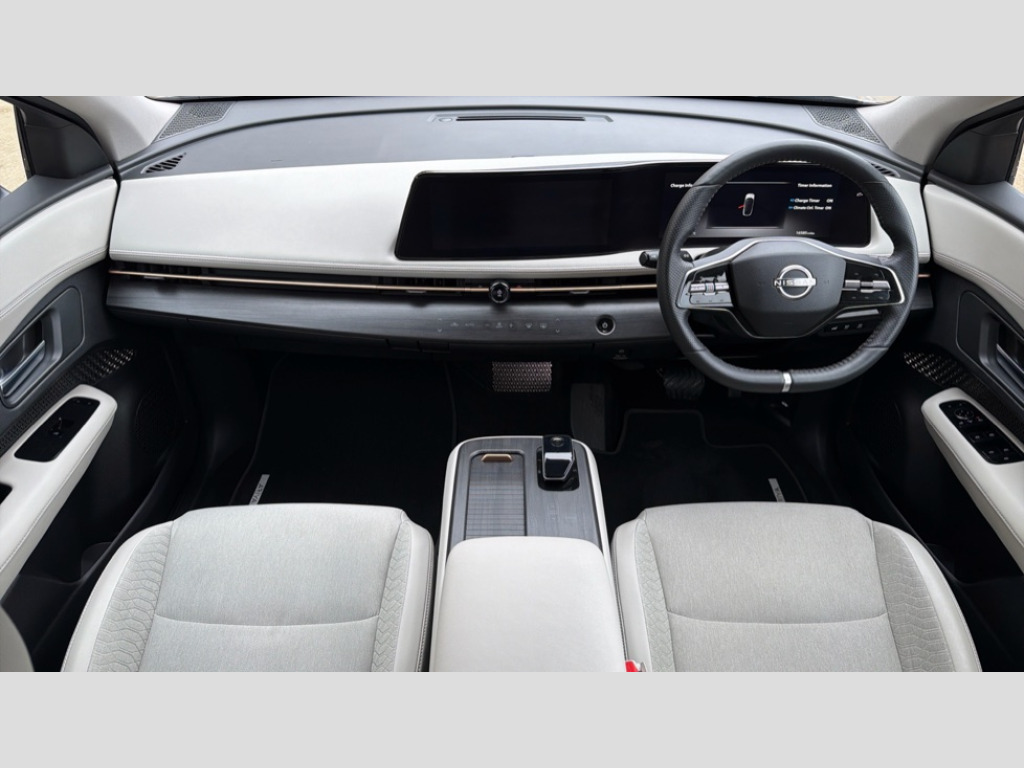 Nissan Ariya 160kW Advance 63kWh 22kWCh 5dr Auto 12.3" Full TFT screen, 12.3" navigation system screen, 360 degree digitally enhanced around view monitor, Adjustable speed limiter, Advanced driver distraction warning, Amazon alexa Integration, Auto parking system, Blind spot intervention, Bluetooth audio streaming with handsfree system, Drive modes select (Eco, normal and sport), Emergency call service, Event data recorder, Front and rear parking sensors, Hands free power tailgate, Intelligent Cruise control (ICC), Intelligent driver alert system, Intelligent speed limit assist, Intelligent traffic jam pilot and lane keep assist, Lane departure prevention, Moving object detection, Navi-Link, PAS, Predictive forward collision warning, ProPilot, Rear cross traffic alert, Telematics - notifications and connectivity services, Traffic sign recognition, Virtual personal assistant and firmware over the air capability, Wireless Apple CarPlay and wired Android Auto, Wireless phone charger, 63kWh Usable Battery Capacity, 6m EVSE 3-pin cable, 7.4 kW onboard charger, Front wheel drive, Liquid cooling and heating, Manual battery preconditioning, Max DC charging power: up to 130kW, Single motor, Type 2 mode 3 charging cable, Audio system, DAB audio, Front and rear USB connections (Type-A and Type-C), Automatic LED headlights, Follow me home headlights, Frameless rear view mirror, Heated and auto folding door mirrors, Heated front windscreen, High beam assist, LED 3rd brake light, LED daytime running lights, LED front and rear fog lights, LED rear lights, One touch front and rear electric windows with remote opening and closing, Rain sensing wipers, Rear privacy glass, Rear side wing doors, Rear wiper, Satin chrome window surround, Shark fin antenna, Super UV and infrared cut glass, Variable front intermittent wipers, 12V socket in front, 3 rear head restraints, 3 seat bench in 2nd row, 6 way electrically adjustable front seats, 60/40 split folding rear seat, Automatic dual zone climate control, Driver's electric lumbar adjustment, Front head restraints, Heat pump, Heated front seats, Heated steering wheel, ISOFIX on front passenger and rear outer seats, LED ambient lighting, Luggage board system, Plasma cluster ion air purifier, Rear air vents, Rear armrest, Seat back pockets, Single front passenger seat, Super smooth leather steering wheel, Synthetic leather/cloth upholstery, Tilt/telescopic adjustable steering wheel, 3x3 point rear seat belts, Auto hold function, Child locks on rear doors, Curtain and front side, far side airbags, Driver and passenger airbags, Electrically driven intelligent braking system, Electronic parking brake, Front ventilated brake discs, Intelligent front emergency braking with pedestrian, cyclist recognition and junction assist, Intelligent rear emergency braking with pedestrian recognition, Rear ventilated brake discs, Seatbelt pre-tensioners, Side airbags, Alarm, Alcohol interlock connection ready, Intelligent key and start push button with easy access, Remote central locking, Tyre inflation kit