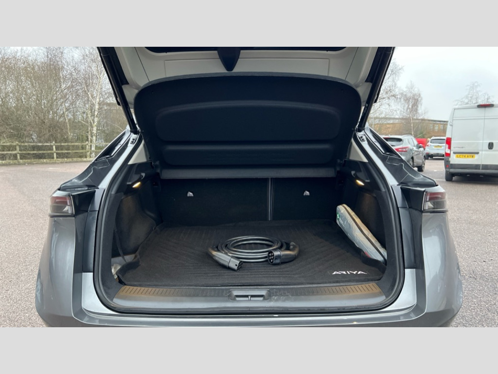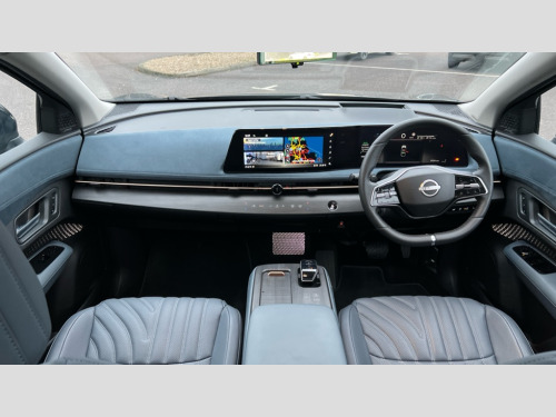 Nissan Ariya 225kW Evolve 87kWh 22kWCh 5dr e-4ORCE Auto 12.3" Full TFT screen, 12.3" navigation system screen, 360 degree digitally enhanced around view monitor, Adjustable speed limiter, Advanced windscreen head up display, Amazon alexa Integration, Blind spot intervention, Bluetooth audio streaming with handsfree system, Drive modes select (Eco, normal and sport), Emergency call service, Event data recorder, Front and rear parking sensors, Hands free power tailgate, Intelligent Cruise control (ICC), Intelligent driver alert system, Intelligent speed limit assist, Intelligent traffic jam pilot and lane keep assist, Lane departure prevention, Moving object detection, Navi-Link, PAS, Predictive forward collision warning, Pro pilot park assist, Rear cross traffic alert, Snow mode, Telematics - remote services, notifications and connectivity services, Traffic sign recognition, Virtual personal assistant and firmware over the air capability, Wireless Apple CarPlay and wired Android Auto, Wireless phone charger, 22kW onboard charger, 6m EVSE 3-pin cable, 6m Type 2 cable, 87kWh Usable Battery Capacity, All Wheel Drive (AWD), Dual motor, Liquid cooling and heating, Manual battery preconditioning, Max DC charging power: up to 130kW, Bose audio system with 10 speakers, DAB audio, Front and rear USB connections (Type-A and Type-C), Adaptive high beam assist, Advanced sequential turning lights, Auto headlight levelling, Automatic LED headlights, Dark chrome window surround, Door mirror memory, Electric opening panoramic sunroof with power sunshade, Follow me home headlights, Heated and auto folding door mirrors, Heated front windscreen, Intelligent Rear View Mirror, LED 3rd brake light, LED daytime running lights, LED front and rear fog lights, LED rear lights, Line illumination, One touch front and rear electric windows with remote opening and closing, Rain sensing wipers, Rear privacy glass, Rear side wing doors, Rear wiper, Reverse tilting door mirrors, Shark fin antenna, Super UV and infrared cut glass, Tailgate e-4ORCE badge, Variable front intermittent wipers, 12V socket in front, 3 rear head restraints, 3 seat bench in 2nd row, 60/40 split folding rear seat, 8 way electric adjust front seats with memory, Automatic dual zone climate control, Driver's electric lumbar adjustment, Front e-4ORCE entry guards, Front head restraints, Heat pump, Heated rear seats, Heated steering wheel, Heated/ventilated and cooled front seats, ISOFIX on front passenger and rear outer seats, LED ambient lighting, Luggage board system, Nappa leather upholstery, Plasma cluster ion air purifier, Power magic centre storage with table, Power sliding centre console, Rear air vents, Rear armrest, Seat back pockets, Single front passenger seat, Super smooth leather steering wheel, Tilt/telescopic adjustable electric steering wheel with memory, 3x3 point rear seat belts, Auto hold function, Child locks on rear doors, Curtain and front side, far side airbags, Driver and passenger airbags, Electrically driven intelligent braking system, Electronic parking brake, Front ventilated brake discs, Intelligent front emergency braking with pedestrian, cyclist recognition and junction assist, Intelligent rear emergency braking with pedestrian recognition, Rear ventilated brake discs, Seatbelt pre-tensioners, Advance intelligent key with A-IVI settings and start push button with easy access, Alarm, Alcohol interlock connection ready, Remote central locking, Tyre inflation kit