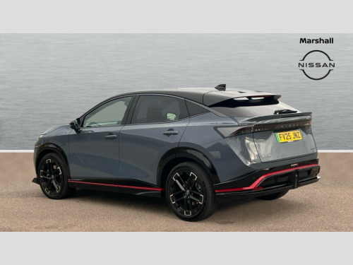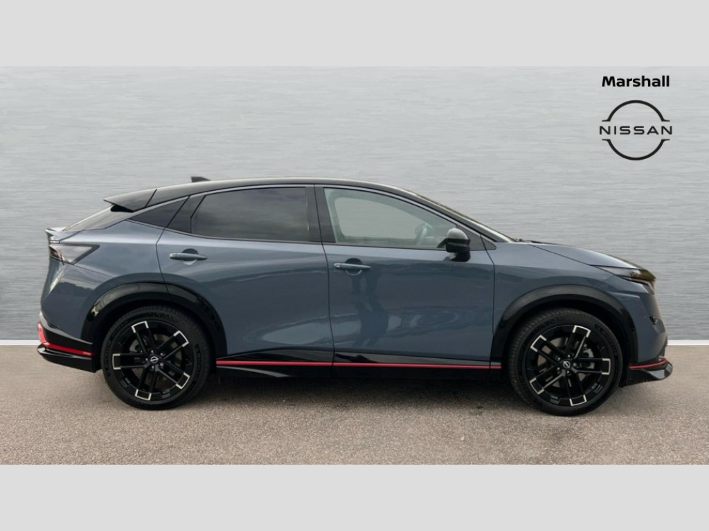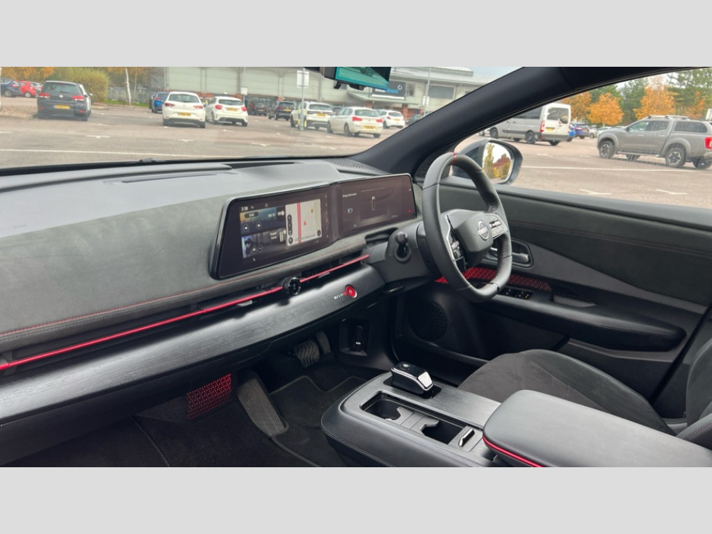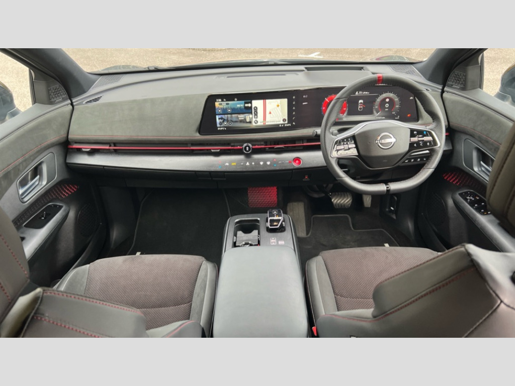 Nissan Ariya 320kW Nismo 87kWh 22kWCh 5dr e-4ORCE Auto 12.3" Full TFT screen, 12.3" navigation system screen, 360 degree digitally enhanced around view monitor, Adjustable speed limiter, Advanced windscreen head up display, Amazon alexa Integration, Blind spot intervention, Bluetooth audio streaming with handsfree system, Drive modes (Nismo, normal, eco), Emergency call service, Event data recorder, Front and rear parking sensors, Hands free power tailgate, Intelligent Cruise control (ICC), Intelligent driver alert system, Intelligent speed limit assist, Intelligent traffic jam pilot and lane keep assist, Lane departure prevention, Moving object detection, Navi-Link, PAS, Predictive forward collision warning, ProPilot assist, Rear cross traffic alert, Snow mode, Telematics - remote services, notifications and connectivity services, Traffic sign recognition, Virtual personal assistant and firmware over the air capability, Wireless Apple CarPlay and wired Android Auto, Wireless phone charger, 22kW onboard charger, 6m EVSE 3-pin cable, 6m Type 2 cable, 87kWh Usable Battery Capacity, All Wheel Drive (AWD), Dual motor, Liquid cooling and heating, Manual battery preconditioning, Max DC charging power: up to 130kW, Nismo sports suspension, Bose audio system with 10 speakers, DAB audio, Front and rear USB connections (Type-A and Type-C), Anodized red metal dash finisher, Automatic LED headlights, Dark chrome window surround, Follow me home headlights, Heated and auto folding door mirrors, Heated front windscreen, High beam assist, Intelligent Rear View Mirror, LED 3rd brake light, LED daytime running lights, LED front fog lights, Nismo centre LED rear fog lights, Nismo ducktail rear spoiler, Nismo red accent line, One touch front and rear electric windows with remote opening and closing, Rain sensing wipers, Rear privacy glass, Rear side wing doors, Rear wiper, Shark fin antenna, Super UV and infrared cut glass, Tailgate e-4ORCE badge, Two tone paint, Variable front intermittent wipers, 12V socket in front, 3 rear head restraints, 3 seat bench in 2nd row, 6 way electrically adjustable front seats, 60/40 split folding rear seat, Automatic dual zone climate control, Central storage under dashboard, Driver's electric lumbar adjustment, Front e-4ORCE entry guards, Front head restraints, Heat pump, Heated front seats, Heated steering wheel, ISOFIX on front passenger and rear outer seats, Luggage board system, Nismo red LED ambient lighting, Nismo unique leather steering wheel, Plasma cluster ion air purifier, Rear air vents, Rear armrest, Seat back pockets, Single front passenger seat, Suede/synthetic leather upholstery, Tilt/telescopic adjustable steering wheel, Nismo aero pack - Ariya, 3x3 point rear seat belts, Auto hold function, Child locks on rear doors, Curtain and front side, far side airbags, Driver and passenger airbags, Electrically driven intelligent braking system, Electronic parking brake, Front ventilated brake discs, Intelligent front emergency braking with pedestrian, cyclist recognition and junction assist, Intelligent rear emergency braking with pedestrian recognition, Rear ventilated brake discs, Seatbelt pre-tensioners, Alarm, Alcohol interlock connection ready, Intelligent key and start push button with easy access, 20" Enkei alloy wheels with gloss black finish, Tyre inflation kit