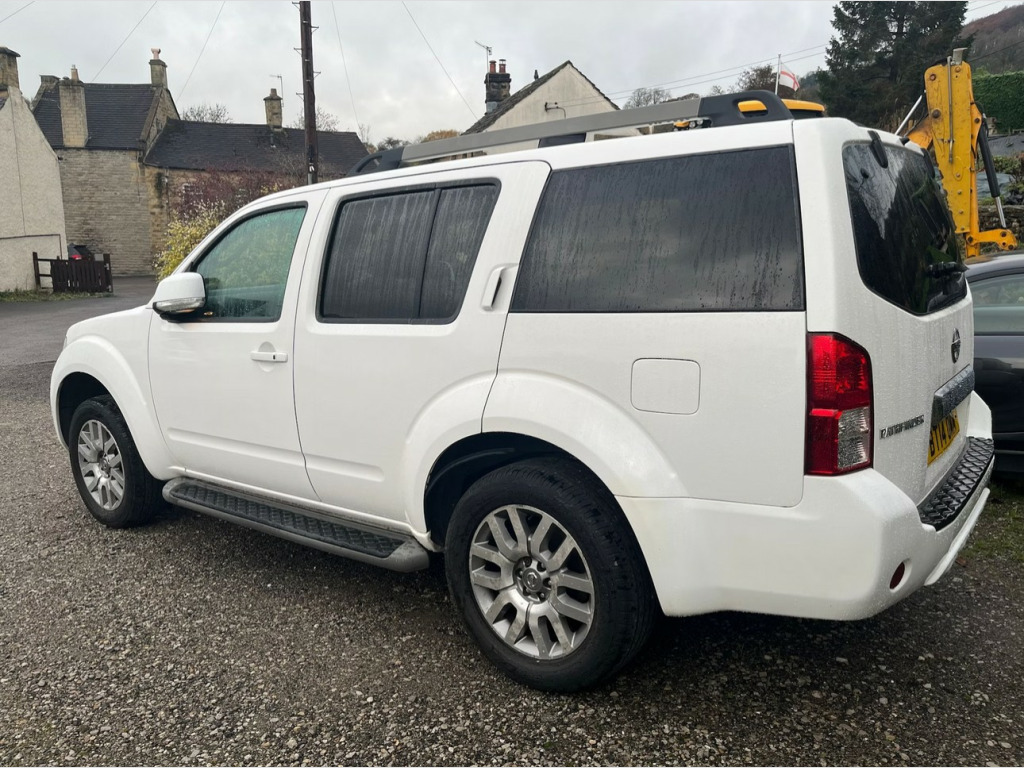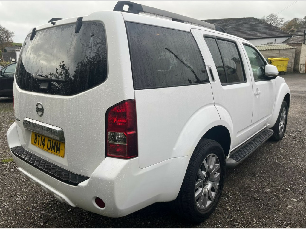 DUE IN, This 2014 Nissan Pathfinder dCi Tekna offers excellent peace of mind with its MOT valid until August 2026 and a clear vehicle history check. This capable seven seater features a robust 2.5L Diesel engine paired with a Four Wheel Drive system, making it ready for a variety of journeys. The Tekna trim level ensures a well equipped interior, including convenient memory settings for the drivers seat position, heated front seats for comfort in all seasons, and independent rear air conditioning controls to keep all passengers comfortable. Further enhancing the driving experience, this Pathfinder is fitted with Xenon headlights complete with washers for improved visibility, and an electric tilt and slide sunroof to let in extra light and air. With a substantial towing weight of 3000 kg, this vehicle is well suited for those needing to tow caravans, trailers, or horseboxes. These features collectively demonstrate how this particular Nissan Pathfinder stands out, offering a comprehensive package of comfort, practicality, and capability for its next owner.