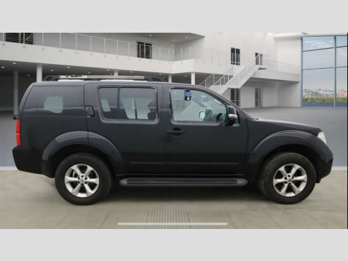 This 2009 Nissan Pathfinder TD Mammoth Sports Adventure boasts a clear vehicle history and has been owned by only two previous keepers, offering you peace of mind.  This capable Four Wheel Drive model features a robust 2.5L Diesel Engine and provides ample space for up to seven occupants.  A full 12 months MOT will be provided upon purchase, and the vehicle comes with partial service history, further enhancing its appeal.The Pathfinder TD Mammoth Sports Adventure is designed for those seeking versatility and adventure. Its four wheel drive system ensures confident handling in various conditions, making it a practical choice for families and outdoor enthusiasts alike. The generous seating capacity means you can bring along friends or family on your journeys. This particular example's low owner count and comprehensive MOT provide a strong indication of its well maintained condition. r bag driver, air bag passenger, air bag side, alarm, alloy wheels (17in), anti-lock brakes, armrest, body coloured bumpers, central door locking, centre rear seat belt, climate control, computer, cruise control, electric windows (front/rear), electronic stability programme, front fog lights, head restraints, immobiliser, in car entertainment (radio/cd/mp3/dvd), mirrors external (memory electric/heated), mirrors internal, power socket, power-assisted steering, roof rails, satellite navigation, seat - isofix anchorage point, seat height adjustment, seat lumbar support, seats electric (driver/passenger - driver memory), seats heated (driver/passenger), spare wheel, speakers, steering wheel mounted controls (audio), sunroof electric (glass tilt/slide), telephone equipment (bluetooth interface), upholstery leather