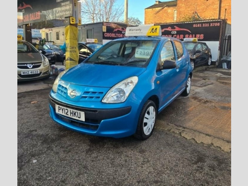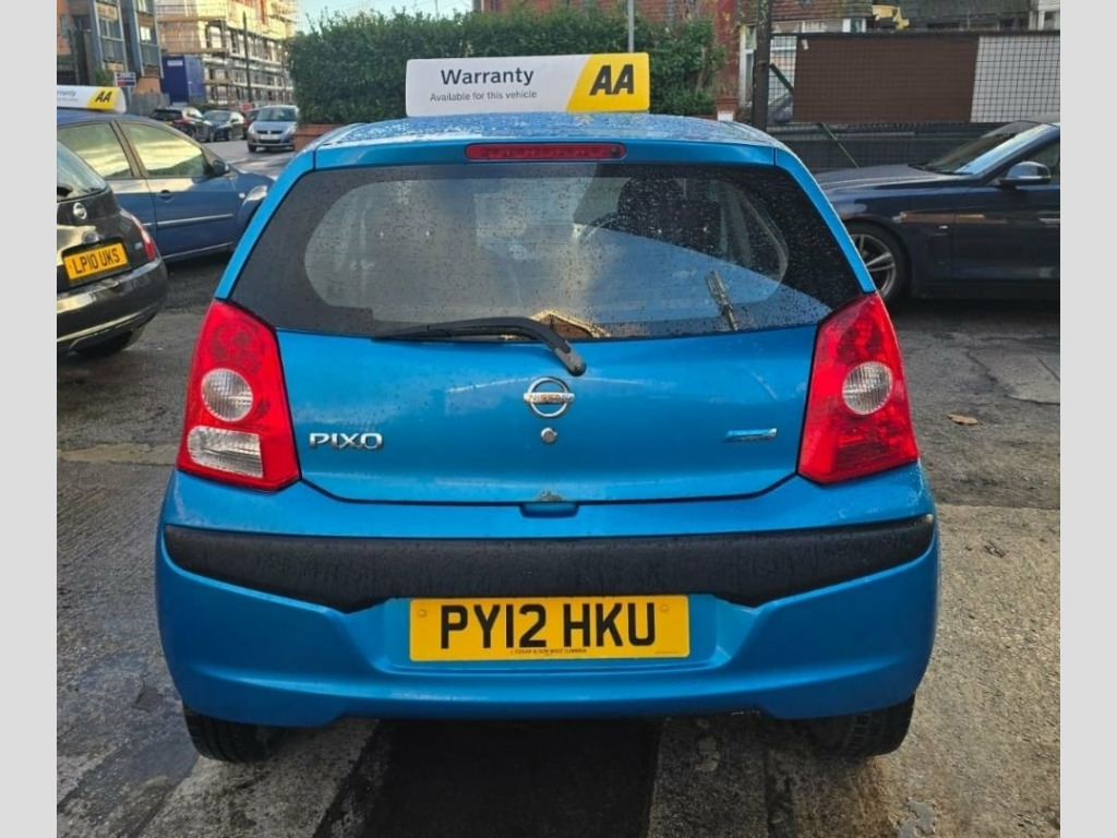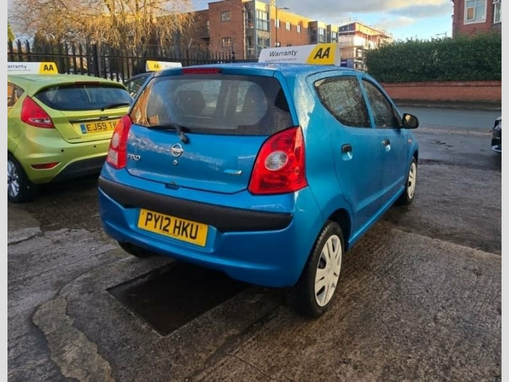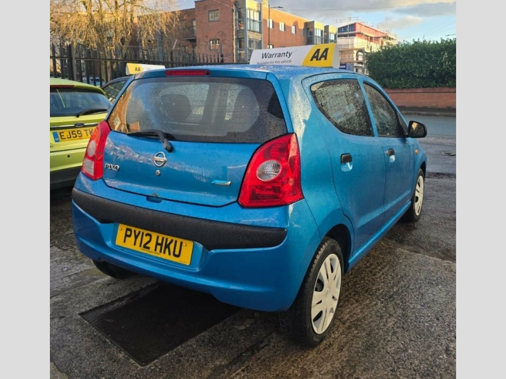 Here we have for sale a lovely 2012 nissan pixo visia in a lovely metallic electric blue. It is only 2OWNERS from brand new and this is reflected in the condition of the car. It has covered very low mileage for its age of just over 53000 miles backed by a comprehensive service history consisting of 5 main dealer service stamps. It will come with a full 12month mot with no advisories and a full service from ourselves upon purchase. Very clean car both cosmetically and mechanically. First to see will buy. Here at chorlton car sales we strive to deliver 100% customer satisfaction to all our customers therefore we offer a full 3month aa warranty for complete piece of mind. Extended warranty is available by the reputable aa warranties for up to 12months as we are approved dealers for them. They are the uks number one warranty company. We are now proudly part of the aa dealer promise as aa approved dealers which means you can buy through us with complete confidence. Delivery available. 5day driveaway insurance available.12month aa breakdown cover with all vehicles. All major cards accepted. All forms of payment accepted. Open 7days a week Sky Blue, 12V Socket - Front, 14in Steel Wheels, 2 Rear Door Storage Pockets, 2 Rear Headrests, ABS - Anti Lock Brakes, Airbag - Driver, Airbag - Front Passenger, Auto Dimming Rear View Mirror, Brake Assist, CD Player with MP3 playback, Child-Proof Door Locks, Door Mirrors - Manually Adjustable, EBD - Electronic Brakeforce Distribution, Front Cabin Light, Front Cupholders x2, Headlight Leveller, ISOFIX Child Seat Anchoring Points, Immobiliser, Parcel Shelf, Power Assisted Steering, Speakers x2, Tilt Adjustable Steering Wheel, Vanity Mirror