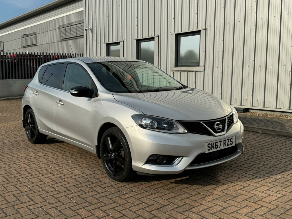 This is a 2017 Nissan Pulsar DIG-T N-Connecta Style, a car with a 1.2L petrol engine and a Euro 6 emission class. The N-Connecta Style trim comes with several features designed for convenience and comfort. The intelligent key with a start push button offers keyless entry, while Bluetooth telephone integration allows for hands-free connectivity. Automatic headlights with a dusk sensor ensure optimal visibility. The tech pack includes a rear camera to help with parking. Dual-zone climate control air conditioning allows both the driver and passenger to set their preferred temperatures.With only 43,000 miles on the clock, this Nissan Pulsar has low mileage. The fuel economy is a real selling point, achieving 54 mpg, which is better than similar vehicles. Acceleration from 0 to 62mph takes just 10.7 seconds, which is quicker than you might expect. The large boot space is another benefit, making it more practical than other cars in its class., 18in alloy wheels - black diamond cut, 5in high definition full colour tft screen, 60-40 split folding rear seats, ABS with EBD and brake assist, am-fm-cd audio system, aux socket for mp3 player, Alarm system and engine immobiliser, Anti dazzle rear view mirror, audio cd with 6 speakers, auto rain sensing wipers, automatic headlights - dusk sensor, Black door mirrors, Black honeycomb front grille, bluetooth telephone integration, Carbon effect rear diffuser, chrome window surrounds, Cruise control with speed limiter, Daytime running lights, Driver and Passenger Seat Lumbar Support, driver-passenger-side and curtain airbags, dual zone climate control air conditioning, esp - electronic stability programme, Forward emergency braking, Front fog lights, front seat belt height adjustment, front seat belts with load limiter and pre-tensioner, Front and rear electric windows, Gear shift indicator, Headlights - Darkened Bezel Sport, heated exterior mirrors, Height adjustable driver seat, Height adjustable front head restraints, high level rear spoiler, isofix child seat anchoring points - rear, intelligent key with start push button, led headlights and signature, Leather gear knob, Leather steering wheel, passenger seat height adjustment, Power Assisted Steering, Rear centre armrest with cupholder, rear door child locks, Rear privacy glass, remote central locking with superlocking, Steering wheel mounted audio controls, tpms - tyre pressure monitoring system, tech pack, Tilt and telescopic adjustable steering wheel, usb - ipod connectivity, vdc - vehicle dynamic control