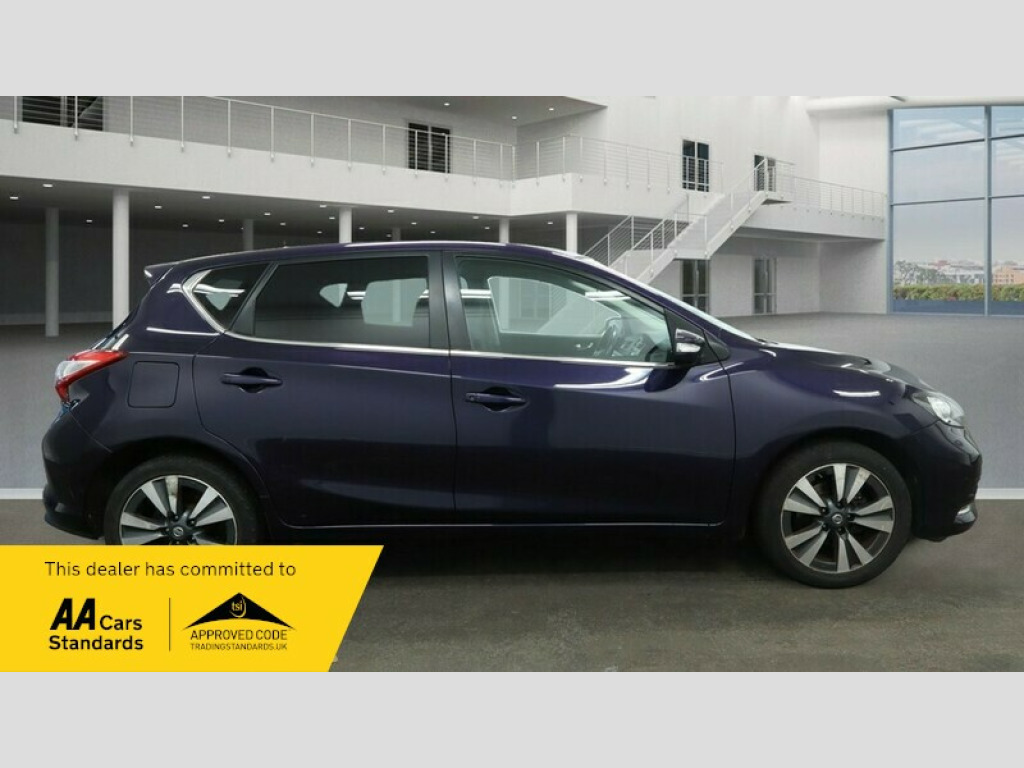 NISSAN PULSAR 1.2 DIG-T 115 N-TEC Hatchback DVSA MILEAGE-16k (21/09/2018), 22k (08/11/2019), 27k (27/10/2020), 39k (20/10/2021), 50k (02/11/2022), 53k (14/06/2023), 61k (21/10/2024) Climate Control Tyre Repair Kit 17' Alloy Wheels Privacy Glass ABS, Alarm, Automatic Rearview Mirror Dimming, Bluetooth, Body Coloured Bumpers, Brake Assist, Climate Control, Cruise Control, Daytime Running Lights, ESP, Electric Windows, Engine Immobiliser, Folding Rear Seats, Front Airbags, Front Fog Lights, Heated Door Mirrors, ISOFix Anchor Point, Keyless Door Locks, Parking Assistance, Power Assisted Steering, Privacy/Tinted Glass, Radio, Rear Spoiler, Side Impact Airbags, Start Stop System, Steering Wheel Controls, Surround Sound System, Traction Control