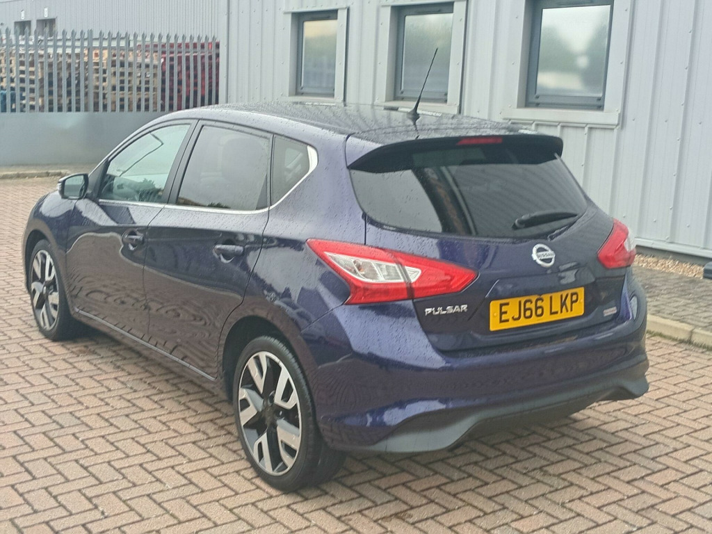 This 2016 Nissan Pulsar DIG-T Tekna offers exceptional value with its remarkably low mileage of just 55,000 miles, a testament to its careful ownership by only two previous keepers. Powered by an efficient 1.2 litre petrol engine, this Euro 6 compliant model combines practicality with modern technology. You'll appreciate the convenience of Dual Zone Climate Control, Bluetooth Telephone Integration for hands free calls, and Automatic Headlights that activate with a dusk sensor. Entry and starting are made effortless with the Intelligent Key system, and the Blind Spot Warning provides an extra layer of safety.This Pulsar DIG-T Tekna stands out with its impressive fuel economy, achieving an excellent 57 miles per gallon, which indicates it is more economical than many similar vehicles. Its low insurance group also suggests lower running costs. Furthermore, the generous boot space makes it a practical choice for families or those who need ample storage. For those interested in performance, it offers a respectable 0 to 62 miles per hour acceleration time of 10.7 seconds, demonstrating a good balance between efficiency and responsiveness., in alloy wheels - diamond cut, 6 speakers, 60-40 split rear folding seats, abs - anti lock brakes, aux-in socket, active trace control, airbag - driver, airbag - front passenger, airbags - curtain, airbags - side, alarm, armrest - rear, around view monitor - 360 bird-view, auto dimming rear view mirror, auto rain sensing wipers, automatic headlights - dusk sensor, black honeycomb front grille, blind spot warning, bluetooth telephone integration, body coloured door mirrors, body coloured handles, brake assist, bumpers - body coloured, carbon effect rear diffuser, chrome window surrounds, climate control - dual zone, cruise control with speed limiter, dab radio, daytime running lights, display screen - colour tft 5in, driver seat height adjustment, ebd - electronic brakeforce distribution, esp - electronic stability programme, electric folding and heated door mirrors, electric speed-sensitive power steering, engine start button, forward emergency braking, front armrest, front fog lights, front and rear electric windows, gear shift indicator, head restraints - 3 rear, head restraints - front, headlights - follow me home function, headlights - led signature, isofix child seat anchoring points, immobiliser, intelligent key, lane departure warning, leather gear knob, leather steering wheel, moving object detection, pollen filter, radio - cd player, rear cupholder, rear door child locks, rear privacy glass, rear spoiler, safety shield, satellite navigation - nissan connect, seats - heated front, service indicator, steering wheel mounted audio controls, superlocking, tpms - tyre pressure monitoring system, tilt and telescopic adjustable steering wheel, touch screen - colour 5.8in, traction control, trip computer, usb - ipod connectivity