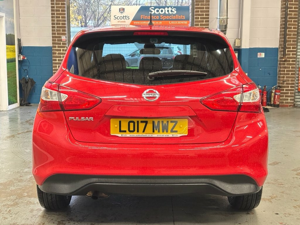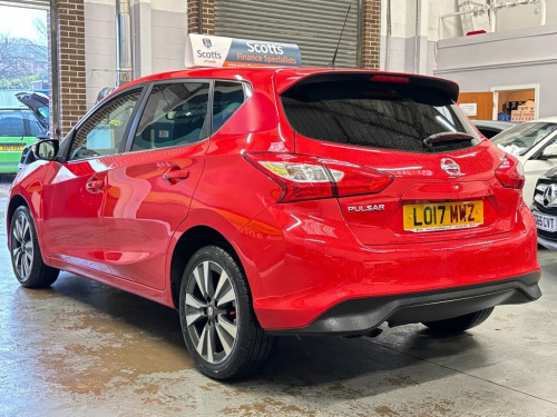 Scott's of Leeds used Car Sales are pleased to offer this NISSAN PULSAR 1.2 DIG-T Tekna Hatchback 5 Door Petrol Manual in Red. The car is in good condition throughout, in a lovely colour combination and a great specification including Satellite navigation, Heated black leather seats, Bluetooth, Cruise control, DAB digital radio, Automatic lights & wipers, Reverse camera, USB point, Aux point, Privacy glass, Electric folding mirrors, Electric windows, 6 speed gearbox, Drivers armrest, CD player, Isofix, Alloy wheels and much much more. 1 Former Keeper supplied with an up to date service record including 4 services, an MOT until December 2026 and 2 Keys ready to drive away. 3 MONTH NATIONWIDE WARRANTY provided with all vehicles. NATIONWIDE DELIVERY also available. A guaranteed 12 Months MOT can be added for an extra £100. DISCLAIMER: The above specification is true and correct. Any other specification listed elsewhere can sometimes be incorrect. Please check with Sales Executive to clarify this if needed prior to purchase. 18in Alloy Wheels - Two Tone, 5in High Definition Full Colour TFT Scre, 60-40 Split Folding Rear Seats, ABS with EBD and Brake Assist, AM-FM-CD Audio System, AUX Socket for MP3 Player, Alarm System and Engine Immobiliser, Anti Dazzle Rear View Mirror, Audio CD with 6 Speakers, Auto Rain Sensing Wipers, Automatic Headlights - Dusk Sensor, Black Honeycomb Front Grille, Bluetooth Telephone Integration, Body Coloured Doors Mirrors and Handles, Carbon Effect Rear Diffuser, Chrome Window Surrounds, Cruise Control with Speed Limiter, Daytime Running Lights, Driver and Passenger Seat Lumbar Support, Driver-Passenger-Side and Curtain Airbag, Dual Zone Climate Control Air Conditioni, ESP - Electronic