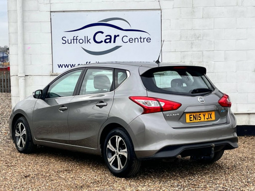 NISSAN PULSAR 1.5 dCi Acenta Hatchback 5dr Diesel Manual Euro 5 (s/s) (110 ps) Service History and 12 Months MOT 6 Months Blue Chip Warranty Road Side Assistance (Optional) Located at Lowestoft 16in Alloy Wheels - Diamond Cut, 6 Speakers, 60-40 Split Rear Folding Seats, ABS - Anti Lock Brakes, AUX-In Socket, Active Trace Control, Airbag - Driver, Airbag - Front Passenger, Airbags - Side, Alarm, Armrest - Rear, Auto Dimming Rear View Mirror, Auto Rain Sensing Wipers, Automatic Headlights - Dusk Sensor, Black Honeycomb Front Grille, Bluetooth Telephone Integration, Body Coloured Door Mirrors, Body Coloured Handles, Brake Assist, Bumpers - Body Coloured, Carbon Effect Rear Diffuser, Chrome Window Surrounds, Climate Control - Dual Zone, Cruise Control with Speed Limiter, Daytime Running Lights, Display Screen - Colour TFT 5in, Door Mirrors - Electric Adjustment and H, Driver Seat Heigh