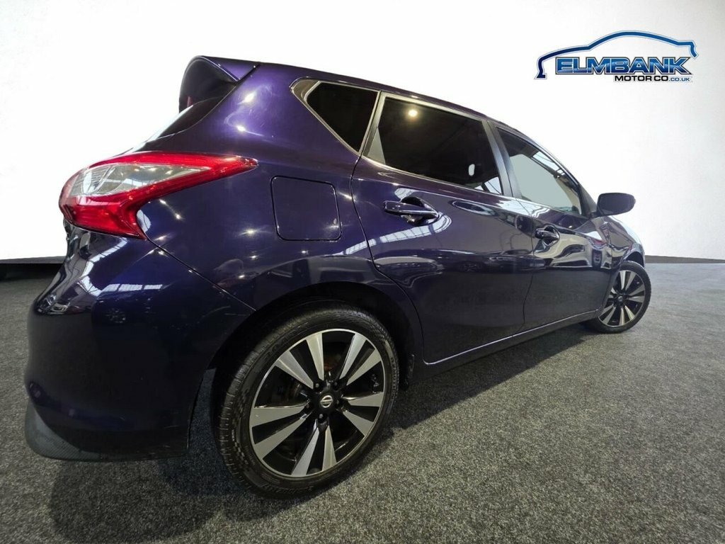 2014 64 NISSAN PULSAR 1.5 DCI N-TEC HATCHBACK 5DR DIESEL MANUAL EURO 5 (s/s) (110 ps). 5 DOOR MANUAL DIESEL HATCHBACK WITH LOW MILES, FINISHED IN METALLIC PURPLE. SPECIFICATION INCLUDE DIAMOND CUT ALLOY WHEELS, REAR PRIVACY GLASS, FULLY COLOUR CODED BODY, PURE DRIVETEC ENGINE, 6 SPEED MANUAL GEARBOX, TOUCHSCREEN NAVIGATION, PUSH BUTTON START, CRUISE CONTROL WITH SPEED LIMITER, ONBOARD COMPUTER , AUTO DIMMING REAR VIEW MIRROR AND REAR PRIVACY GLASS. CHEAP ROAD TAX AND EXCELLENT MILES PER GALLON. SUPPLIED WITH 12 MONTHS MOT INCLUDING PRE DELIVERY SERVICE AND INSPECTION. WE CAN OFFER BESPOKE FINANCE PACKAGES AND PART EXCHANGE FACILITIES. FOR MORE INFORMATION PLEASE CALL ELMBANK MOTOR COMPANY IRVINE ON 01292 292991. 17in Alloy Wheels - Diamond Cut, 6 Speakers, 60-40 Split Rear Folding Seats, ABS - Anti Lock Brakes, AUX-In Socket, Active Trace Control, Airbag - Driver, Airbag - Front Passenger, Airbags - Side, Alarm, Armrest - Rear, Auto Dimming Rear View Mirror, Auto Rain Sensing Wipers, Automatic Headlights - Dusk Sensor, Black Honeycomb Front Grille, Bluetooth Telephone Integration, Body Coloured Door Mirrors, Body Coloured Handles, Brake Assist, Bumpers - Body Coloured, Carbon Effect Rear Diffuser, Chrome Window Surrounds, Climate Control - Dual Zone, Cruise Control with Speed Limiter, DAB Radio, Daytime Running Lights, Display Screen - Colour TFT 5in, Door Mirrors - Electric Adjustment and H, Driver