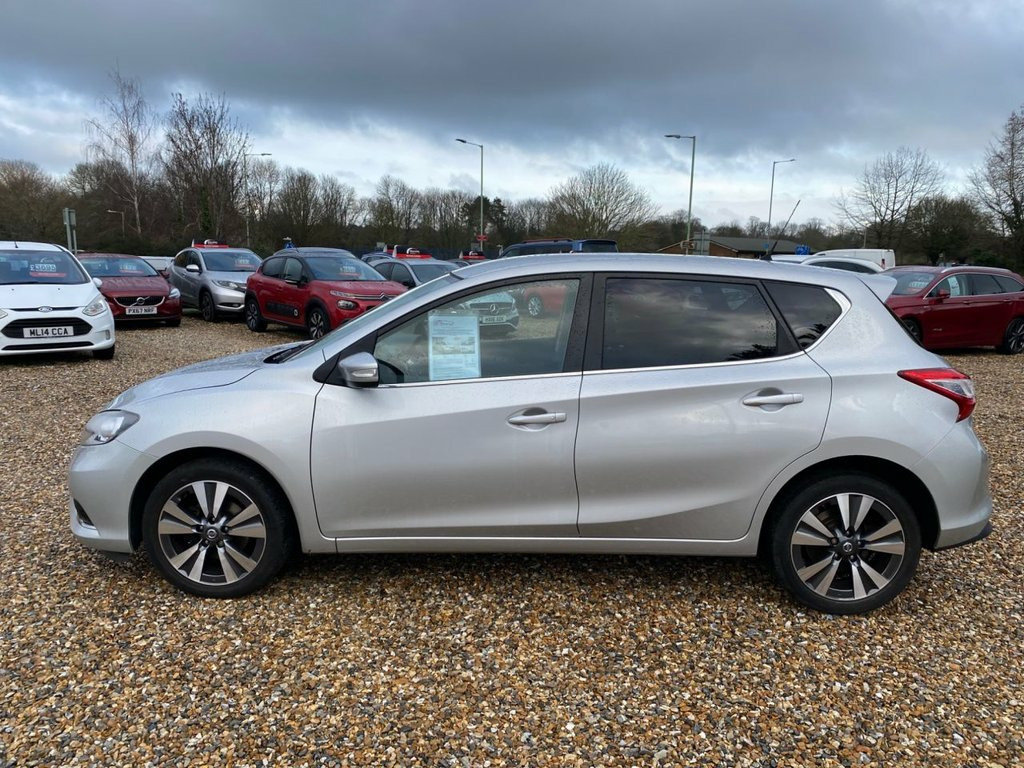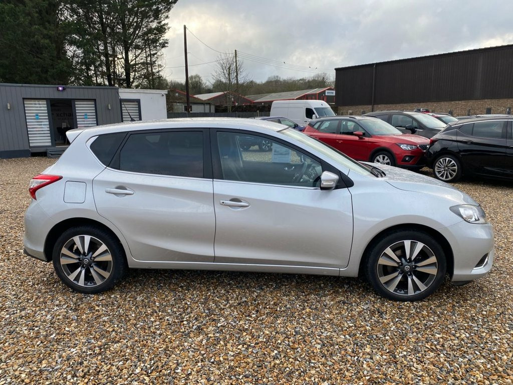 ONLY £20 A YEAR ROAD TAX+LONG MOT UNTIL 07.10.2026+5.8 INCH TOUCHSCREEN NISSAN CONNECT SATELLITE NAVIGATION SYSTEM+DAB RADIO-CD PLAYER+BLUETOOTH TELEPHONE INTEGRATION+AUTOMATIC HEADLIGHT ACTIVATION+RAIN-SENSING WINDSCREEN WIPERS+'STARBURST SILVER' PAINT+17 INCH ALLOY WHEELS. At Haverhill Car Xchange we would like to offer you our Nissan Pulsar N-Tec Hatchback which has been finished in a metallic 'Starburst Silver' paint with 'Graphite Cloth' upholstery. Excellent Specification Includes a 5.8 Inch Touchscreen Nissan Connect Satellite Navigation System, DAB Radio-CD Player, Bluetooth Telephone integration, AUX-IN Socket, USB-iPod Connectivity, Dual Zone Climate Control Air-Conditioning, Cruise Control with Speed Limiter, Gear Shift Indicator, Service Indicator, Front and Rear Electric Windows, Body Coloured Bumpers/Door Handles/Rear Roof Spoiler and Door Mirrors with Integrated Side Indicators, Automatic Headlight Activation with Dusk Sensor, Headlights with Follow-Me-Home Function, Daytime Running Lights, Rain-Sensing Windscreen Wipers, Engine Start-Stop Button, Steering Wheel, Parking Assistance with Parking Camera, Tinted Windows, 17 Inch Alloy Wheels, Electric Power Assisted Steering, ABS Breaking System, Airbags, Alarm, Immobiliser, Remote Central Locking and ISOFIX Anchorage Points for Child Seats. Cloth - Graphite, Starburst Silver, 17in Alloy Wheels - Diamond Cut, 6 Speakers, 60-40 Split Rear Folding Seats, ABS - Anti Lock Brakes, AUX-In Socket, Active Trace Control, Airbag - Driver, Airbag - Front Passenger, Airbags - Curtain, Airbags - Side, Alarm, Armrest - Rear, Auto Dimming Rear View Mirror, Auto Rain Sensing Wipers, Automatic Headlights - Dusk Sensor, Black Honeycomb Front Grille, Bluetooth Telephone Integration, Body Coloured Door Mirrors, Body Coloured Handles, Brake Assist, Bumpers - Body Coloured, Carbon Effect Rear Diffuser, Chrome Window Surrounds, Climate Control - Dual Zone, Cruise Control with Speed Limiter, DAB Radio, Daytime Running Lights, Display Screen - Colour TF