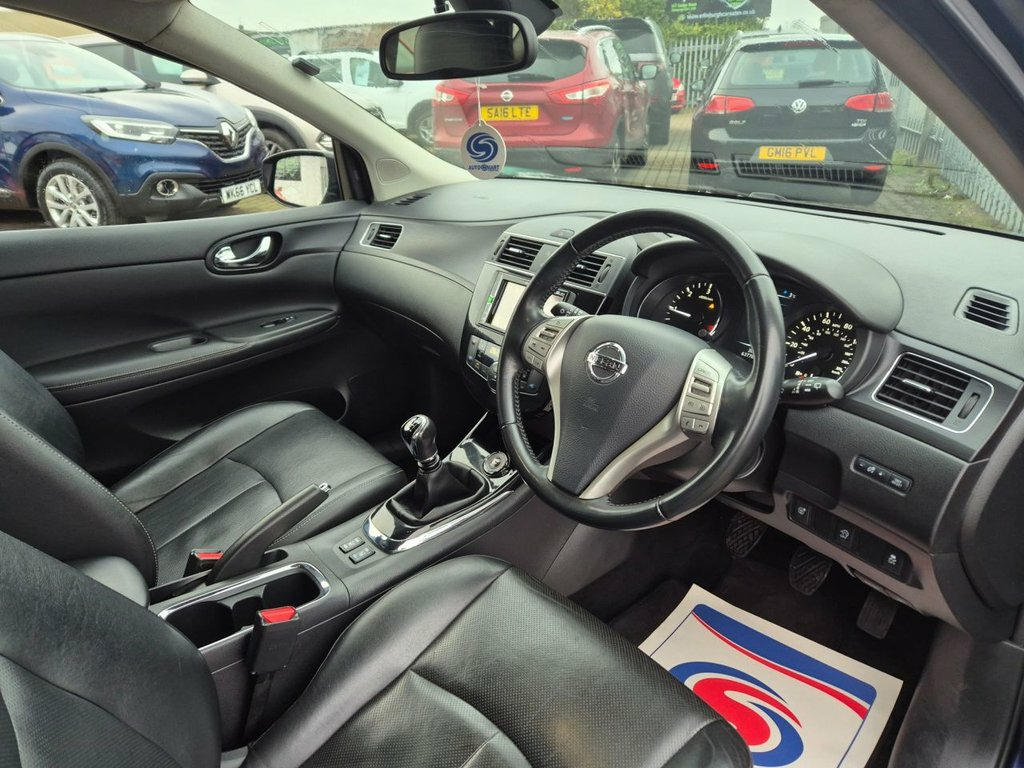 This 2016 Nissan Pulsar dCi Tekna offers exceptional value with its remarkably low mileage of just 63,598 miles. This Euro 6 compliant 1.5L diesel engine is presented with a clear vehicle history check, ensuring peace of mind. The Tekna trim level comes equipped with a comprehensive Tech Pack, featuring rear parking assistance and a 360 degree camera for effortless manoeuvring. You'll also benefit from Bluetooth telephone integration, LED headlights and signature lighting, and front heated seats for added comfort. The Nissan Pulsar dCi Tekna stands out with its impressive fuel economy, achieving a remarkable 79 mpg, which indicates it is more economical than many similar vehicles. Its low CO2 emissions also mean it is more environmentally friendly. Furthermore, this model boasts a low insurance group, suggesting lower running costs. Practicality is also a strong point, with generous boot space making it ideal for families or those who need extra room for luggage. 18in Alloy Wheels - Two Tone, 5in High Definition Full Colour TFT Scre, 60-40 Split Folding Rear Seats, ABS with EBD and Brake Assist, AM-FM-CD Audio System, AUX Socket for MP3 Player, Alarm System and Engine Immobiliser, Anti Dazzle Rear View Mirror, Audio CD with 6 Speakers, Auto Rain Sensing Wipers, Automatic Headlights - Dusk Sensor, Black Honeycomb Front Grille, Bluetooth Telephone Integration, Body Coloured Doors Mirrors and Handles, Carbon Effect Rear Diffuser, Chrome Window Surrounds, Cruise Control with Speed Limiter, Daytime Running Lights, Driver and Passenger Seat Lumbar Support, Driver-Passenger-Side and Curtain Airbag, Dual Zone Climate Control Air Conditioni, ESP - Electronic