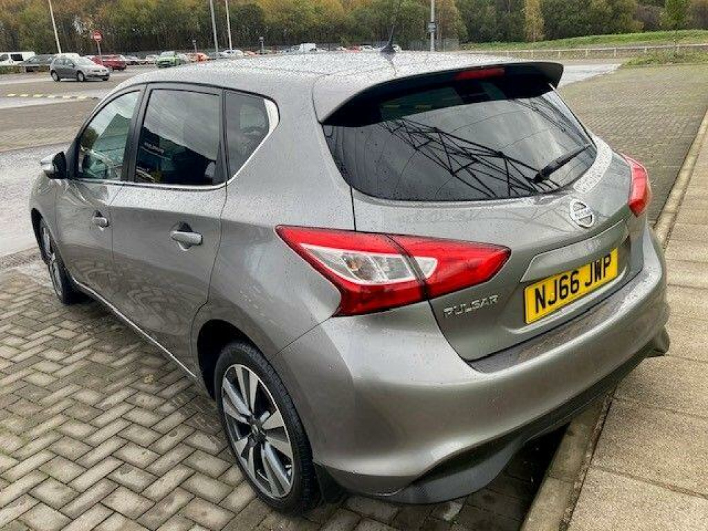 This 2016 Nissan Pulsar DIG-T n-tec is a superb example, having been cherished by only two owners from new. It boasts a responsive 1.6 litre petrol engine, meeting Euro 6 emissions standards, and comes equipped with desirable features such as dual zone climate control for personalised comfort, and a rear parking camera to aid manoeuvring. You'll also appreciate the convenience of LED signature headlights, automatic headlights that activate with the dusk sensor, and the intelligent key system for keyless entry.The Pulsar n-tec offers several advantages that set it apart. Its impressive acceleration, reaching 0 to 62mph in just 7.7 seconds, provides a dynamic driving experience. Furthermore, its low insurance group rating makes it an economical choice for many drivers, while the generous boot space ensures practicality for shopping trips or luggage. These highlights demonstrate how this Nissan Pulsar offers a compelling blend of performance, economy, and convenience.. 17in Alloy Wheels - Diamond Cut, 6 Speakers, 60-40 Split Rear Folding Seats, ABS - Anti Lock Brakes, AUX-In Socket, Active Trace Control, Airbag - Driver, Airbag - Front Passenger, Airbags - Curtain, Airbags - Side, Alarm, Armrest - Rear, Auto Dimming Rear View Mirror, Auto Rain Sensing Wipers, Automatic Headlights - Dusk Sensor, Black Honeycomb Front Grille, Bluetooth Telephone Integration, Body Coloured Door Mirrors, Body Coloured Handles, Brake Assist, Bumpers - Body Coloured, Carbon Effect Rear Diffuser, Chrome Exhaust Finisher, Chrome Window Surrounds, Climate Control - Dual Zone, Cruise Control with Speed Limiter, DAB Radio, Daytime Running Lights, Display Screen - Colour TFT 5in, Door Mirrors - Electric Adjustment and Heated, Driver Seat Height Adjustment, EBD - Electronic Brakeforce Distribution, ESP - Electronic Stability Programme, Electric Speed-Sensitive Power Steering, Engine Start Button, Forward Emergency Braking, Front Armrest, Front Fog Lights, Front and Rear Electric Windows, Gear Shift Indicator, Head Restraints - 3 Rear, Head Restraints - Front, Headlights - Darkened Bezel Sport, Headlights - Follow Me Home Function, Headlights - LED Signature, ISOFIX Child Seat Anchoring Points, Immobiliser, Intelligent Key, Leather Gear Knob, Leather Steering Wheel, Pollen Filter, Radio - CD Player, Rear Cupholder, Rear Door Child Locks, Rear Parking Camera, Rear Privacy Glass, Rear Spoiler, Satellite Navigation - Nissan Connect, Service Indicator, Sports Trim Finisher with Carbon Print Design, Steering Wheel - White Stitching, Steering Wheel Mounted Audio Controls, Superlocking, TPMS - Tyre Pressure Monitoring System, Tilt and Telescopic Adjustable Steering Wheel, Touch Screen - Colour 5.8in, Traction Control, Trip Computer, USB - iPod Connectivity, White Stitching on Gear Lever-Door Armrest and Seats.