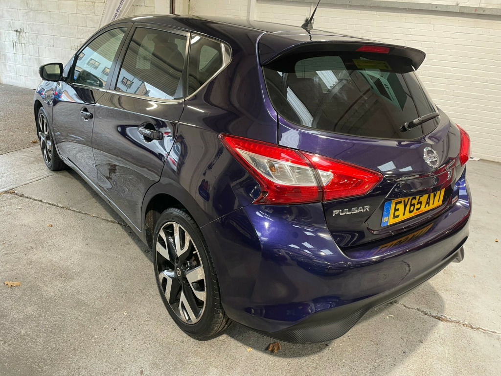 This 2015 Nissan Pulsar 1.6 DIG-T Tekna Hatchback with 52000 miles on the clock is a sleek and efficient vehicle perfect for city driving. Powered by a Petrol engine and a Manual transmission, this Euro 6 (s/s) compliant car is ULEZ compliant, making it ideal for urban areas. With 5 seats and 5 doors, it offers practicality and space for passengers and cargo. The stylish exterior features 18in Alloy Wheels, a Black Honeycomb Front Grille, Body Coloured Door Mirrors, Body Coloured Handles, and Body Coloured Bumpers. This reliable Hatchback is a great choice for anyone in need of a trustworthy and efficient vehicle. Overall this is a fabulous one owner vehicle that has been extremely well maintained by it's previous owner boasting a Full Nissan Service History. It comes with 2 keys and will be issued with a new MOT upon purchase. Actons Motor Company NEVER buys cars from auction halls, we are a family run business that has operated in Brighton and Shoreham for over 35 years. Due to expansion we have moved to a new larger Showroom in the village of Rustington in between Worthing and Littlehampton . We have a large indoor showroom that displays up to 40 cars and customer parking on our forecourt right outside. Appointments are not necessary but advisable due to the fast turnover of stock we experience. Please see our customers Google reviews based on the after sales service and sales experience we offer in alloy wheels, black honeycomb front grille, body coloured door mirrors, body coloured handles, bumpers - body coloured, carbon effect rear diffuser, chrome exhaust finisher, chrome window surrounds, electric folding and heated door mirrors, front and rear electric windows, headlights - darkened bezel sport, rear privacy glass, rear spoiler, 6 speakers, aux-in socket, bluetooth telephone integration, dab radio, display screen - colour tft 5in, radio - cd player, satellite navigation - nissan connect, touch screen - colour 5.8in, usb - ipod connectivity, 60-40 split rear folding seats, armrest - rear, auto dimming rear view mirror, auto rain sensing wipers, climate control - dual zone, driver seat height adjustment, engine start button, front armrest, head restraints - 3 rear, head restraints - front, leather gear knob, leather steering wheel, pollen filter, rear cupholder, seats - heated front, sports trim finisher with carbon print design, steering wheel - white stitching, steering wheel mounted audio controls, tilt and telescopic adjustable steering wheel, white stitching on gear lever-door armrest and seats, abs - anti lock brakes, airbag - driver, airbag - front passenger, airbags - curtain, airbags - side, alarm, brake assist, ebd - electronic brakeforce distribution, esp - electronic stability programme, forward emergency braking, isofix child seat anchoring points, immobiliser, intelligent key, rear door child locks, safety shield, superlocking, traction control, active trace control, around view monitor - 360 bird-view, blind spot warning, cruise control with speed limiter, electric speed-sensitive power steering, gear shift indicator, lane departure warning, moving object detection, service indicator, tpms - tyre pressure monitoring system, trip computer, automatic headlights - dusk sensor, daytime running lights, front fog lights, headlights - follow me home function, headlights - led signature