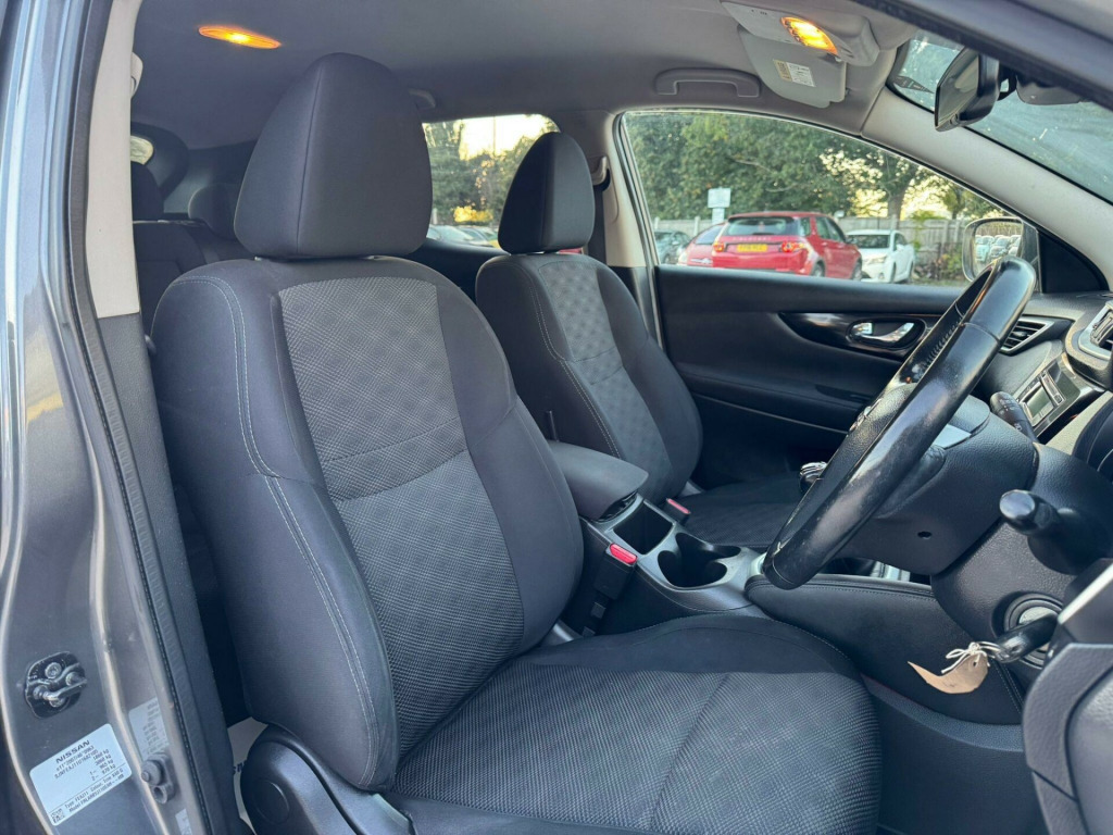 This 2016 Nissan Qashqai DIG-T Acenta is a superb example, having been owned by just one person from new. It boasts a 1.2 litre petrol engine and meets Euro 6 emissions standards. Inside, you'll find the desirable Comfort Pack, which includes an opening panoramic sunroof, allowing you to enjoy the open air. Stay connected and entertained with Bluetooth integration for your telephone, and enjoy a comfortable driving environment thanks to the dual zone climate control. The Qashqai also features automatic headlights, which adjust themselves for optimal visibility.This Qashqai DIG-T Acenta offers excellent running costs, achieving an impressive 50 miles per gallon, which is better than many similar vehicles. Its low CO2 emissions also contribute to its efficiency and environmental credentials. Furthermore, its placement in a low insurance group means that insuring this car is likely to be more affordable compared to other cars in its class. mfort pack, 17in alloy wheels - 5-spoke in silver, 6 speakers, 60-40 split rear folding seats, abs - anti lock brakes, aux-in socket, airbag - driver, airbag - passenger, airbags - curtain, airbags - side, alarm, armrest - rear, auto rain sensing wipers, black honeycomb front grille, body coloured handles, brake assist, bumpers - body coloured, chrome glass surround, climate control - dual zone, cruise control with speed limiter, display screen - colour tft 5in, door mirrors - body coloured, door mirrors - power fold and heated, driver seat height adjustment, ebd - electronic brakeforce distribution, esp - electronic stability programme, electric speed-sensitive power steering, front armrest, front fog lights, front and rear electric windows, head restraints - active front, head restraints - rear, headlights - auto, hill start assist, isofix childseat anchorage points - middle row outer seats, immobiliser, interior ambient lighting, led daytime running lights, leather gear knob, leather steering wheel, luggage board system, lumbar support, pollen filter, puncture repair kit, radio-cd, rear cupholder, rear door child locks, remote central locking, seats - passengers height adjustment, speed-sensitive autolock function, steering wheel mounted audio controls, tpms - tyre pressure monitoring system, telephone - bluetooth integration, tilt and telescopic adjustable steering wheel, traction control, trip computer, usb port, e-pkb - electric parking brake