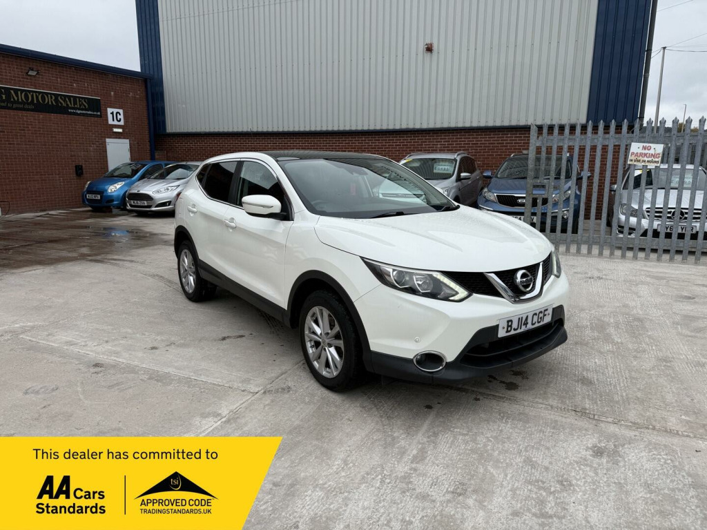 This 2014 Nissan Qashqai DIG T Acenta Premium is presented with a clear vehicle history check, offering you peace of mind. This stylish SUV features a 1.2 litre petrol engine and comes with the Acenta Premium trim level. You'll appreciate the convenience of Intelligent Key with keyless entry, rear parking sensors, and a rear view camera to assist with manoeuvring. The spacious interior is enhanced by a fixed panoramic glass roof, and the automatic headlights provide added ease on every journey.This Qashqai is designed to be economical to run, achieving an impressive 50 miles per gallon, which is better than many similar vehicles. Its low CO2 emissions also contribute to its cost effectiveness, and it sits in a low insurance group, further highlighting its value for money compared to other cars in its class. in alloy wheels - 5-spoke in silver, 6 speakers, 60-40 split rear folding seats, abs - anti lock brakes, aux-in socket, airbag - driver, airbag - passenger, airbags - curtain, airbags - side, alarm, armrest - rear, auto dimming rear view mirror, auto rain sensing wipers, black honeycomb front grille, body coloured handles, brake assist, bumpers - body coloured, chrome glass surround, climate control - dual zone, cruise control with speed limiter, dab radio, door mirrors - body coloured, door mirrors - power fold and heated, driver seat height adjustment, ebd - electronic brakeforce distribution, esp - electronic stability programme, electric speed-sensitive power steering, front armrest, front collision avoidance, front fog lights, front and rear electric windows, head restraints - active front, head restraints - rear, headlights - auto, headlights - auto high-low beam, hill start assist, isofix childseat anchorage points - middle row outer seats, immobiliser, intelligent key, interior ambient lighting, led daytime running lights, lane departure warning, leather gear knob, leather steering wheel, luggage board system, lumbar support, panoramic glass roof, parking sensor - front, pollen filter, puncture repair kit, push start-stop button, radio-cd, rear cupholder, rear door child locks, rear parking sensor, rear privacy glass, rear view camera, satellite navigation - nissan connect, service indicator, smart vision pack, speed-sensitive autolock function, steering wheel mounted audio controls, tpms - tyre pressure monitoring system, telephone - bluetooth integration, tilt and telescopic adjustable steering wheel, touch screen 7in, traction control, traffic sign recognition, trip computer, usb port, e-pkb - electric parking brake