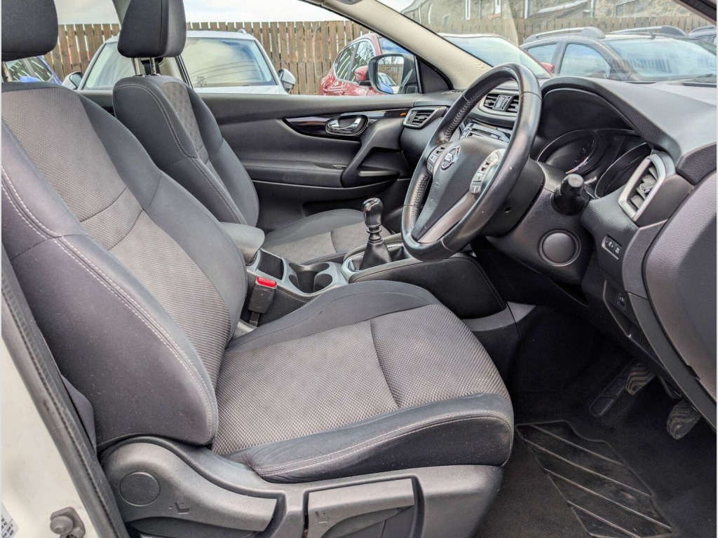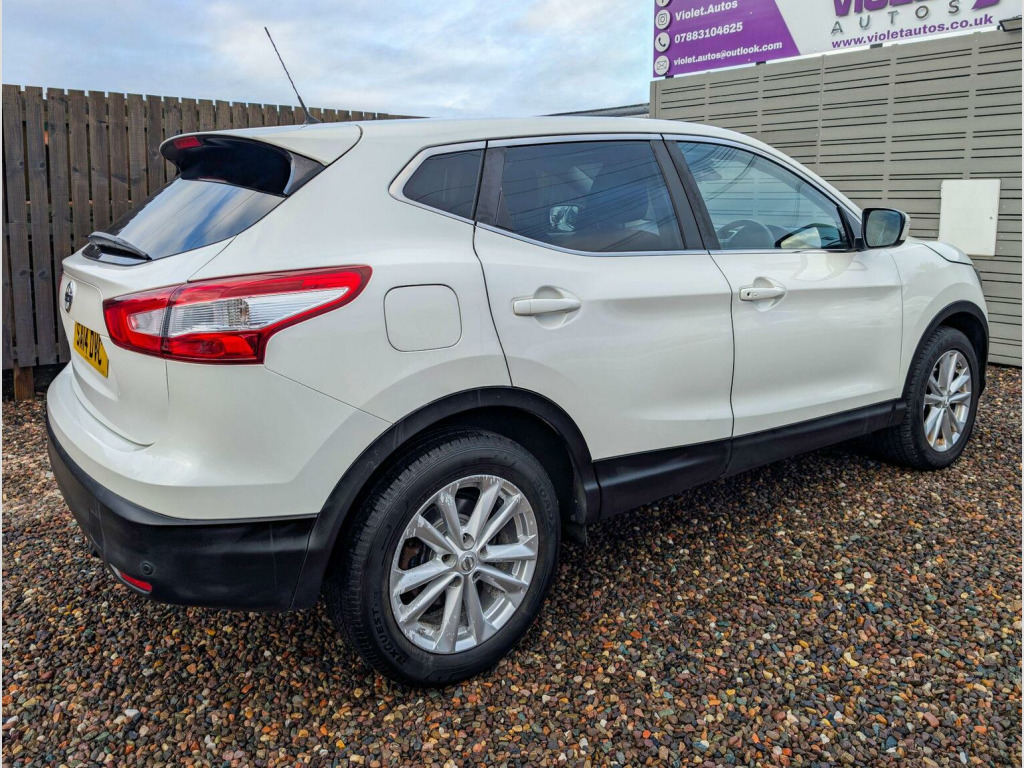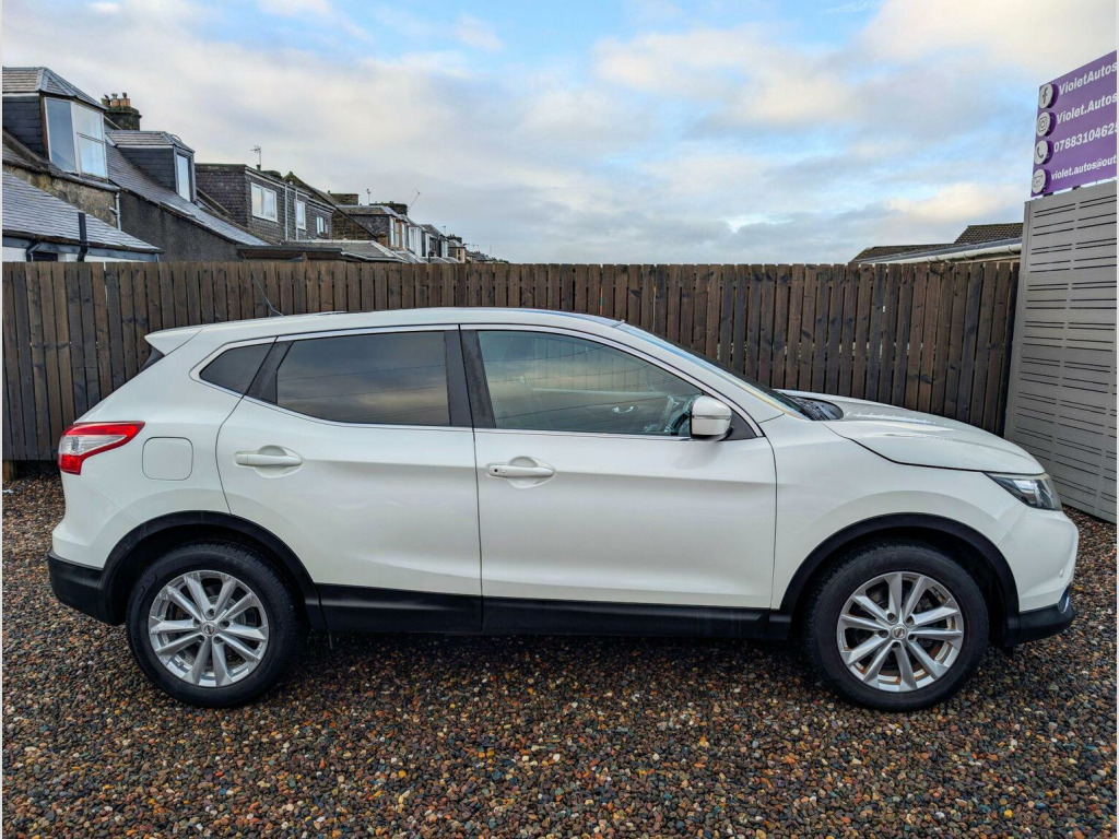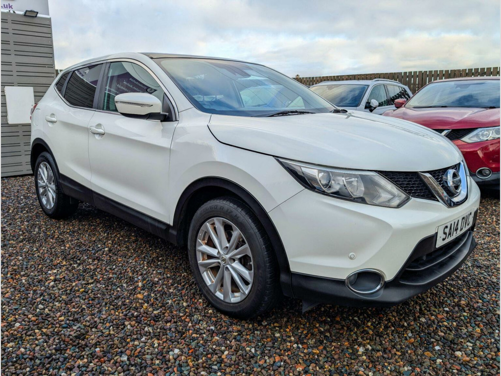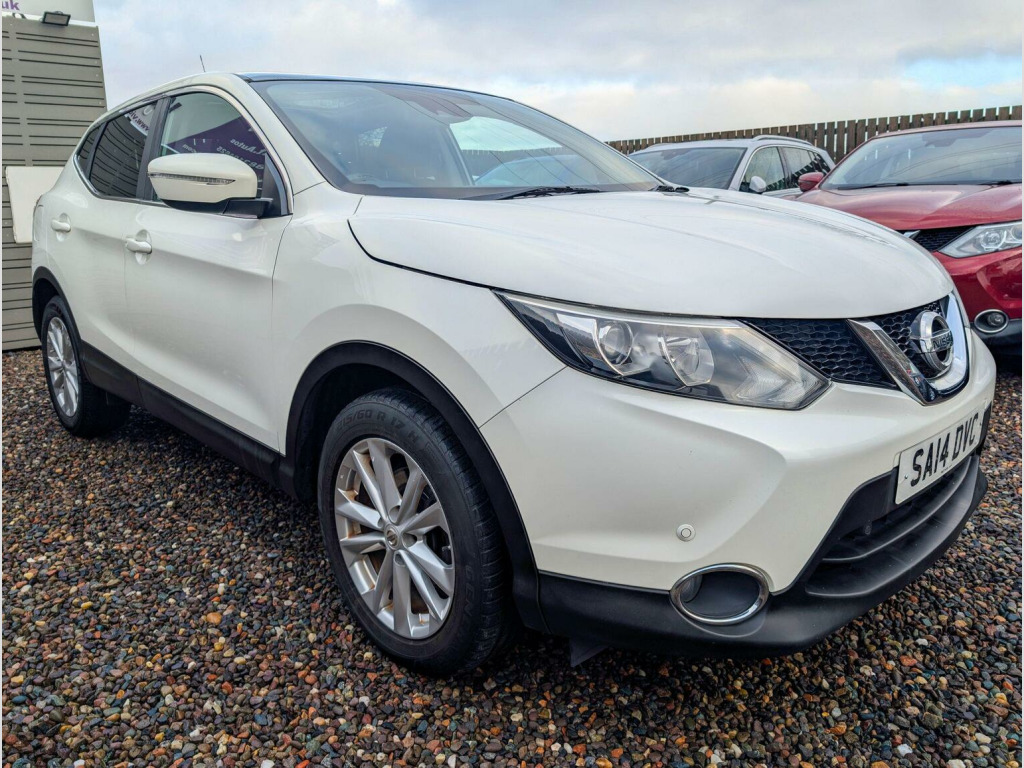 2014 Nissan Qashqai 1.2 T Accenta – White Pearlescent – Only 63,000 Miles, A truly stunning example of the ever-popular Qashqai, finished in premium white pearlescent and presented in beautiful condition throughout. With just 63,000 miles and a full service history, this is a standout family SUV that has clearly been cared for. Perfect for young families and dog lovers, thanks to its spacious cabin, elevated driving position and generous boot space. Whether its the school run, weekend football, or countryside walks with the dog, this Qashqai offers the comfort, economy and reliability you need. Key Features:, 1.2 DIG-T petrol engine – smooth, economical & ideal for town + motorway, Full service history – maintained on time, every time, Long MOT – ready to drive away with peace of mind, Six months warranty included, Six months nationwide breakdown cover, Cruise control & speed limiter for effortless journeys, Parking sensors for stress-free city driving, Dual-zone climate control, Alloy wheels & modern styling that still turns heads, Touchscreen with Bluetooth & media connectivity, Isofix points for child seats – family ready, The Accenta spec gives you all the tech and comfort you need without high running costs. The pearlescent white paint truly pops in the daylight and makes this Qashqai stand out on the road and online. If youre looking for a dependable, stylish and practical SUV with a proven history and low mileage, this is the one to view. Smooth to drive, cheap to run and ready for adventure. Viewings by appointment only- please call or text to book yours.