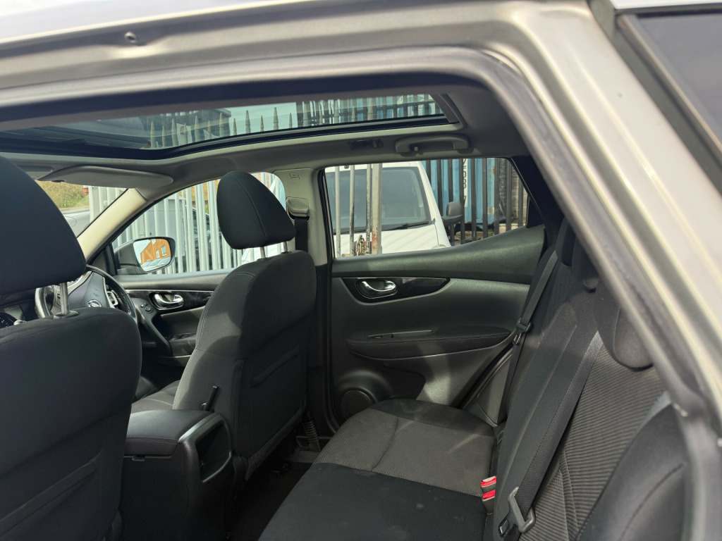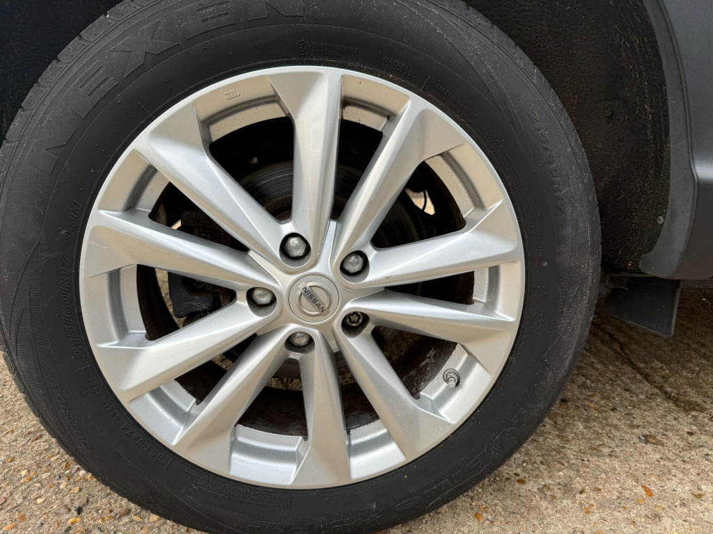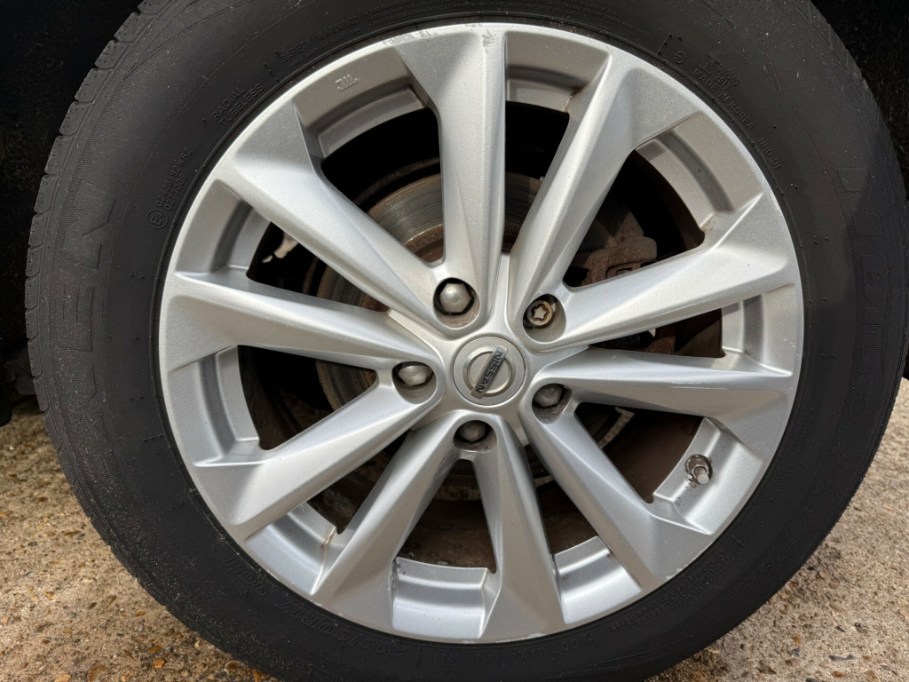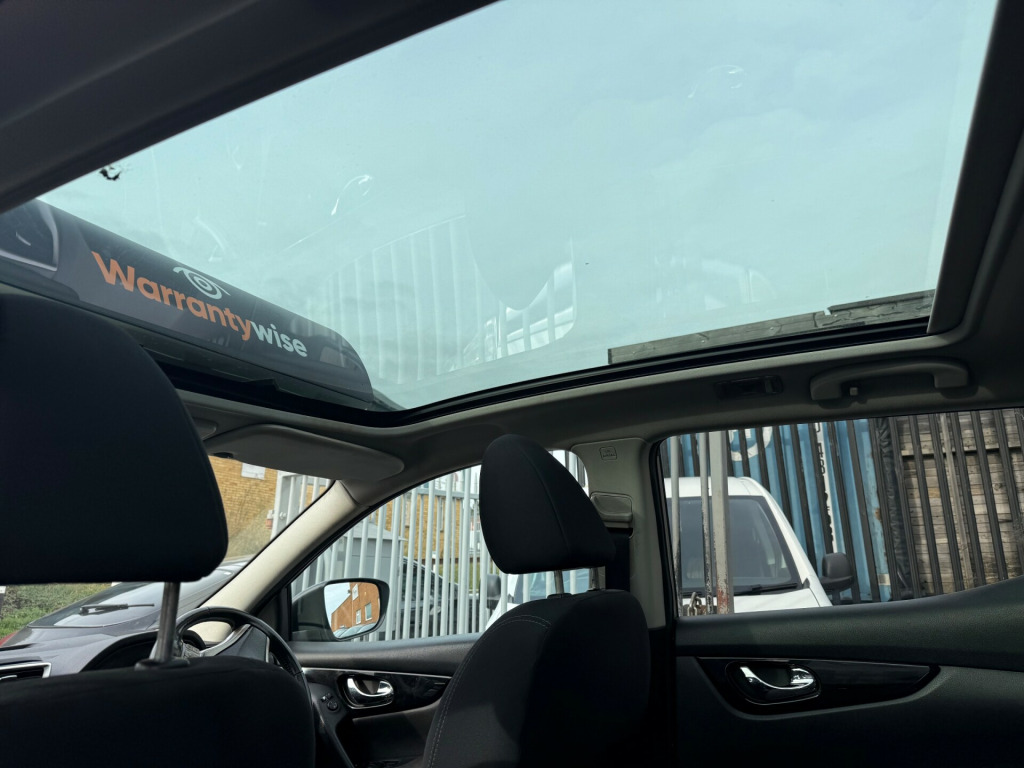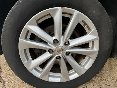 in alloy wheels - 5-spoke in silver, black honeycomb front grille, body coloured handles, bumpers - body coloured, chrome glass surround, door mirrors - body coloured, door mirrors - power fold and heated, front and rear electric windows, panoramic glass roof, puncture repair kit, rear privacy glass, 6 speakers, aux-in socket, dab radio, radio-cd, satellite navigation - nissan connect, telephone - bluetooth integration, touch screen 7in, usb port, 60-40 split rear folding seats, armrest - rear, auto dimming rear view mirror, auto rain sensing wipers, climate control - dual zone, driver seat height adjustment, front armrest, head restraints - active front, head restraints - rear, interior ambient lighting, leather gear knob, leather steering wheel, luggage board system, lumbar support, pollen filter, push start-stop button, rear cupholder, service indicator, steering wheel mounted audio controls, tilt and telescopic adjustable steering wheel, abs - anti lock brakes, airbag - driver, airbag - passenger, airbags - curtain, airbags - side, alarm, brake assist, ebd - electronic brakeforce distribution, esp - electronic stability programme, front collision avoidance, hill start assist, isofix childseat anchorage points - middle row outer seats, immobiliser, intelligent key, rear door child locks, smart vision pack, speed-sensitive autolock function, traction control, e-pkb - electric parking brake, cruise control with speed limiter, electric speed-sensitive power steering, lane departure warning, parking sensor - front, rear parking sensor, rear view camera, tpms - tyre pressure monitoring system, traffic sign recognition, trip computer, front fog lights, headlights - auto, headlights - auto high-low beam, led daytime running lights