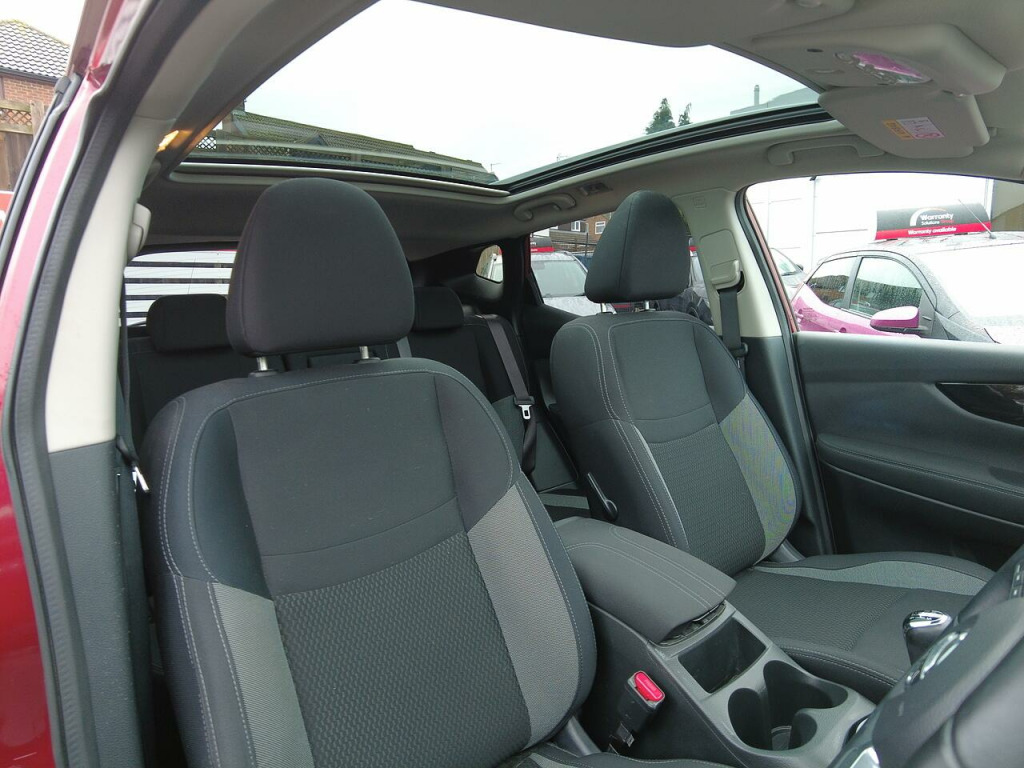 Excellent service history with 5 services recorded. Last serviced 4th November 2025 at 34,155 miles. 3 months warranty & MOT 16th November 2026. ULEZ compliant. Great specification includes 17'' Alloy wheels, Rear privacy glass, Reversing camera, Panoramic roof, Satellite Navigation, Cruise control, Dual zone climate control, Bluetooth, DAB radio, Automatic lights & wipers plus much more.. 6 Speakers, Advanced Drive Assist Display - 5in TFT Coloured Screen, AM-FM Radio and CD Player, AUX Socket, Bluetooth, DAB Digital Radio, Front 12v Power Sockets x2, Rod Antenna, USB Port, Cruise Control with Speed Limiter, Outside Temperature Sensor, Selectable Steering - Normal or Sport, TPMS - Tyre Pressure Monitoring System, Trip Computer, 17in Alloy Wheels - Aero, Body Coloured Door Mirrors, Body Coloured Handles, Chrome Glass Surround, Electric Auto-Folding Door Mirrors, Front and Rear Electric Windows, LED Turn Indicator on Door Mirrors, Puncture Repair Kit, Rear Roof Spoiler, Halogen Headlamps, Intelligent Auto Headlight, LED Signature Daytime Running Lights, 3 Height Adjustable Rear Headrests, 60-40 Split Rear Folding Seats, Ambient Lighting Centre Console, Auto Wipers, Boot Light, Chrome Interior Door Handles, Daytime Running Lights Dip Function When Turn Signal Applied, Driver Seat Height Adjustment, Drivers Seat with Manual Lumbar Support, Dual Zone Climate Control Air Conditioning, Front and Rear Door Pockets with Drink Holders, Front Centre Console and Armrest, Height Adjustable Front Head Restraints, Interior Ambient Lighting, Leather D Shaped Steering Wheel, Leather Gear Lever, Leather Knee Pad, Luggage Board System, One Touch 4 x Auto Windows with Illuminated Switches, Parcel Shelf - Stow Function Under Luggage Board, Passengers Seat with Manual Lumbar Support, Piano Black Dash Trim, Pollen Filter, Seats - Passengers Height Adjustment, Steering Wheel Mounted Audio Controls, Tilt and Telescopic Adjustable Steering Wheel, Electric Speed-Sensitive Power Steering, Nissan Chassis Controls, Underbody Vortex Generators, AutoHold Function - Stand Still Assist, Driver-Passenger-Side and Curtain Airbags, Electric Parking Brake, ESP ABS EBD and Brake Assist, Front and Rear Seatbelt Warning, Front Seat Belts with Load Limiter and Pretensioners, Height Adjustable Front Seatbelts, Hill Start Assist, ISOFIX Child Seat Anchoring Points - Rear x2, Nissan Anti Theft System Immobiliser, Passenger Airbag Deactivation System, Rear Wiper with Reverse Link, Remote Central Locking, Thatcham Category 1 Alarm, Magnetic Red.