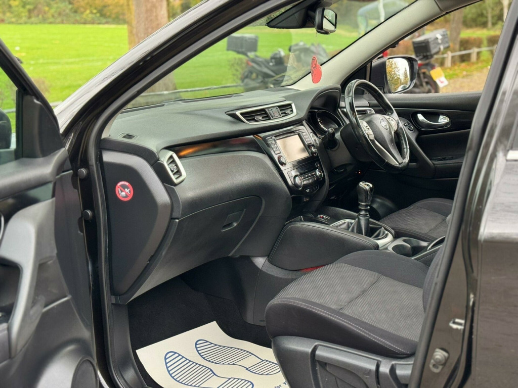 This 2016 Nissan Qashqai DIG T N Connecta is a well maintained example of this popular crossover. It features a 1.2 litre petrol engine and meets Euro 6 emissions standards. Inside, you'll find the Comfort Pack which includes a delightful opening panoramic sunroof, and the Heat Pack for cosy journeys with heated seats. Stay connected and entertained with the integrated Bluetooth system, and enjoy personalised comfort thanks to the dual zone climate control air conditioning. The Smart Vision Pack adds convenience with front and rear parking sensors, making manoeuvring a breeze.This Qashqai DIG T N Connecta offers excellent value, boasting a low insurance group which can help keep your running costs down. Its impressive fuel economy of 50 miles per gallon highlights its efficiency compared to many other vehicles in its class. Furthermore, its low CO2 emissions are another indicator of its economical and environmentally conscious design, making it a sensible choice for your next vehicle. mfort pack, heat pack, 18in alloy wheels - diamond cut, 3 x 3-point rear seatbelts with elr, 5in high definition full colour tft screen combimeter, 6 speakers, 60-40 split rear folding seats, aux socket for mp3 player, alarm, automatic folding door mirrors, automatic lights and wipers, black honeycomb front grille, bluetooth, body-coloured bumpers - handles and mirrors, cd radio, chrome glass surround, cruise control with speed limiter, drive computer, driver seat height adjustment, driver-passenger-side and curtain airbags, drivers side one-touch and anti-trap window, dual zone climate control air conditioning, esp abs ebd and brake assist, electric speed-sensitive power steering, front centre console and armrest, front fog lamps with chrome ring, front seat belt height adjustment, front seat belts with load limiter and pretensioners, front and rear electric windows, head restraints - 3 rear, height adjustable front head restraints, hill start assist, isofix child seat anchoring points, immobiliser, intelligent key, interior ambient lighting, led signature daytime running lights, leather gear knob, leather steering wheel, luggage board system, nissan chassis controls, premium pack, puncture repair kit, push start-stop button, rear door child locks, rear privacy glass, rear seat armrest with 2 cupholders, remote audio control, seats - drivers lumbar support, seats - passengers height adjustment, selectable steering - normal or sport, smart vision pack, tpms - tyre pressure monitoring system, tech pack, tilt and telescopic adjustable steering wheel, e-pkb - electric parking brake