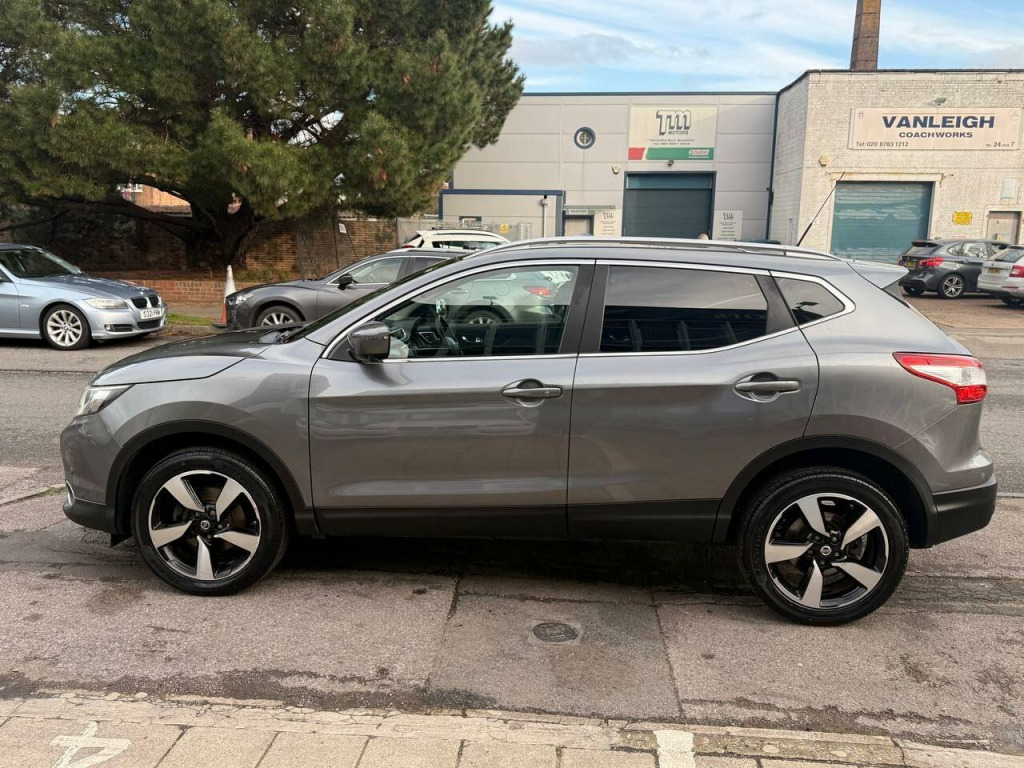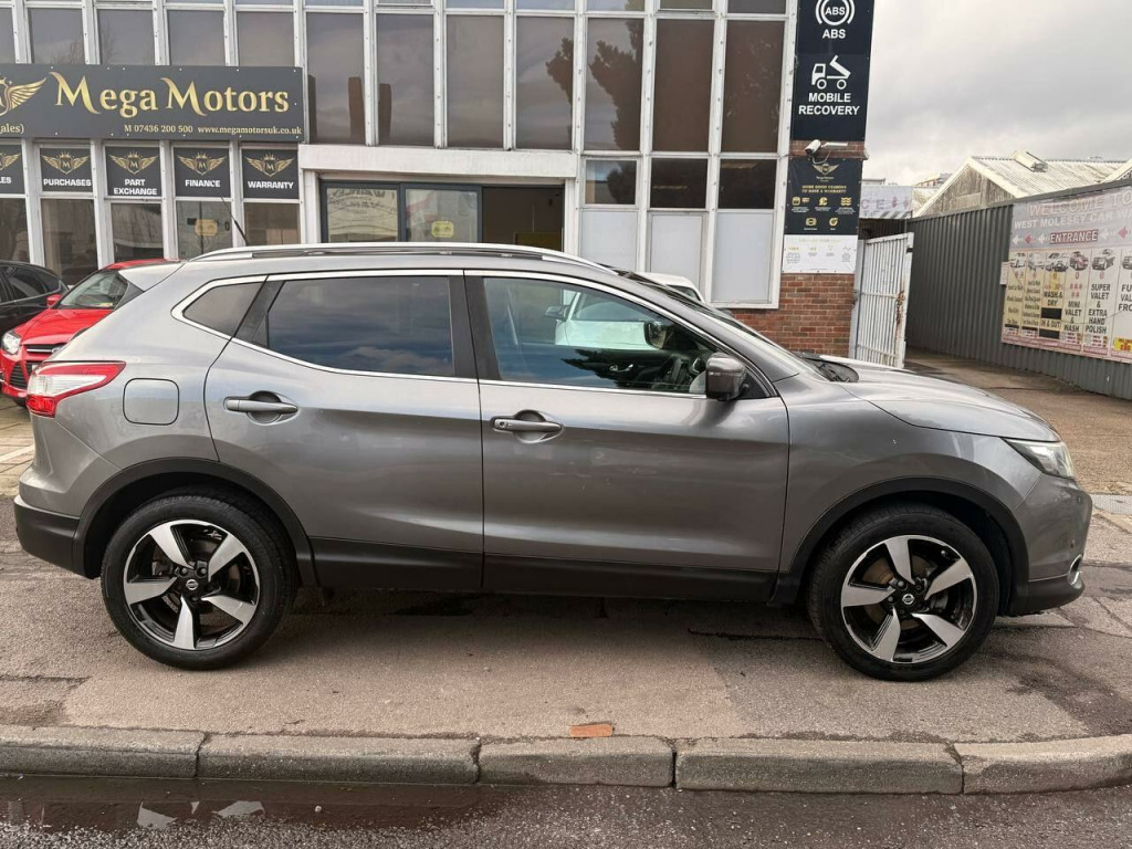 Beautiful Nissan Qashqai 1.2 DIG-T N-Connecta in excellent condition. Top Specs,Panoramic Roof, Navigation, 360 Camera,Lane Assist, Parking Sensors, Electric Windows, Electric Side Mirrors, Climate Control, Steering Control, Cruise Control, Bluetooth Connection, Aux Connection, Alloys, Isofix, Arm Rest and many more...., Great Mpg, cheap to Tax and Insure. ULEZ compliant, 2 Previous Owners & 2 Keys. The car has been very well looked after and comes with FULL-Service history. We had it serviced recently at 80000 miles on 31/01/2026. It has also been MOTed till 27/01/2027 with no advisory. 3 Months essential warranty with Customer Protect is also included for your peace of mind. It is in very good condition and drives very smoothly with no fault whatsoever. ALL OUR CARS ARE FULLY INSPECTED BY PROFESSIONALS PRIOR TO ADVERTISEMENT & COME WITH 12 MONTHS FREE BASIC AA BREAKDOWN COVER. Finance is also available on request. DRIVE-AWAY INSURANCE IS ALSO AVAILABLE AT A COST. TO VIEW MORE STOCK PLEASE VISIT OUR WEBSITE AT: WWW.MEGAMOTORSUK.CO.UK , in alloy wheels - diamond cut, 3 x 3-point rear seatbelts with elr, 5in high definition full colour tft screen combimeter, 6 speakers, 60-40 split rear folding seats, aux socket for mp3 player, alarm, automatic folding door mirrors, automatic lights and wipers, black honeycomb front grille, bluetooth, body-coloured bumpers - handles and mirrors, cd radio, chrome glass surround, cruise control with speed limiter, drive computer, driver seat height adjustment, driver-passenger-side and curtain airbags, drivers side one-touch and anti-trap window, dual zone climate control air conditioning, esp abs ebd and brake assist, electric speed-sensitive power steering, front centre console and armrest, front fog lamps with chrome ring, front seat belt height adjustment, front seat belts with load limiter and pretensioners, front and rear electric windows, head restraints - 3 rear, height adjustable front head restraints, hill start assist, isofix child seat anchoring points, immobiliser, intelligent key, interior ambient lighting, led signature daytime running lights, leather gear knob, leather steering wheel, luggage board system, nissan chassis controls, premium pack, puncture repair kit, push start-stop button, rear door child locks, rear privacy glass, rear seat armrest with 2 cupholders, remote audio control, seats - drivers lumbar support, seats - passengers height adjustment, selectable steering - normal or sport, smart vision pack, tpms - tyre pressure monitoring system, tech pack, tilt and telescopic adjustable steering wheel, e-pkb - electric parking brake, cloth - graphite