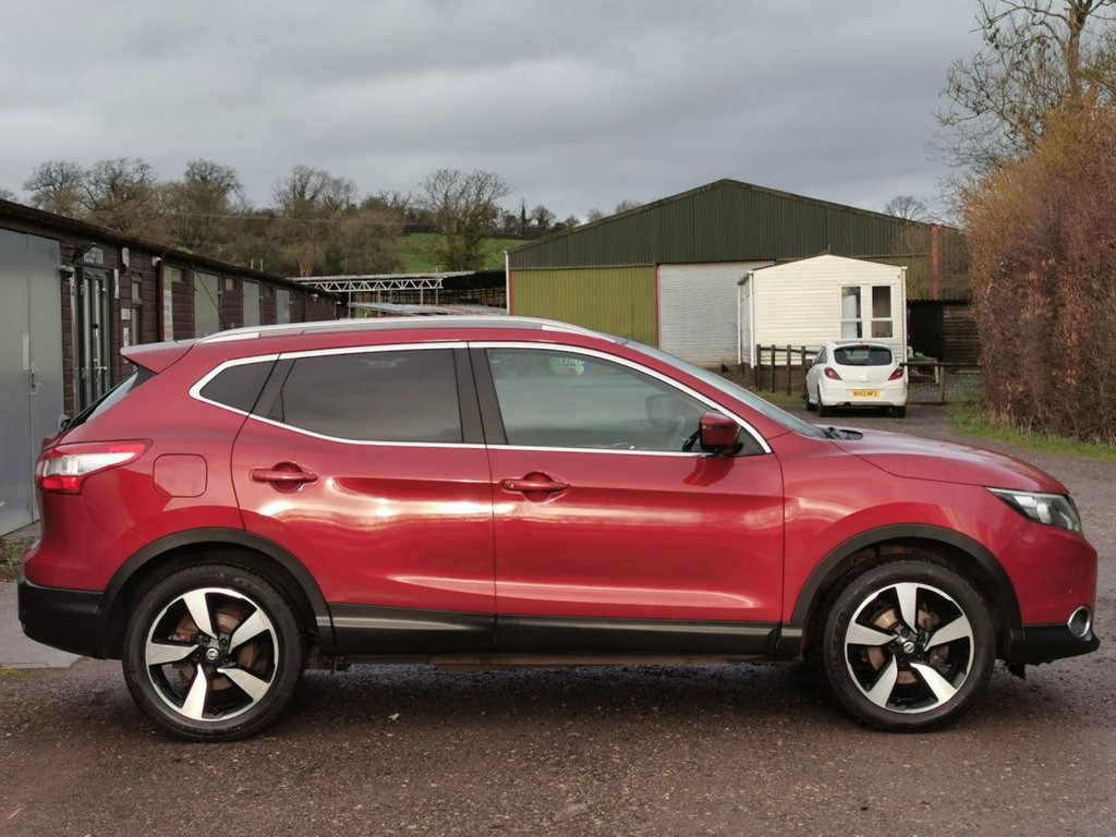 Presented in eye-catching Magnetic Red, this stylish and practical Nissan Qashqai is ready to become your reliable companion. Having been cherished by just one previous owner and covering 85,350 miles, it boasts a strong maintenance record with eight recorded services, all completed exclusively by a Nissan Main Dealership. The most recent service was carried out in July 2025 at 80,525 miles, and it comes with the excellent benefit of an MOT valid until February 2027. This vehicle is also ULEZ and CAZ compliant, ensuring worry-free travel across the UK. This N-Connecta specification is exceptionally well-equipped, designed for comfort, convenience, and safety. You will enjoy the benefits of a panoramic glass roof, front and rear parking sensors, and a clever 360-degree camera for effortless manoeuvring. Inside, the automatic dual-zone climate control, touchscreen infotainment system with satellite navigation, DAB radio, and Bluetooth connectivity keep everyone comfortable and entertained. The car also features cruise control, automatic headlights and wipers, keyless start, and a multi-function steering wheel. We are pleased to offer competitive finance options to help you drive this Qashqai home, with rates starting from just 8.9%. For added peace of mind, we provide RAC extended warranties, including a 12-month policy for £599 or a comprehensive 24-month policy for £899 which also includes 12 months of complimentary RAC breakdown cover. Supplied with two sets of 18in Alloy Wheels - Diamond Cut, 3 x 3-Point Rear Seatbelts with ELR, 5in High Definition Full Colour TFT Scre, 6 Speakers, 60-40 Split Rear Folding Seats, Alarm, Automatic Folding Door Mirrors, Automatic Lights and Wipers, AUX Socket for MP3 Player, Black Honeycomb Front Grille, Bluetooth, Body-coloured Bumpers - Handles and Mirr, CD Radio, Chrome Glass Surround, Cruise Control with Speed Limiter, Drive Computer, Driver Seat Height Adjustment, Driver-Passenger-Side and Curtain Airbag, Drivers Side One-touch and Anti-trap Win, Dual Zone Climate Control Air Conditioni, e-PKB - Electric Parking Brake, Electric Speed-Sensitive Power Steering, ESP ABS EBD and Brake Assist, Front and Rear Electri