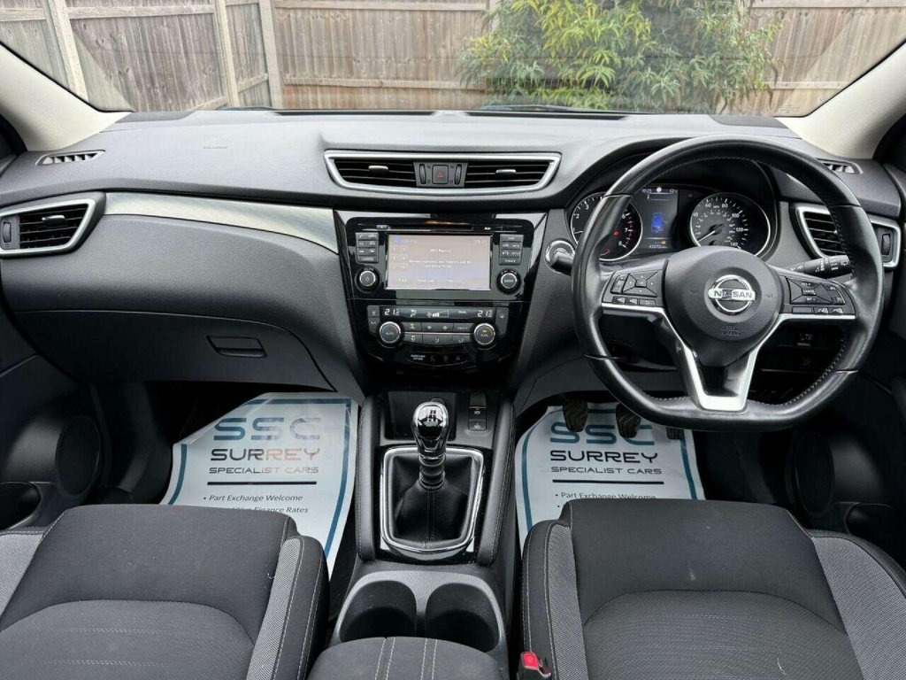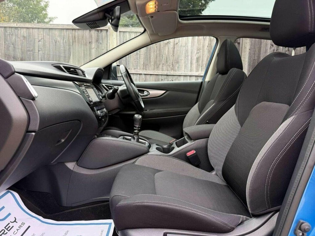 Surrey Specialist Cars are proud to present our lovely Nissan Qashqai N-Connecta DIG-T. This amazing car comes with Full Service History, finished in stunning metallic blue with grey contrast interior. The car has a Long MOT until May 2026 so it is ready to go. The 1.2L Petrol engine offers superb economy at over 50 MPG on combined cycle. Features Include Multifunction Steering Wheel, Trip Computer, Satellite Navigation, Parking Camera, Parking Sensors, Panoramic Roof, Cruise Control, Speed Limiter, Stereo/Phone Control, FM/DAB Radio, Bluetooth Audio, USB Input, AUX Input, CD Player, Dual Zone Climate Control, 12V Charging Socket, Electronic Hand Brake, Auto Hold System, 6 Speed Manual Gearbox, Electric Windows, 18 Inch Alloy Wheels and one Remote Control Key to name a few. We are open 7 days a week, and prepare all of our cars to the highest standards. We have a Click & Collect option available, and can also arrange delivery on request. All cars are HPI clear and a full history report is provided with every car. We welcome any inspection and viewing is highly recommended. All cars are available with our AA warranty starting from just ?150 for 3 months. Debit and credit card facilities are available and we offer competitive finance packages. If you have any questions or would like to view any of our cars give us a call or drop us a message on whatsapp 01483 363 144 to arrange an appointment with one of our team. We also offer full bespoke walkaround videos on request. We 18in Alloy Wheels - Bi-Colour, 3 Height Adjustable Rear Headrests, 6 Speakers, 60-40 Split Rear Folding Seats, AM-FM Radio and CD Player, AUX Socket, Advanced Drive Assist Display - 5in TFT , Ambient Lighting Centre Console, Anti Dazzle Rear View Mirror, Auto Wipers, AutoHold Function - Stand Still Assist, Bluetooth, Body Coloured Door Mirrors, Body Coloured Handles, Boot Light, Chrome Glass Surround, Chrome Interior Door Handles, Cruise Control with Speed Limiter, DAB Digital Radio, Daytime Running Lights Dip Function When, Driver Seat Height Adjustment, Driver-Passenger-Side and Curtain Airbag, Drivers Seat with Manual Lumbar Support, Dual Zone Climate Control Air Conditioni, ESP ABS EBD a