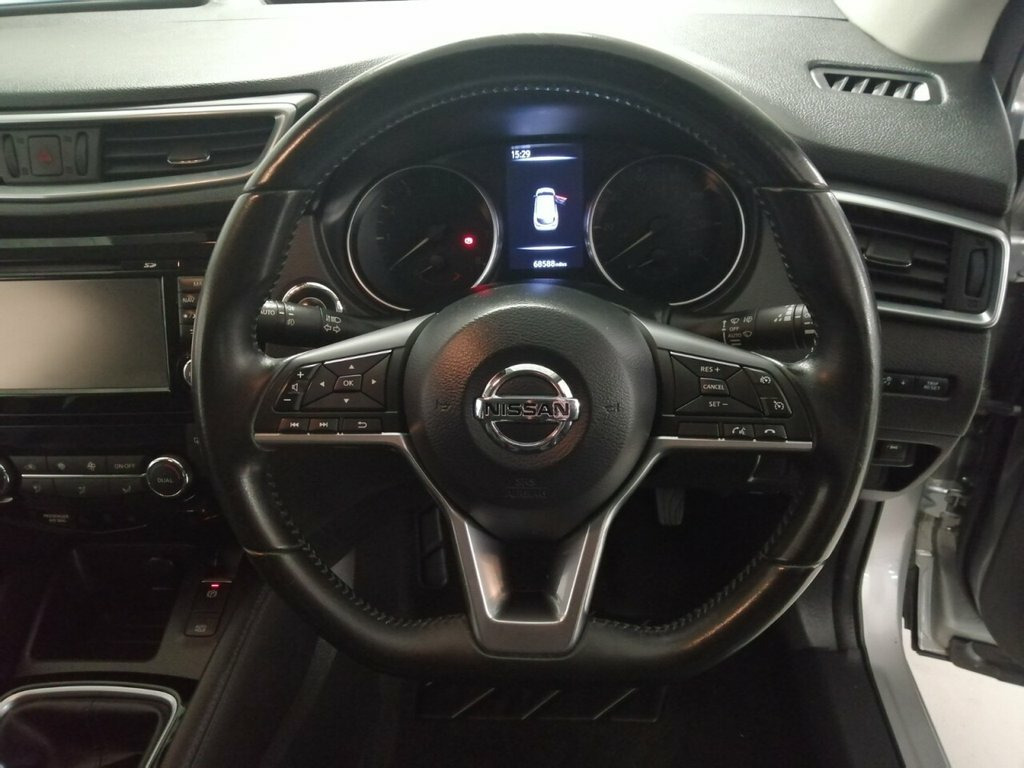 Stunning 1 Owner Example Of This High Spec SUV With Service History And 2 Remote Keys, Upgraded 18" Diamond Cut Two Tone Alloy Wheels, Blade Silver Metallic Paintwork , Anthracite Bi Colour Cloth Upholstery And Front Centre Armrest. A Great Spec Which Includes Nissan Connect Full Colour Navigation With 7" Touch Screen, Hands Free Bluetooth Telephone Connectivity, DAB Radio With CD Player, USB And AUX Ports, Panoramic Glass Sunroof Pack, Front And Rear Electric Windows, Electric Heated And Folding Door Mirrors, Front And Rear Park Distance Control With Intelligent Parking Assist And Rear Camera, Lane Departure Warning System With 360"Around View Monitoring, Automatic Headlights With Dusk Sensor And High Beam Assist, Cruise Control With Speed Limiter, Interior Mirror With Auto Anti Dazzle, Front Fog Lights With Chrome Surrounds ,Rain Sensing Wipers, Heated Rear Window With Rear Wash Wipe, Remote Central Door Locking With 2 Keys And Keyless Start With Power Button, Hill Start Assist, LED Daytime Running Lights And Much More. Full MOT, Service And Warranty Included In The Price. Home Delivery and Contactless Purchase Can Be Arranged, Please Ask For Details. Blade Silver, 18in Alloy Wheels - Bi-Colour, 3 Height Adjustable Rear Headrests, 6 Speakers, 60-40 Split Rear Folding Seats, AM-FM Radio and CD Player, AUX Socket, Advanced Drive Assist Display - 5in TFT , Ambient Lighting Centre Console, Anti Dazzle Rear View Mirror, Auto Wipers, AutoHold Function - Stand Still Assist, Bluetooth, Body Coloured Door Mirrors, Body Coloured Handles, Boot Light, Chrome Glass Surround, Chrome Interior Door Handles, Cruise Control with Speed Limiter, DAB Digital Radio, Daytime Running Lights Dip Function When, Driver Seat Height Adjustment, Driver-Passenger-Side and Curtain Airbag, Drivers Seat with Manual Lumbar Support, Dual Zone Climate Control Air Conditioni,