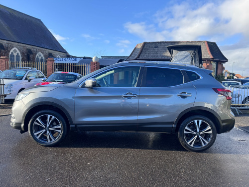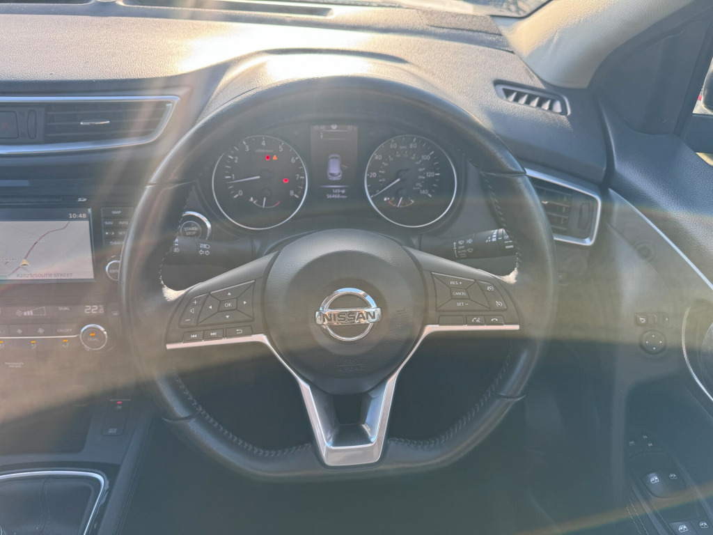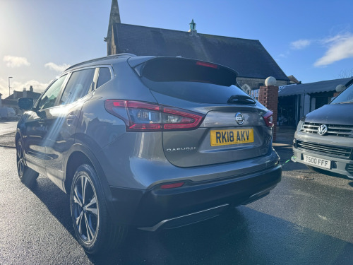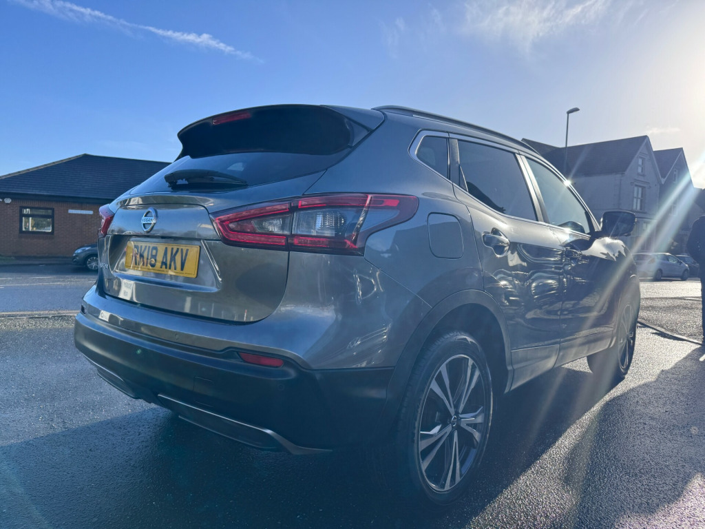 This 2018 Nissan Qashqai 1.2 DIG-T N-Connecta SUV, with 56510 miles on the clock, is a stylish and practical choice for anyone in need of a family car. Powered by a 1.2L petrol engine and featuring a manual transmission, this SUV is both efficient and fun to drive. With 5 seats and 5 doors, there's plenty of room for the whole family, and the 18in Alloy Wheels and sleek body design give it a modern and sporty look. The chrome accents and electric auto-folding door mirrors add a touch of luxury, while the body-coloured handles and door mirrors maintain a clean and streamlined appearance. The MOT is valid until 25/04/2026, and this vehicle is ULEZ compliant, making it a smart choice for city driving. Whether you're tackling the school run or heading out on a family adventure, this Nissan Qashqai is ready for the journey ahead. in alloy wheels - bi-colour, body coloured door mirrors, body coloured handles, chrome glass surround, electric auto-folding door mirrors, front and rear electric windows, led turn indicator on door mirrors, matt silver roof rails, privacy glass, puncture repair kit, rear roof spoiler, 3 height adjustable rear headrests, 60-40 split rear folding seats, ambient lighting centre console, anti dazzle rear view mirror, auto wipers, boot light, chrome interior door handles, daytime running lights dip function when turn signal applied, driver seat height adjustment, drivers seat with manual lumbar support, dual zone climate control air conditioning, front centre console and armrest, front and rear door pockets with drink holders, height adjustable front head restraints, interior ambient lighting, leather d shaped steering wheel, leather gear lever, leather knee pad, luggage board system, monoform front seats with plastic backboard, one touch 4 x auto windows with illuminated switches, parcel shelf - stow function under luggage board, passengers seat with manual lumbar support, pollen filter, seats - passengers height adjustment, start push button, steering wheel mounted audio controls, synthetic leather wrapped door handle with contrasting stitching, tech pack, tilt and telescopic adjustable steering wheel, 6 speakers, am-fm radio and cd player, aux socket, advanced drive assist display - 5in tft coloured screen, bluetooth, dab digital radio, front 12v power sockets x2, nissanconnect evo touchscreen navigation and entertainment system, shark fin antenna, smartphone app integration, usb port, autohold function - stand still assist, driver-passenger-side and curtain airbags, esp abs ebd and brake assist, electric parking brake, front seat belts with load limiter and pretensioners, front and rear seatbelt warning, height adjustable front seatbelts, hill start assist, isofix child seat anchoring points - rear x2, intelligent emergency braking, intelligent key, nissan anti theft system immobiliser, passenger airbag deactivation system, rear wiper with reverse link, remote central locking, smart vision pack, thatcham category 1 alarm, cruise control with speed limiter, electric speed-sensitive power steering, intelligent around view monitor, lane departure warning, nissan chassis controls, outside temperature sensor, parking sensor - front, rear parking sensors, rear view camera, selectable steering - normal or sport, tpms - tyre pressure monitoring system, traffic sign recognition, trip computer, underbody vortex generators, halogen headlamps, headlights - high beam assist, intelligent auto headlight, led signature daytime running lights