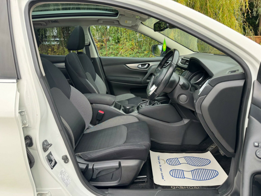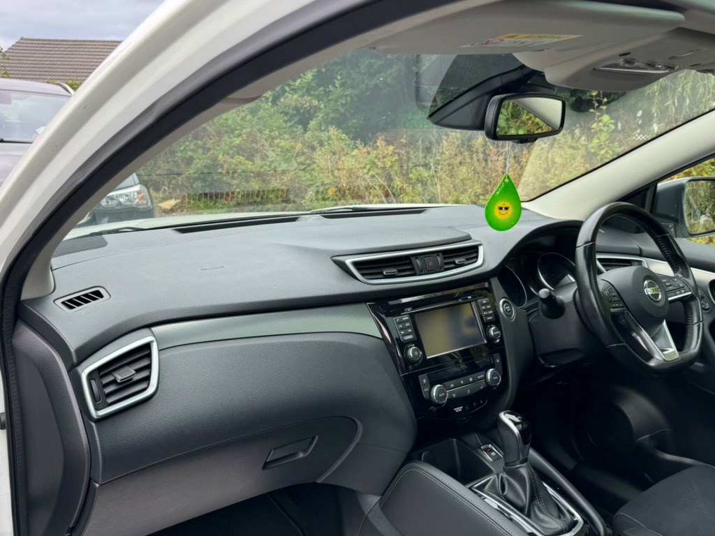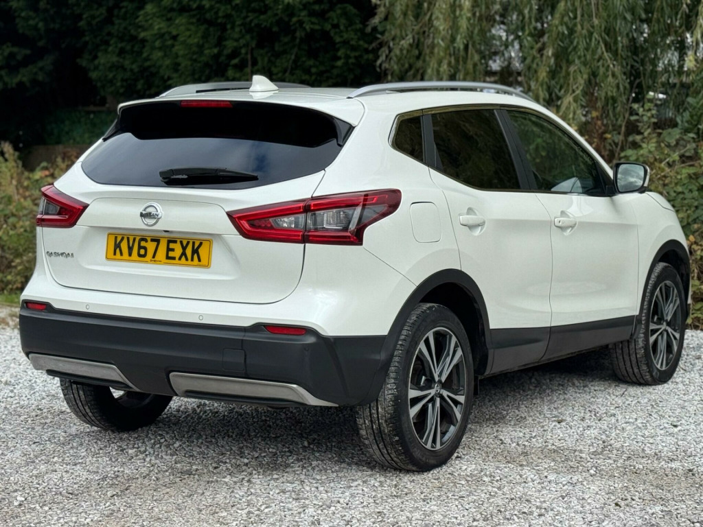 2 FORMER KEEPERS2 KEYSFULL SERVICE HISTORY - 8 SERVICES - 3 MAIN DEALER SERVICES - SERVICE INTERVALS 11K, 18K, 21K, 25K, 29K, 33K, 38K, 54KLOGBOOKDiscover this 2017 Nissan Qashqai DIG T N Connecta, a well presented example of this popular crossover. Powered by an efficient 1.2 litre petrol engine, this Euro 6 compliant model offers a compelling blend of practicality and technology. The N Connecta trim level comes equipped with a host of desirable features, including Intelligent Auto Headlights that activate automatically, and Intelligent Key with keyless entry for effortless access. Navigate tight spaces with confidence thanks to the Tech Pack, which incorporates a rear parking camera and the impressive Intelligent Around View Monitor, providing a 360 degree view of your surroundings. Inside, you'll appreciate the comfort of Dual Zone Climate Control Air Conditioning, ensuring a pleasant environment for all occupants.This Nissan Qashqai stands out with its impressive fuel economy, achieving up to 50 miles per gallon, which indicates it is more economical than many similar vehicles. Furthermore, its low insurance group rating suggests that running costs will be more affordable compared to other cars in its class. The vehicle also boasts low CO2 emissions, highlighting its environmental consideration and potentially lower tax implications. This combination of efficiency, affordability, and advanced features makes the 2017 Qashqai DIG T N Connecta a sensible and appealing choice. in alloy wheels - bi-colour, 3 height adjustable rear headrests, 6 speakers, 60-40 split rear folding seats, am-fm radio and cd player, aux socket, advanced drive assist display - 5in tft coloured screen, ambient lighting centre console, anti dazzle rear view mirror, auto wipers, bluetooth, body coloured door mirrors, body coloured handles, boot light, carbon graphite dash trim, chrome glass surround, chrome interior door handles, cruise control with speed limiter, dab digital radio, daytime running lights dip function when turn signal applied, driver seat height adjustment, driver-passenger-side and curtain airbags, drivers seat with manual lumbar support, dual zone climate control air conditioning, esp abs ebd and brake assist, electric auto-folding door mirrors, electric parking brake, electric speed-sensitive power steering, front 12v power sockets x2, front centre console and armrest, front seat belts with load limiter and pretensioners, front and rear door pockets with drink holders, front and rear electric windows, front and rear seatbelt warning, halogen headlamps, headlights - high beam assist, height adjustable front head restraints, height adjustable front seatbelts, hill start assist, isofix child seat anchoring points - rear x2, intelligent around view monitor, intelligent auto headlight, intelligent emergency braking, intelligent key, interior ambient lighting, led signature daytime running lights, led turn indicator on door mirrors, lane departure warning, leather d shaped steering wheel, leather gear lever, leather knee pad, luggage board system, matt silver roof rails, monoform front seats with plastic backboard, nissan anti theft system immobiliser, nissan chassis controls, nissanconnect evo touchscreen navigation and entertainment system, one touch 4 x auto windows with illuminated switches, outside temperature sensor, parcel shelf - stow function under luggage board, parking sensor - front, passenger airbag deactivation system, passengers seat with manual lumbar support, pollen filter, privacy glass, puncture repair kit, rear parking sensors, rear roof spoiler, rear view camera, rear wiper with reverse link, remote central locking, seats - passengers height adjustment, selectable steering - normal or sport, shark fin antenna, smart vision pack, smartphone app integration, start push button, steering wheel mounted audio controls, synthetic leather wrapped door handle with contrasting stitching, tpms - tyre pressure monitoring system, tech pack, thatcham category 1 alarm, tilt and telescopic adjustable steering wheel, traffic sign recognition, trip computer, usb port, underbody vortex generators