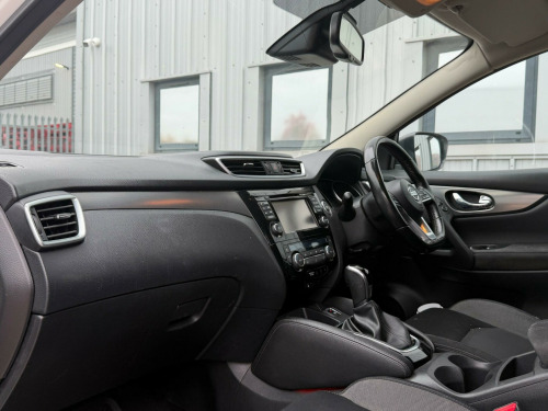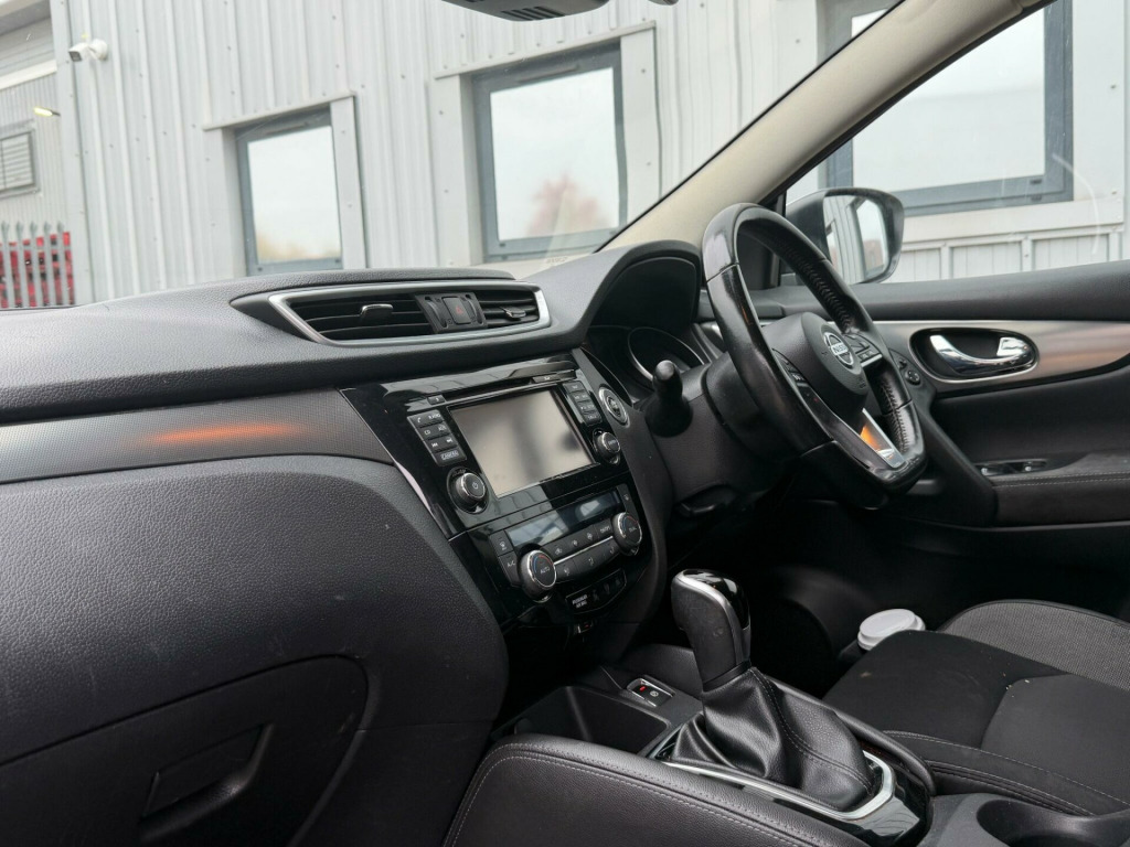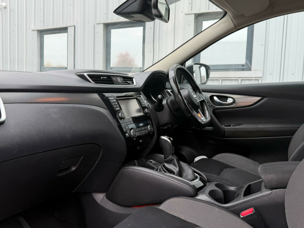 This 2017 Nissan Qashqai DIG T N Connecta is a well maintained example of this popular family car. It features a 1.2 litre petrol engine and meets Euro 6 emissions standards. The N Connecta trim level comes with a host of useful technology, including a rear view camera with parking assistance, front and rear parking sensors, and intelligent automatic headlights.This Qashqai offers excellent running costs, achieving an impressive 50 miles per gallon. Its low CO2 emissions and low insurance group rating further highlight its efficiency and affordability, making it a sensible choice for many drivers compared to similar vehicles., in alloy wheels - bi-colour, 3 height adjustable rear headrests, 6 speakers, 60-40 split rear folding seats, am-fm radio and cd player, aux socket, advanced drive assist display - 5in tft coloured screen, ambient lighting centre console, anti dazzle rear view mirror, auto wipers, bluetooth, body coloured door mirrors, body coloured handles, boot light, carbon graphite dash trim, chrome glass surround, chrome interior door handles, cruise control with speed limiter, dab digital radio, daytime running lights dip function when turn signal applied, driver seat height adjustment, driver-passenger-side and curtain airbags, drivers seat with manual lumbar support, dual zone climate control air conditioning, esp abs ebd and brake assist, electric auto-folding door mirrors, electric parking brake, electric speed-sensitive power steering, front 12v power sockets x2, front centre console and armrest, front seat belts with load limiter and pretensioners, front and rear door pockets with drink holders, front and rear electric windows, front and rear seatbelt warning, halogen headlamps, headlights - high beam assist, height adjustable front head restraints, height adjustable front seatbelts, hill start assist, isofix child seat anchoring points - rear x2, intelligent around view monitor, intelligent auto headlight, intelligent emergency braking, intelligent key, interior ambient lighting, led signature daytime running lights, led turn indicator on door mirrors, lane departure warning, leather d shaped steering wheel, leather gear lever, leather knee pad, luggage board system, matt silver roof rails, monoform front seats with plastic backboard, nissan anti theft system immobiliser, nissan chassis controls, nissanconnect evo touchscreen navigation and entertainment system, one touch 4 x auto windows with illuminated switches, outside temperature sensor, parcel shelf - stow function under luggage board, parking sensor - front, passenger airbag deactivation system, passengers seat with manual lumbar support, pollen filter, privacy glass, puncture repair kit, rear parking sensors, rear roof spoiler, rear view camera, rear wiper with reverse link, remote central locking, seats - passengers height adjustment, selectable steering - normal or sport, shark fin antenna, smart vision pack, smartphone app integration, start push button, steering wheel mounted audio controls, synthetic leather wrapped door handle with contrasting stitching, tpms - tyre pressure monitoring system, tech pack, thatcham category 1 alarm, tilt and telescopic adjustable steering wheel, traffic sign recognition, trip computer, usb port, underbody vortex generators