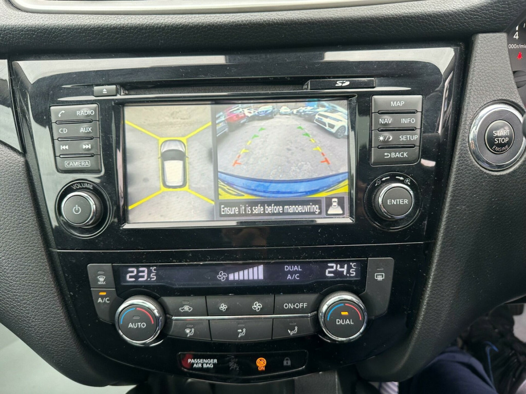 ON V CAR CAT N! in alloy wheels - diamond cut, 6 speakers, 60-40 split rear folding seats, abs - anti lock brakes, aux-in socket, airbag - driver, airbag - passenger, airbags - curtain, airbags - side, alarm, armrest - rear, around view monitor - 360 bird-view, auto dimming rear view mirror, auto rain sensing wipers, black honeycomb front grille, body coloured handles, brake assist, bumpers - body coloured, chrome glass surround, climate control - dual zone, cruise control with speed limiter, dab radio, door mirrors - body coloured, door mirrors - power fold and heated, driver seat height adjustment, ebd - electronic brakeforce distribution, esp - electronic stability programme, electric speed-sensitive power steering, front armrest, front collision avoidance, front fog lights, front and rear electric windows, head restraints - active front, head restraints - rear, headlights - auto, headlights - auto high-low beam, hill start assist, isofix childseat anchorage points - middle row outer seats, immobiliser, intelligent key, interior ambient lighting, led daytime running lights, lane departure warning, leather gear knob, leather steering wheel, luggage board system, lumbar support, panoramic glass roof, parking sensor - front, pollen filter, puncture repair kit, push start-stop button, radio-cd, rear cupholder, rear door child locks, rear parking sensor, rear privacy glass, roof rails, satellite navigation - nissan connect, smart vision pack, speed-sensitive autolock function, steering wheel mounted audio controls, tpms - tyre pressure monitoring system, telephone - bluetooth integration, tilt and telescopic adjustable steering wheel, touch screen 7in, traction control, traffic sign recognition, trip computer, usb port, e-pkb - electric parking brake